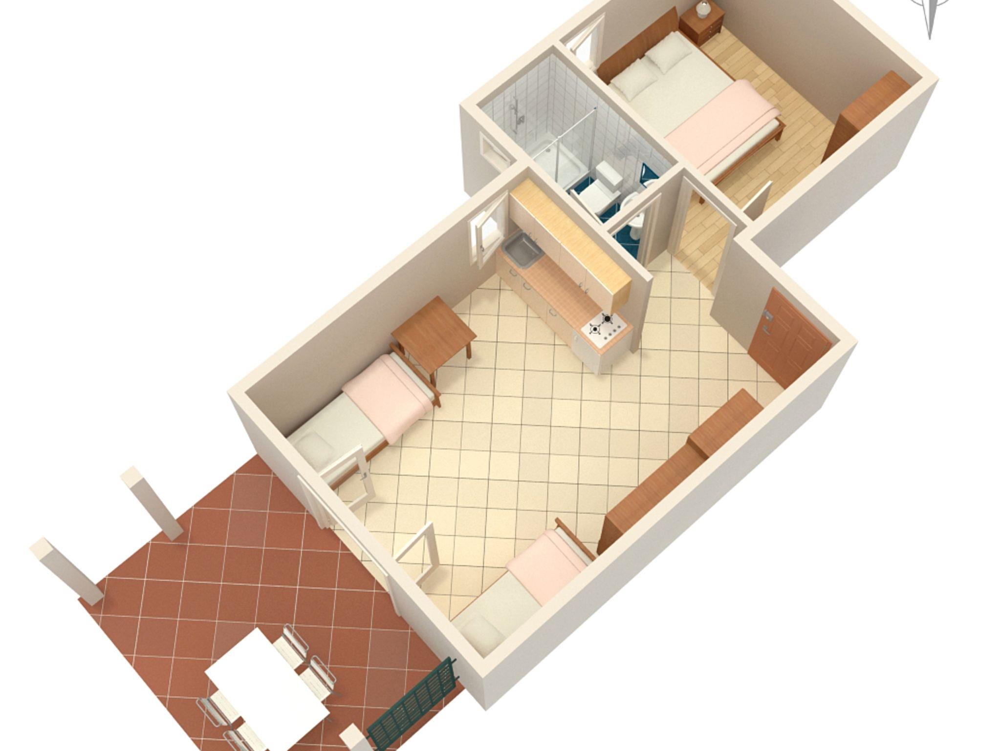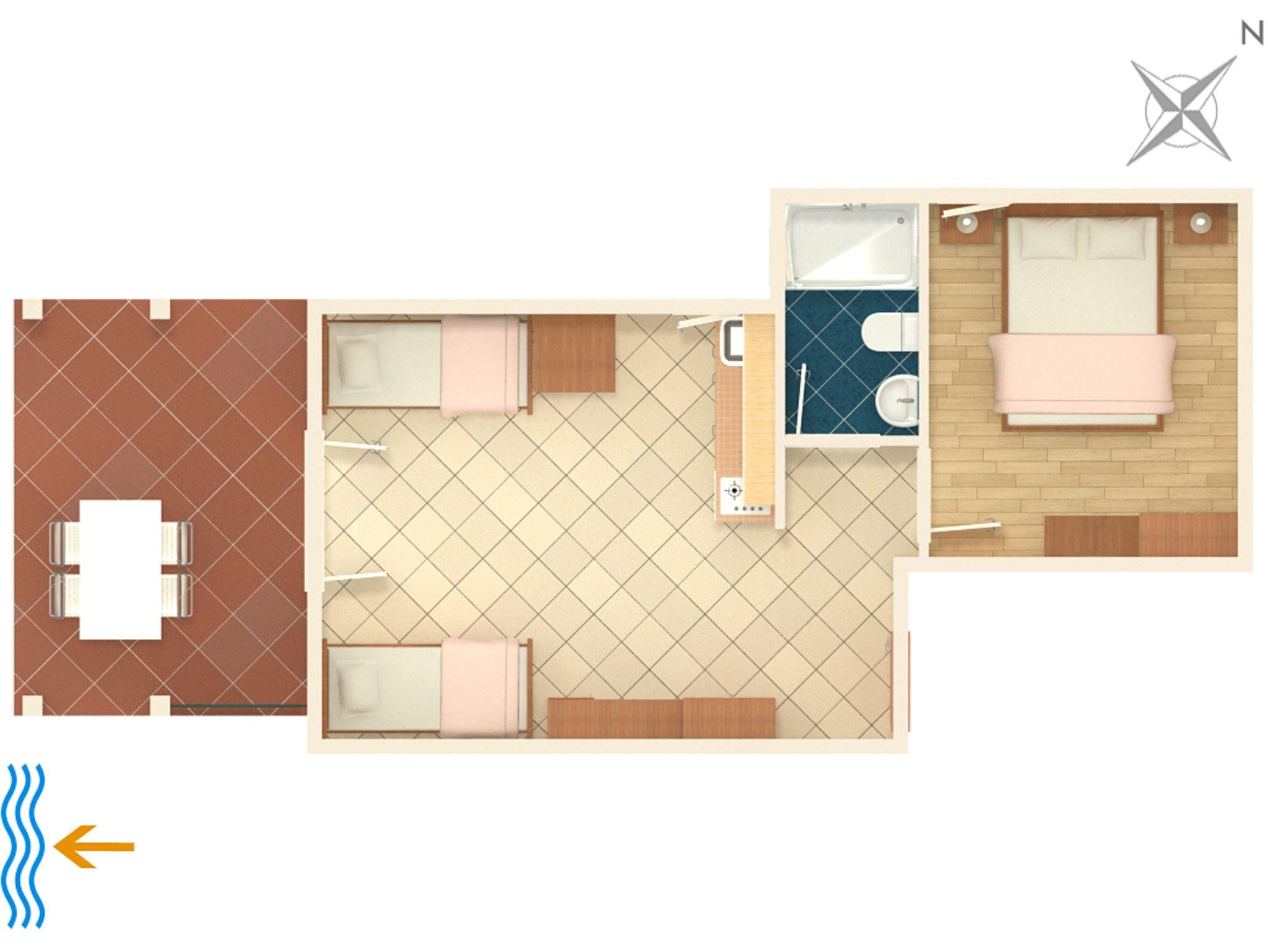 Ferienwohnung bietet Platz für 3 Gäste. Die Betten sind in Schlafzimmern, die es 1 gibt, und in Wohnzimmer, innerhalb einer Gesamtfläche von 30m2, angeordnet. Die Gäste haben eine eigene Terrasse zur Verfügung, auf der sie in warmen Sommernächten genießen können. Es ist erlaubt, Speisen auf dem Gemeinschafts-Grill vorzubereiten. In der Unterkunftseinheit besteht die Möglichkeit des Mitbringens von Haustieren gegen Aufpreis. IM PREIS INBEGRIFFEN: Kurtaxe, Endreinigung, Klimatisierung, Parkplatz, Internet, Kinderbett, Bügeleisen, Bügelbrett, Föhn. UNVERBINDLICHE ZUSÄTZLICHE KOSTEN: Wäschewaschen (10,00 € Waschen), Haustiere (10,00 € pro Nacht), Zusatzbett (20,00 € pro Nacht). Die Verfügbarkeit zusätzlicher Dienstleistungen in Ihrem reservierten Termin und die Preise derselben (falls nicht aufgeführt) müssen im Voraus überprüft werden. Zusätzliche Dienstleistungen die in der Zahlungsaufforderung nicht aufgeführt sind werden direkt beim Vermieter bezahlt, angenommen der Gast nutzt auch diese. Ermäßigung auf den Grundpreis: Gratistag 14=13 (bei einem Aufenthalt von 14 Tagen oder mehr erhalten Sie einen Gratistag für den Aufenthalt bis 31.12.26).