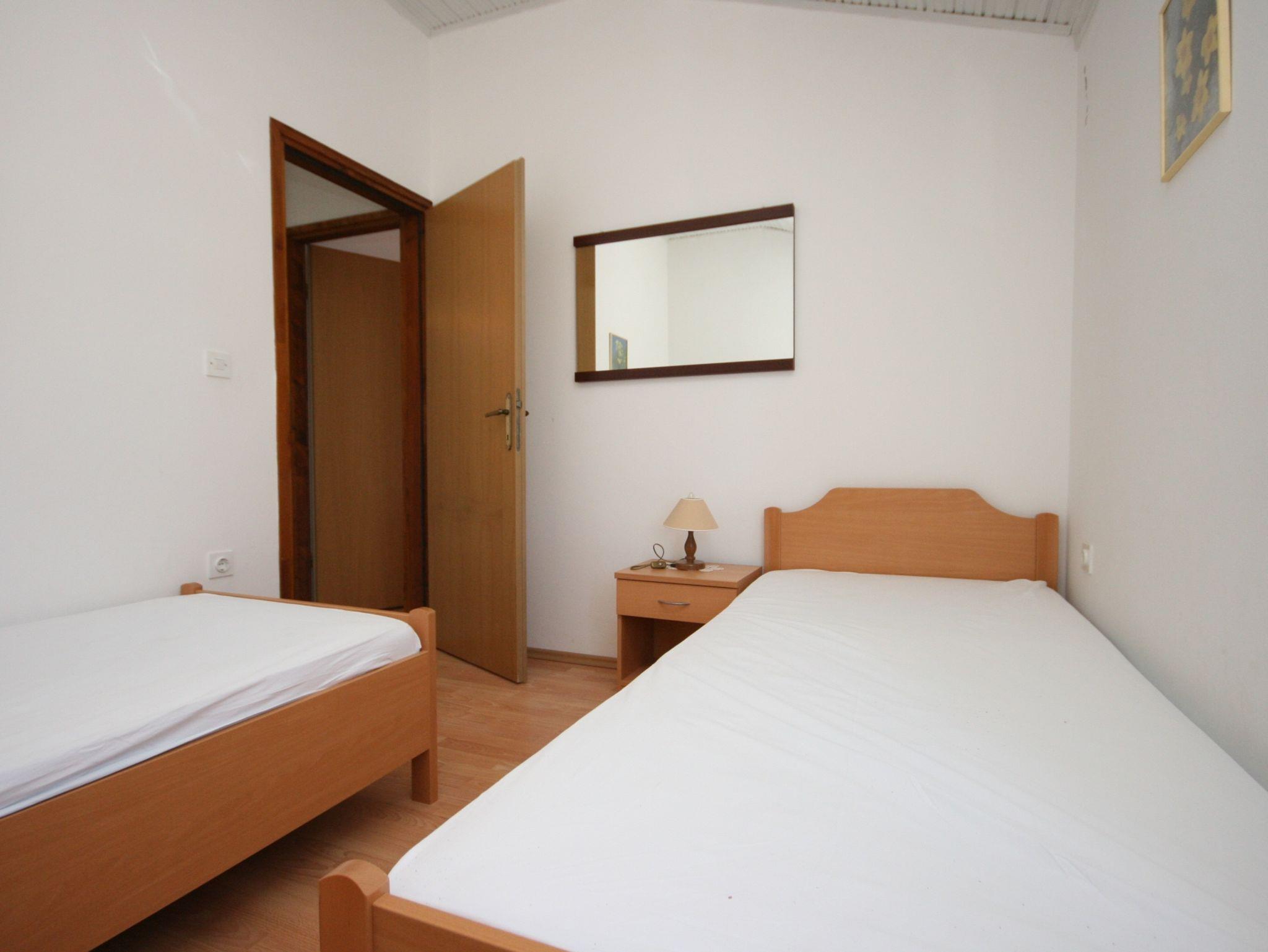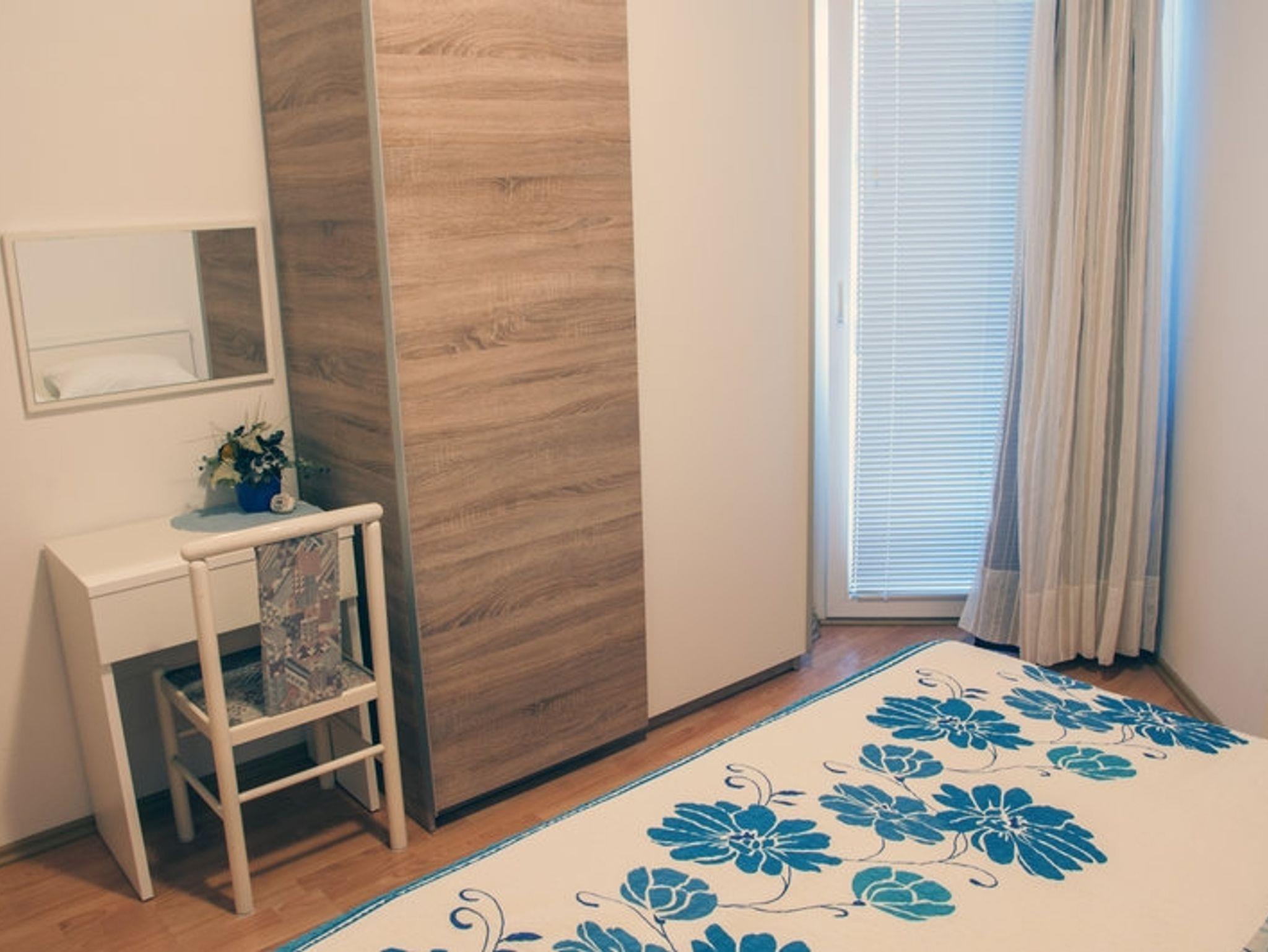 Ferienwohnung bietet Platz für 4 Gäste. Die Betten sind in Schlafzimmern, die es 2 gibt, innerhalb einer Gesamtfläche von 41m2, angeordnet. Die Gäste haben eine eigene Terrasse zur Verfügung, auf der sie in warmen Sommernächten genießen können. Das Apartment bietet Meerblick. Es ist erlaubt, Speisen auf dem Gemeinschafts-Grill vorzubereiten. In der Unterkunftseinheit besteht die Möglichkeit des Mitbringens von Haustieren gegen Aufpreis. In der gebuchten Unterkunftseinheit zahlt man am Ort ein Depositum ( der Preis ist an der Internetseite angeführt ). IM PREIS INBEGRIFFEN: Kurtaxe, Endreinigung, Klimatisierung, Parkplatz, Internet, Bügeleisen, Bügelbrett, Föhn, tragbarer Grill. VERBINDLICHE ZUSÄTZLICHE KOSTEN: Kaution (200,00 € Einmalzahlung), Aufzahlung für Kurzaufenthalte (prozentualer Zuschlag pro Nächtigungsanzahl: 30% - 1, 20% - 2, 10% - 3). UNVERBINDLICHE ZUSÄTZLICHE KOSTEN: Frühstück (10,00 €, 50% Nachlass für Kinder zwischen 4 und 12 Jahren, Kinder bis 4 Jahre sind frei.), Wäschewaschen (5,00 € Waschen), Haustiere (20,00 € pro Nacht). Die Verfügbarkeit zusätzlicher Dienstleistungen in Ihrem reservierten Termin und die Preise derselben (falls nicht aufgeführt) müssen im Voraus überprüft werden. Zusätzliche Dienstleistungen die in der Zahlungsaufforderung nicht aufgeführt sind werden direkt beim Vermieter bezahlt, angenommen der Gast nutzt auch diese. Ermäßigung auf den Grundpreis: Gratistag 14=13 (bei einem Aufenthalt von 14 Tagen oder mehr erhalten Sie einen Gratistag für den Aufenthalt bis 31.12.26).