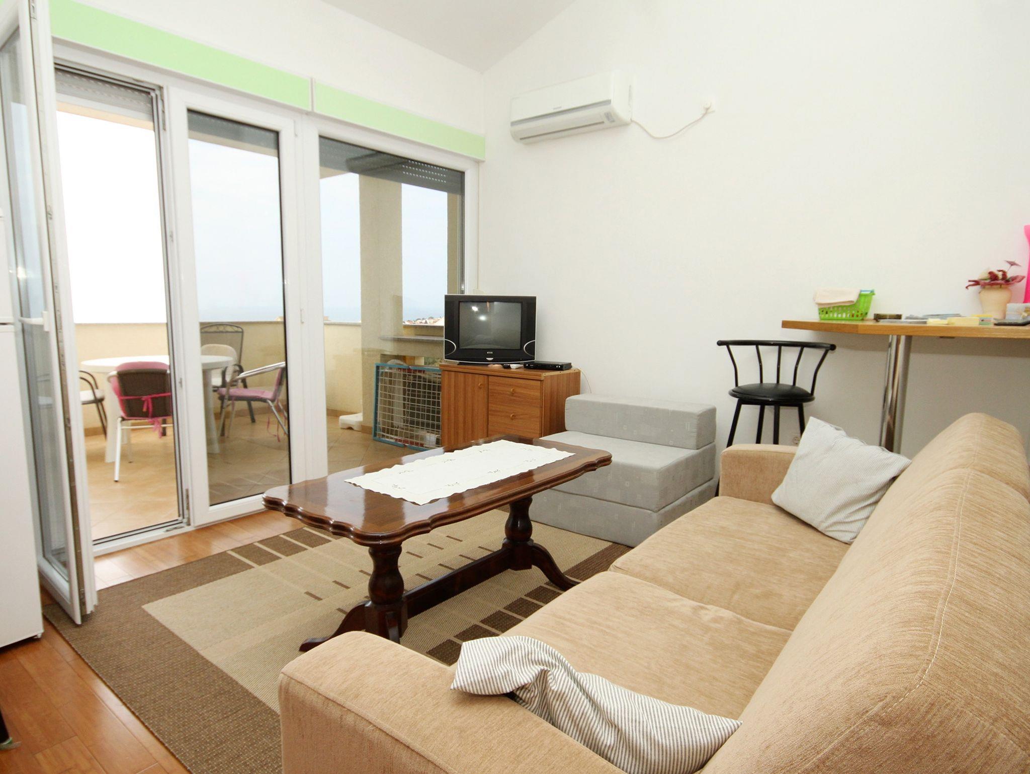Ferienwohnung bietet Platz für 4 Gäste. Die Betten sind in Schlafzimmern, die es 1 gibt, und in Wohnzimmer, innerhalb einer Gesamtfläche von 39m2, angeordnet. Die Gäste haben eine eigene Terrasse zur Verfügung, auf der sie in warmen Sommernächten genießen können. Das Apartment bietet Meerblick. Es ist erlaubt, Speisen auf dem Gemeinschafts-Grill vorzubereiten. IM PREIS INBEGRIFFEN: Kurtaxe, Endreinigung, Klimatisierung, Parkplatz, Internet, Kinderbett, Bügeleisen, Bügelbrett, Föhn. VERBINDLICHE ZUSÄTZLICHE KOSTEN: Aufzahlung für Kurzaufenthalte (prozentualer Zuschlag pro Nächtigungsanzahl: 30% - 1, 20% - 2, 10% - 3). UNVERBINDLICHE ZUSÄTZLICHE KOSTEN: Wäschewaschen (10,00 € Waschen). Die Verfügbarkeit zusätzlicher Dienstleistungen in Ihrem reservierten Termin und die Preise derselben (falls nicht aufgeführt) müssen im Voraus überprüft werden. Zusätzliche Dienstleistungen die in der Zahlungsaufforderung nicht aufgeführt sind werden direkt beim Vermieter bezahlt, angenommen der Gast nutzt auch diese. Ermäßigung auf den Grundpreis: Gratistag 14=13 (bei einem Aufenthalt von 14 Tagen oder mehr erhalten Sie einen Gratistag für den Aufenthalt bis 31.12.26).