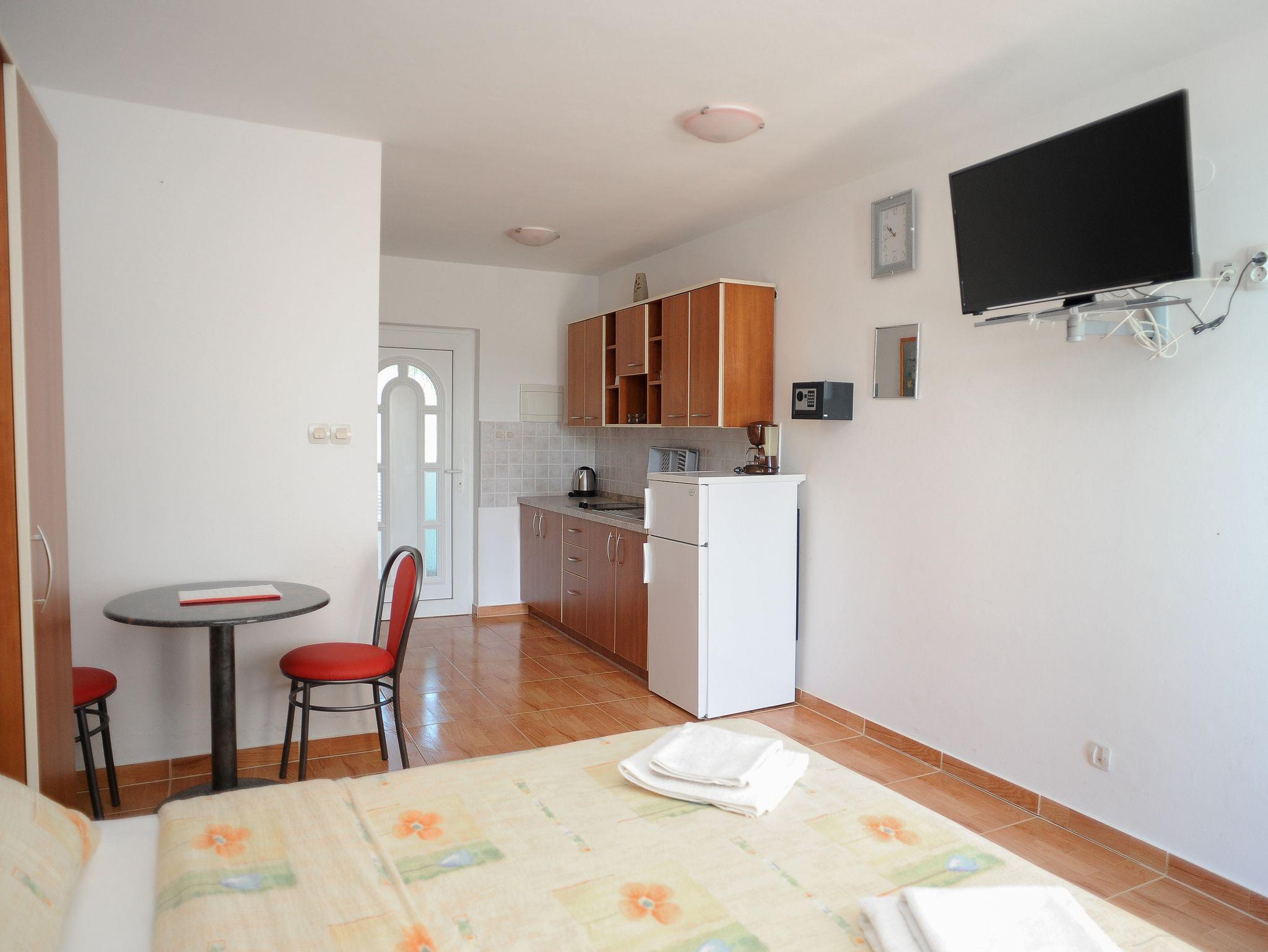 Studio bietet Platz für 2 Gäste. Die Betten sind in Schlafzimmern, die es 1 gibt, innerhalb einer Gesamtfläche von 22m2, angeordnet. Die Gäste haben eine eigene Terrasse zur Verfügung, auf der sie in warmen Sommernächten genießen können. Das Studio-Apartment bietet Meerblick. Während ihres Aufenthalts können Gäste das gemeinsam zur Nutzung stehende Schwimmbad benutzen. IM PREIS INBEGRIFFEN: Endreinigung, Klimatisierung, Pool, Parkplatz, Internet, Föhn. VERBINDLICHE ZUSÄTZLICHE KOSTEN: Kurtaxe (Erwachsene 0,93 € - 1,60 € Nacht/Person, Kinderermäßigung 12 - 17 Jahre), Aufzahlung für Kurzaufenthalte (prozentualer Zuschlag pro Nächtigungsanzahl: 30% - 1, 20% - 2, 10% - 3). UNVERBINDLICHE ZUSÄTZLICHE KOSTEN: Frühstück (10,00 €, 50% Nachlass für Kinder zwischen 4 und 12 Jahren, Kinder bis 4 Jahre sind frei.), Halbpension (30,00 €, 50% Nachlass für Kinder zwischen 4 und 12 Jahren, Kinder bis 4 Jahre sind frei.), Wäschewaschen (20,00 € Waschen), Zusatzbett (15,00 € pro Nacht). Die Verfügbarkeit zusätzlicher Dienstleistungen in Ihrem reservierten Termin und die Preise derselben (falls nicht aufgeführt) müssen im Voraus überprüft werden. Zusätzliche Dienstleistungen die in der Zahlungsaufforderung nicht aufgeführt sind werden direkt beim Vermieter bezahlt, angenommen der Gast nutzt auch diese. Ermäßigung auf den Grundpreis: Gratistag 28=25 (bei einem Aufenthalt von 28 oder mehr Tagen erhalten Sie 3 kostenlose Tage für den Aufenthalt bis 31.12.26).