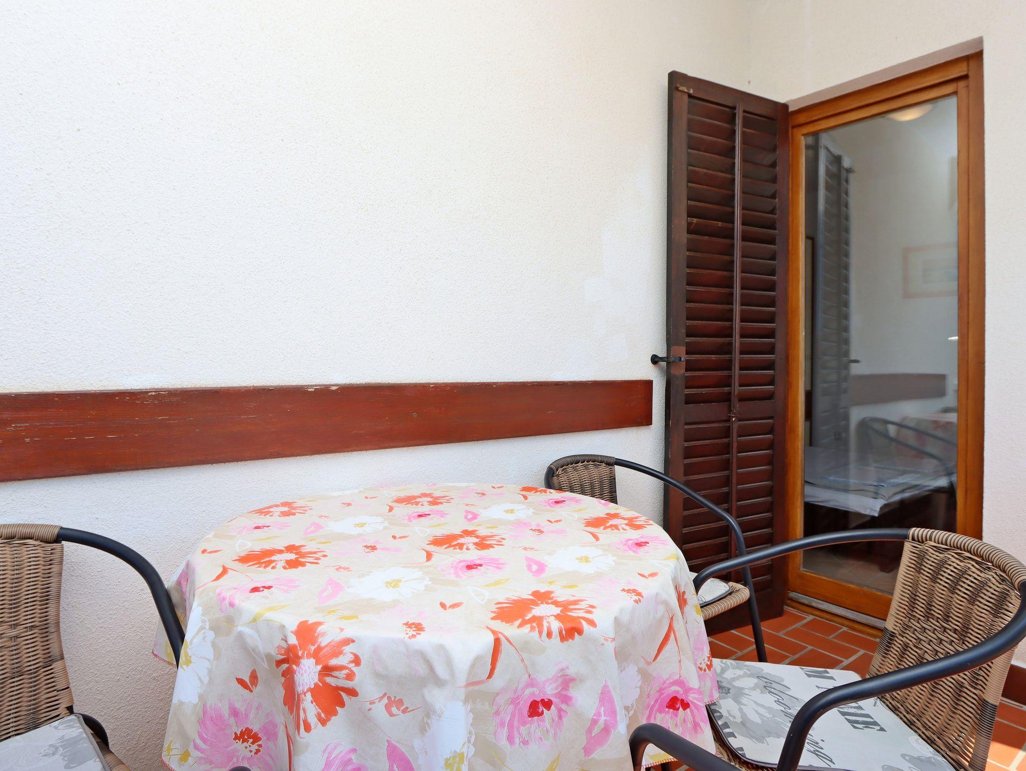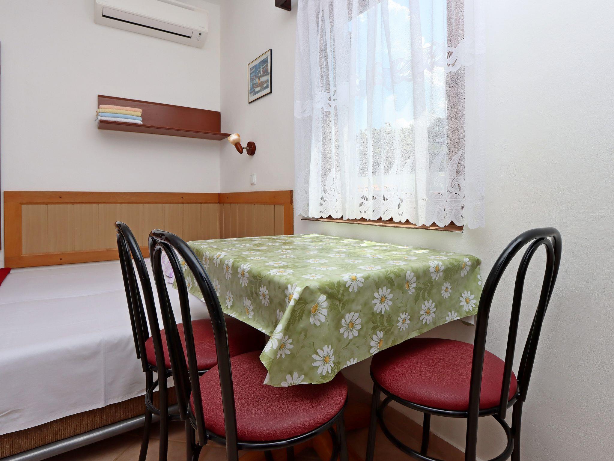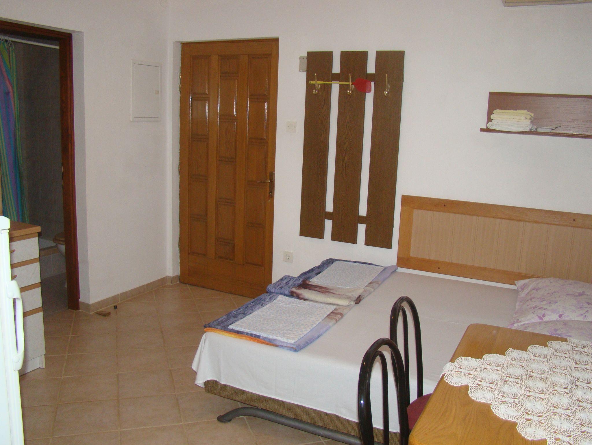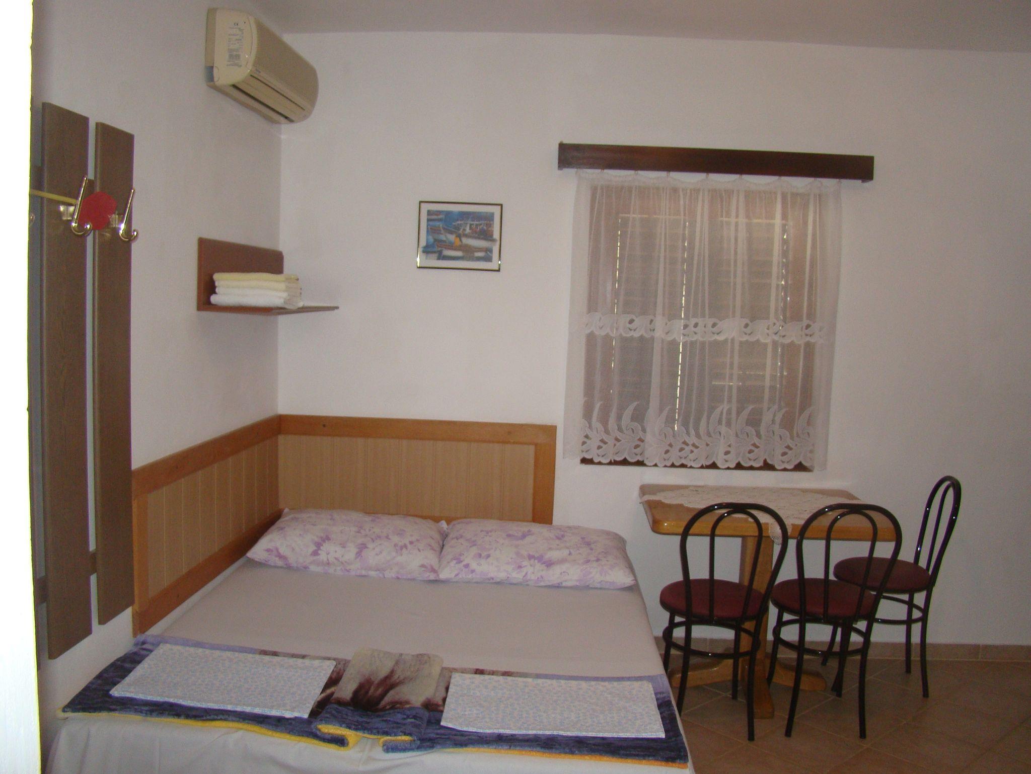 Ferienwohnung bietet Platz für 4 Gäste. Die Betten sind in Schlafzimmern, die es 1 gibt, und in Esszimmer, innerhalb einer Gesamtfläche von 25m2, angeordnet. Die Gäste haben eine eigene Terrasse zur Verfügung, auf der sie in warmen Sommernächten genießen können. Das Apartment bietet Meerblick. Es ist erlaubt, Speisen auf dem Gemeinschafts-Grill vorzubereiten. IM PREIS INBEGRIFFEN: Kurtaxe, Endreinigung, Klimatisierung, Parkplatz, Internet, Fahrrad, Kinderbett, Bügeleisen, Bügelbrett, Föhn. VERBINDLICHE ZUSÄTZLICHE KOSTEN: Aufzahlung für Kurzaufenthalte (prozentualer Zuschlag pro Nächtigungsanzahl: 30% - 1, 20% - 2, 10% - 3). Die Verfügbarkeit zusätzlicher Dienstleistungen in Ihrem reservierten Termin und die Preise derselben (falls nicht aufgeführt) müssen im Voraus überprüft werden. Zusätzliche Dienstleistungen die in der Zahlungsaufforderung nicht aufgeführt sind werden direkt beim Vermieter bezahlt, angenommen der Gast nutzt auch diese. Ermäßigung auf den Grundpreis: Gratistag 21=19 (bei einem Aufenthalt von 21 Tagen oder mehr erhalten Sie 2 Gratistage für den Aufenthalt bis 31.12.26).