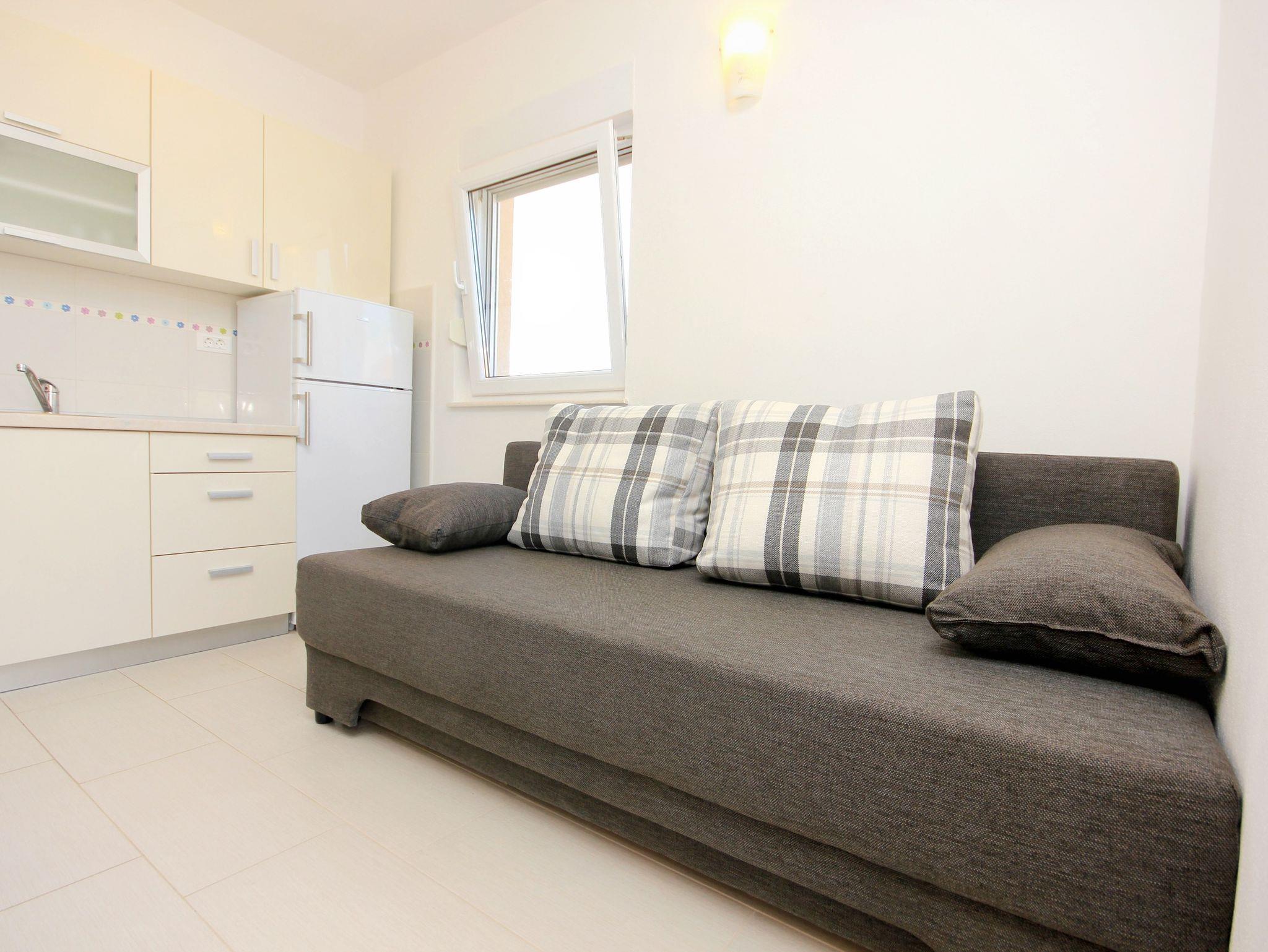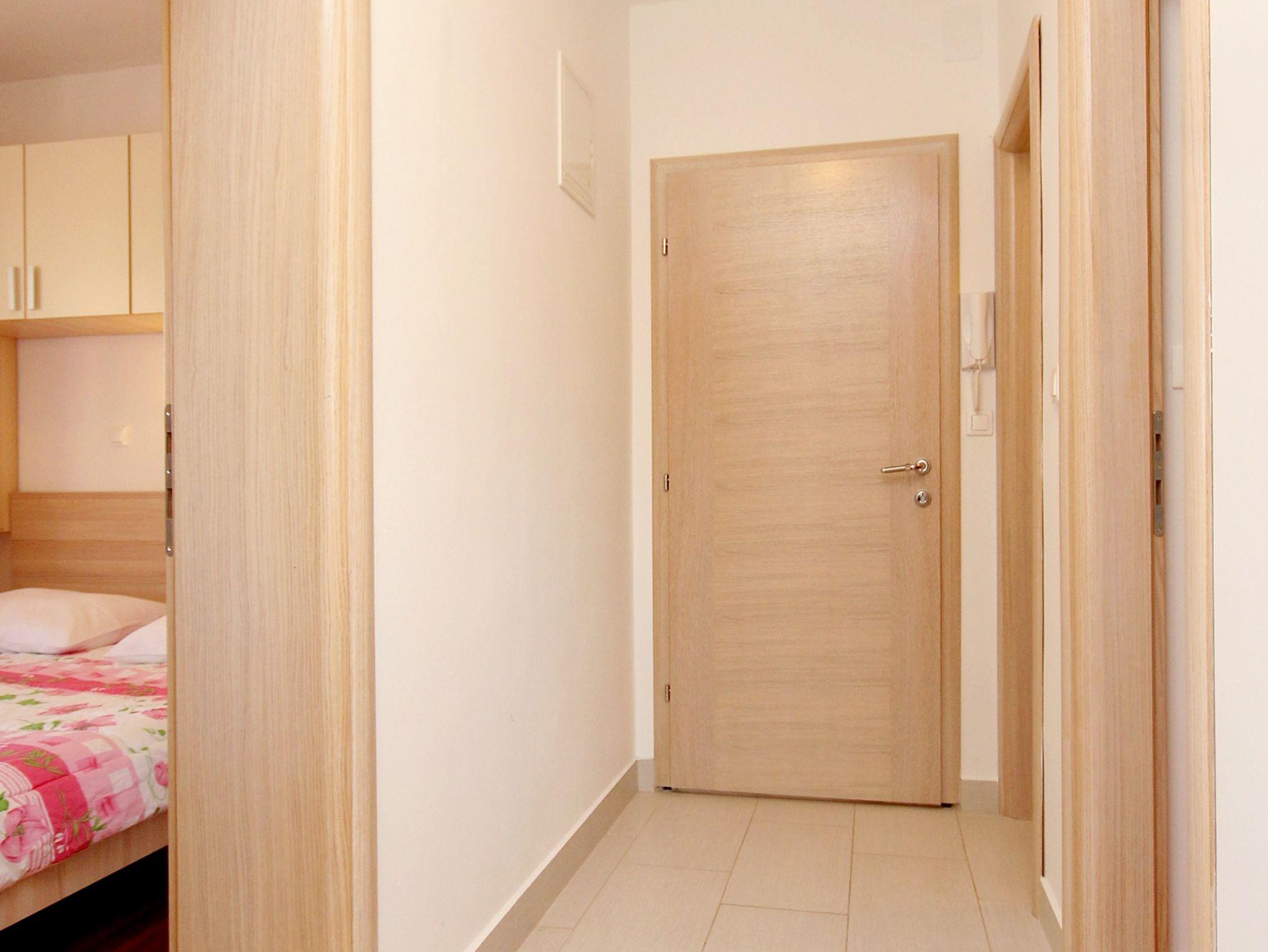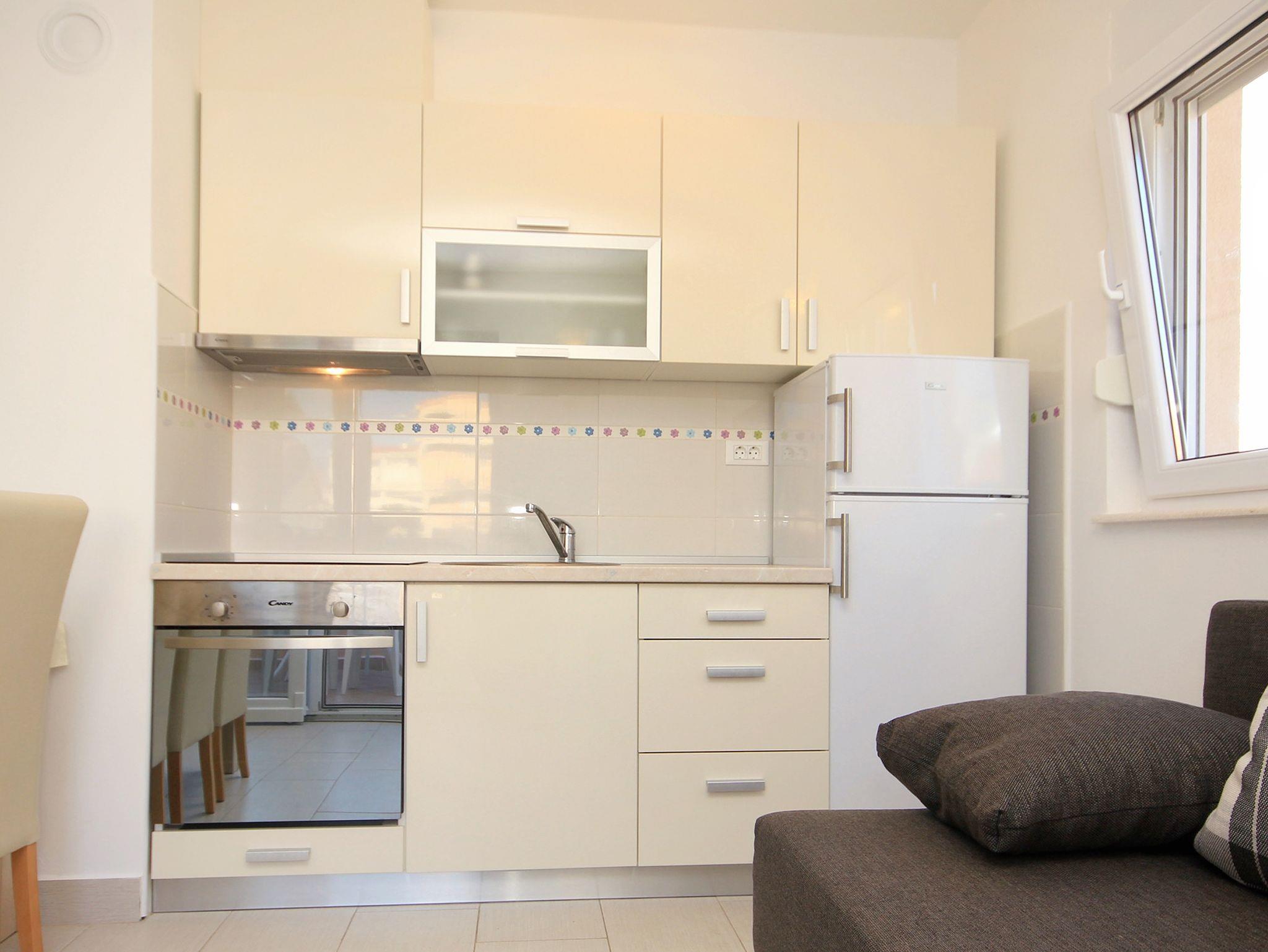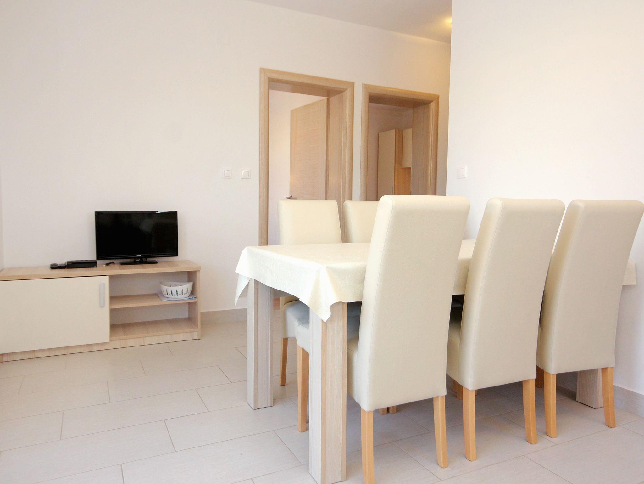 Ferienwohnung bietet Platz für 6 Gäste. Die Betten sind in Schlafzimmern, die es 2 gibt, und in Esszimmer, innerhalb einer Gesamtfläche von 37m2, angeordnet. Die Gäste haben eine eigene Terrasse zur Verfügung, auf der sie in warmen Sommernächten genießen können. Es ist erlaubt, Speisen auf dem Gemeinschafts-Grill vorzubereiten. IM PREIS INBEGRIFFEN: Kurtaxe, Endreinigung, Klimatisierung, Parkplatz, Internet, Kinderbett, Bügeleisen, Bügelbrett, Föhn. VERBINDLICHE ZUSÄTZLICHE KOSTEN: Aufzahlung für Kurzaufenthalte (prozentualer Zuschlag pro Nächtigungsanzahl: 30% - 1, 20% - 2, 10% - 3). Die Verfügbarkeit zusätzlicher Dienstleistungen in Ihrem reservierten Termin und die Preise derselben (falls nicht aufgeführt) müssen im Voraus überprüft werden. Zusätzliche Dienstleistungen die in der Zahlungsaufforderung nicht aufgeführt sind werden direkt beim Vermieter bezahlt, angenommen der Gast nutzt auch diese. Ermäßigung auf den Grundpreis: Gratistag 14=13 (bei einem Aufenthalt von 14 Tagen oder mehr erhalten Sie einen Gratistag für den Aufenthalt bis 31.12.26).