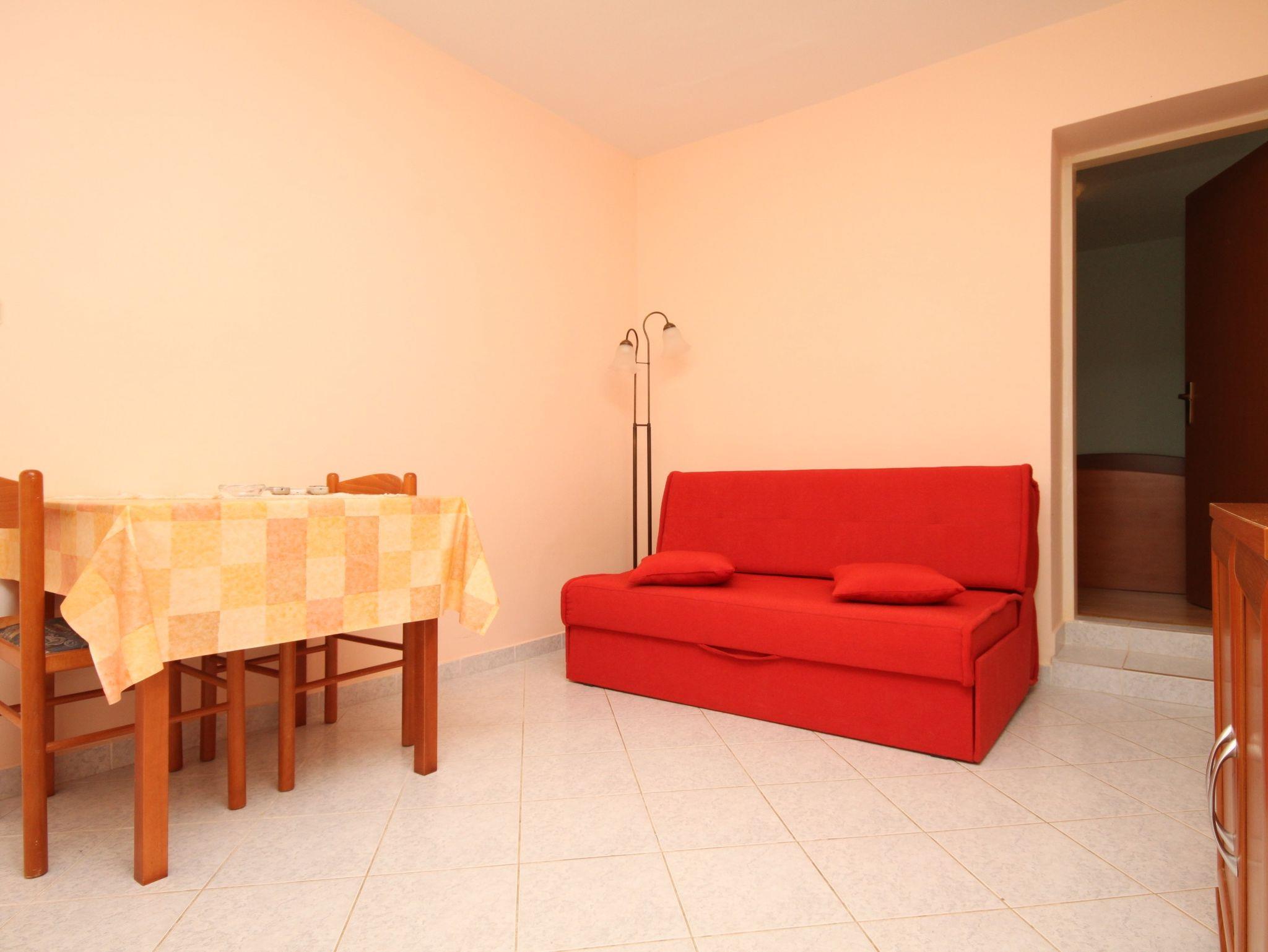 Ferienwohnung bietet Platz für 4 Gäste. Die Betten sind in Schlafzimmern, die es 1 gibt, und in Esszimmer, innerhalb einer Gesamtfläche von 29m2, angeordnet. Die Gäste haben eine eigene Terrasse zur Verfügung, auf der sie in warmen Sommernächten genießen können. Das Apartment bietet Meerblick. Es ist erlaubt, Speisen auf dem Gemeinschafts-Grill vorzubereiten. In der gebuchten Unterkunftseinheit zahlt man am Ort ein Depositum ( der Preis ist an der Internetseite angeführt ). IM PREIS INBEGRIFFEN: Kurtaxe, Endreinigung, Klimatisierung, Parkplatz, Internet. VERBINDLICHE ZUSÄTZLICHE KOSTEN: Kaution (150,00 € Einmalzahlung), Aufzahlung für Kurzaufenthalte (prozentualer Zuschlag pro Nächtigungsanzahl: 30% - 1, 20% - 2, 10% - 3). UNVERBINDLICHE ZUSÄTZLICHE KOSTEN: Wäschewaschen (10,00 € Waschen), Zusatzbett (10,00 € pro Nacht). Die Verfügbarkeit zusätzlicher Dienstleistungen in Ihrem reservierten Termin und die Preise derselben (falls nicht aufgeführt) müssen im Voraus überprüft werden. Zusätzliche Dienstleistungen die in der Zahlungsaufforderung nicht aufgeführt sind werden direkt beim Vermieter bezahlt, angenommen der Gast nutzt auch diese.