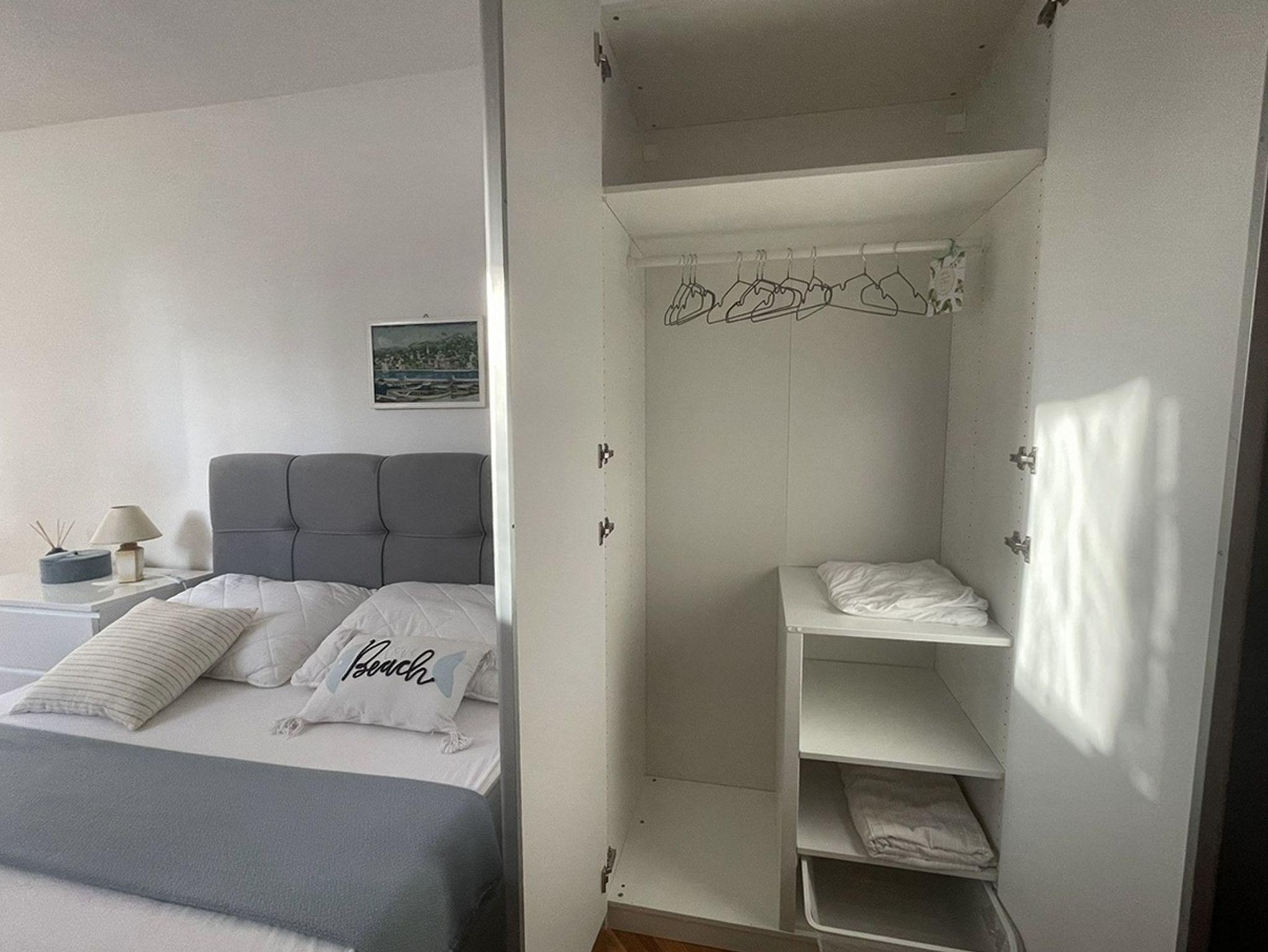Studio bietet Platz für 2 Gäste. Die Betten sind in Schlafzimmern, die es 1 gibt, innerhalb einer Gesamtfläche von 18m2, angeordnet. Die Gäste haben eine eigene Terrasse zur Verfügung, auf der sie in warmen Sommernächten genießen können. Es ist erlaubt, Speisen auf dem Gemeinschafts-Grill vorzubereiten. IM PREIS INBEGRIFFEN: Kurtaxe, Endreinigung, Klimatisierung, Parkplatz, Internet, Bootsanlegeplatz, Bügeleisen, Bügelbrett, tragbarer Grill, Sonnenschirm, Liegestühle. VERBINDLICHE ZUSÄTZLICHE KOSTEN: Aufzahlung für Kurzaufenthalte (prozentualer Zuschlag pro Nächtigungsanzahl: 30% - 1, 20% - 2, 10% - 3). Die Verfügbarkeit zusätzlicher Dienstleistungen in Ihrem reservierten Termin und die Preise derselben (falls nicht aufgeführt) müssen im Voraus überprüft werden. Zusätzliche Dienstleistungen die in der Zahlungsaufforderung nicht aufgeführt sind werden direkt beim Vermieter bezahlt, angenommen der Gast nutzt auch diese. Ermäßigung auf den Grundpreis: Gratistag 14=13 (bei einem Aufenthalt von 14 Tagen oder mehr erhalten Sie einen Gratistag für den Aufenthalt bis 31.12.26).