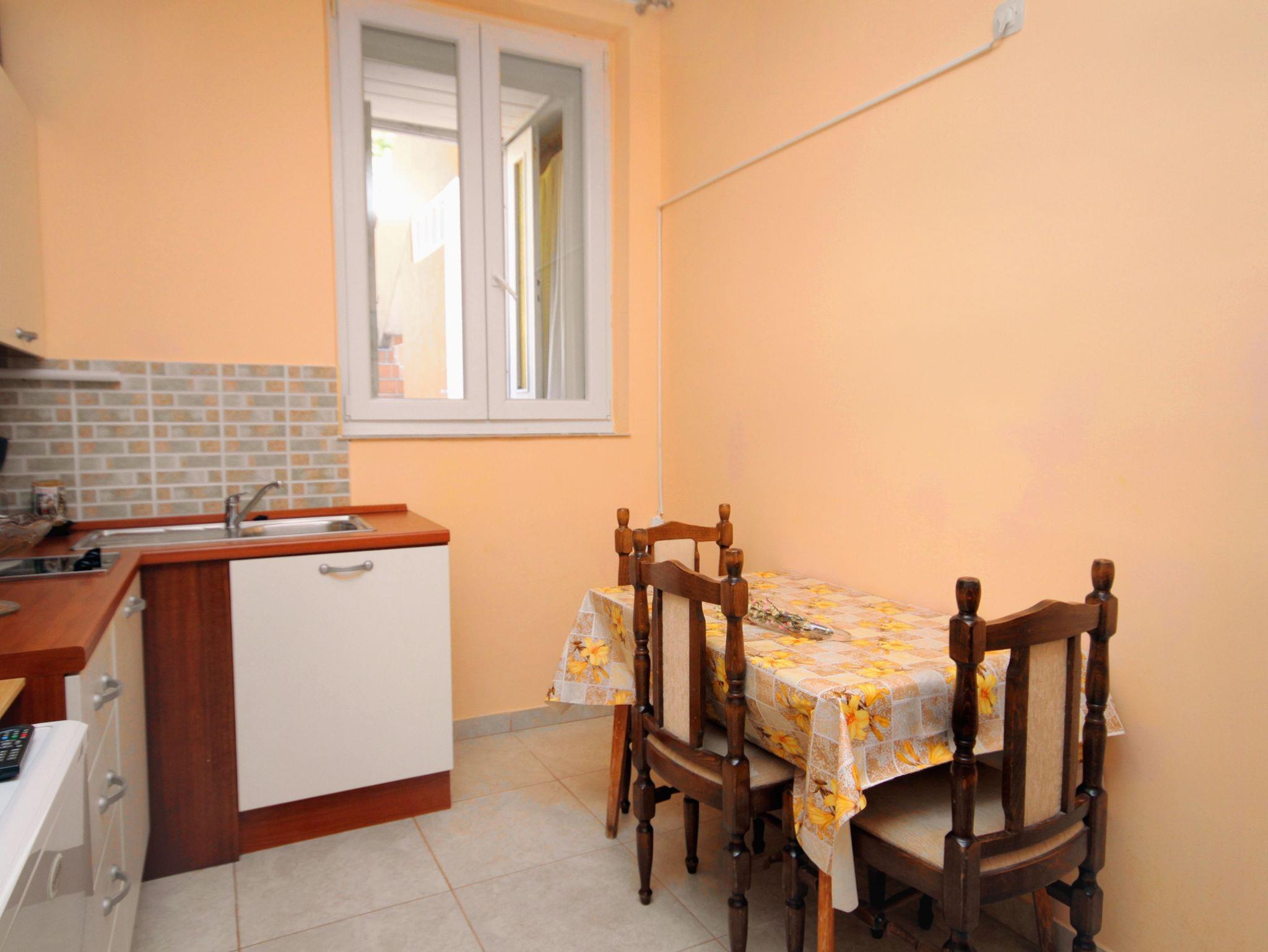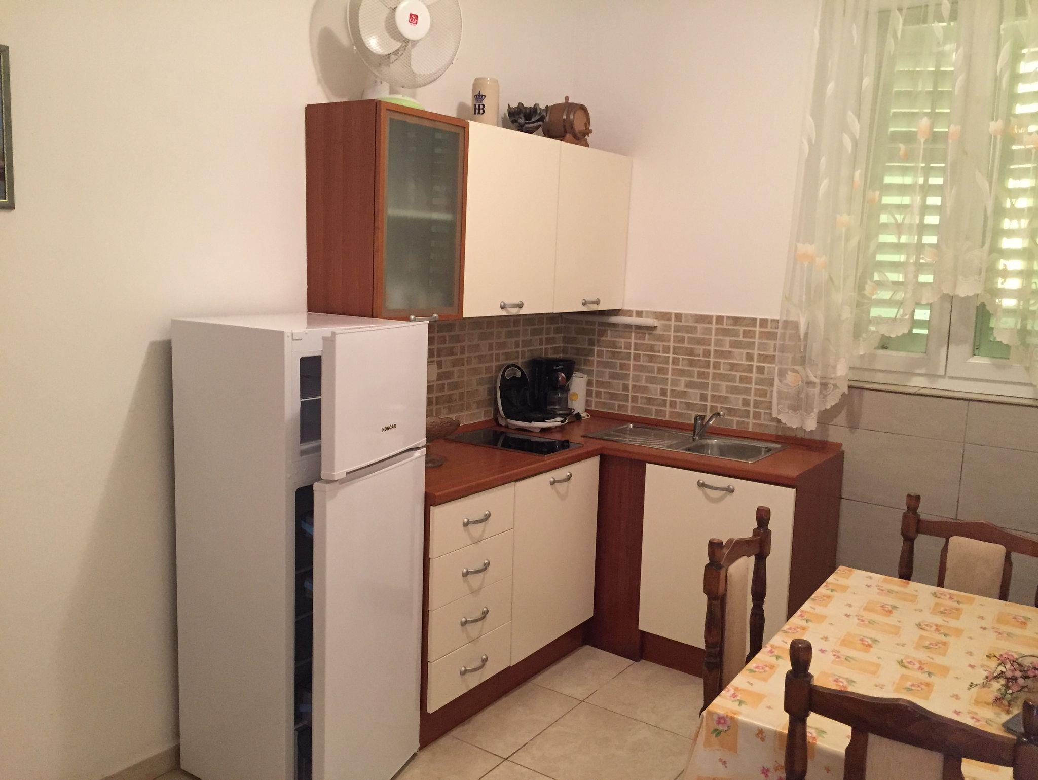 Ferienwohnung bietet Platz für 4 Gäste. Die Betten sind in Schlafzimmern, die es 1 gibt, und in Wohnzimmer, innerhalb einer Gesamtfläche von 31m2, angeordnet. Die Gäste haben eine eigene Terrasse zur Verfügung, auf der sie in warmen Sommernächten genießen können. Das Apartment bietet Meerblick. Es ist erlaubt, Speisen auf dem Gemeinschafts-Grill vorzubereiten. In der Unterkunftseinheit besteht die Möglichkeit des Mitbringens von Haustieren gegen Aufpreis. IM PREIS INBEGRIFFEN: Kurtaxe, Endreinigung, Parkplatz, Internet, Bootsanlegeplatz, Föhn, Sonnenschirm, Liegestühle. VERBINDLICHE ZUSÄTZLICHE KOSTEN: Aufzahlung für Kurzaufenthalte (prozentualer Zuschlag pro Nächtigungsanzahl: 30% - 1, 20% - 2, 10% - 3). UNVERBINDLICHE ZUSÄTZLICHE KOSTEN: Klimatisierung (5,00 € pro Nacht), Haustiere (5,00 € pro Nacht). Die Verfügbarkeit zusätzlicher Dienstleistungen in Ihrem reservierten Termin und die Preise derselben (falls nicht aufgeführt) müssen im Voraus überprüft werden. Zusätzliche Dienstleistungen die in der Zahlungsaufforderung nicht aufgeführt sind werden direkt beim Vermieter bezahlt, angenommen der Gast nutzt auch diese.