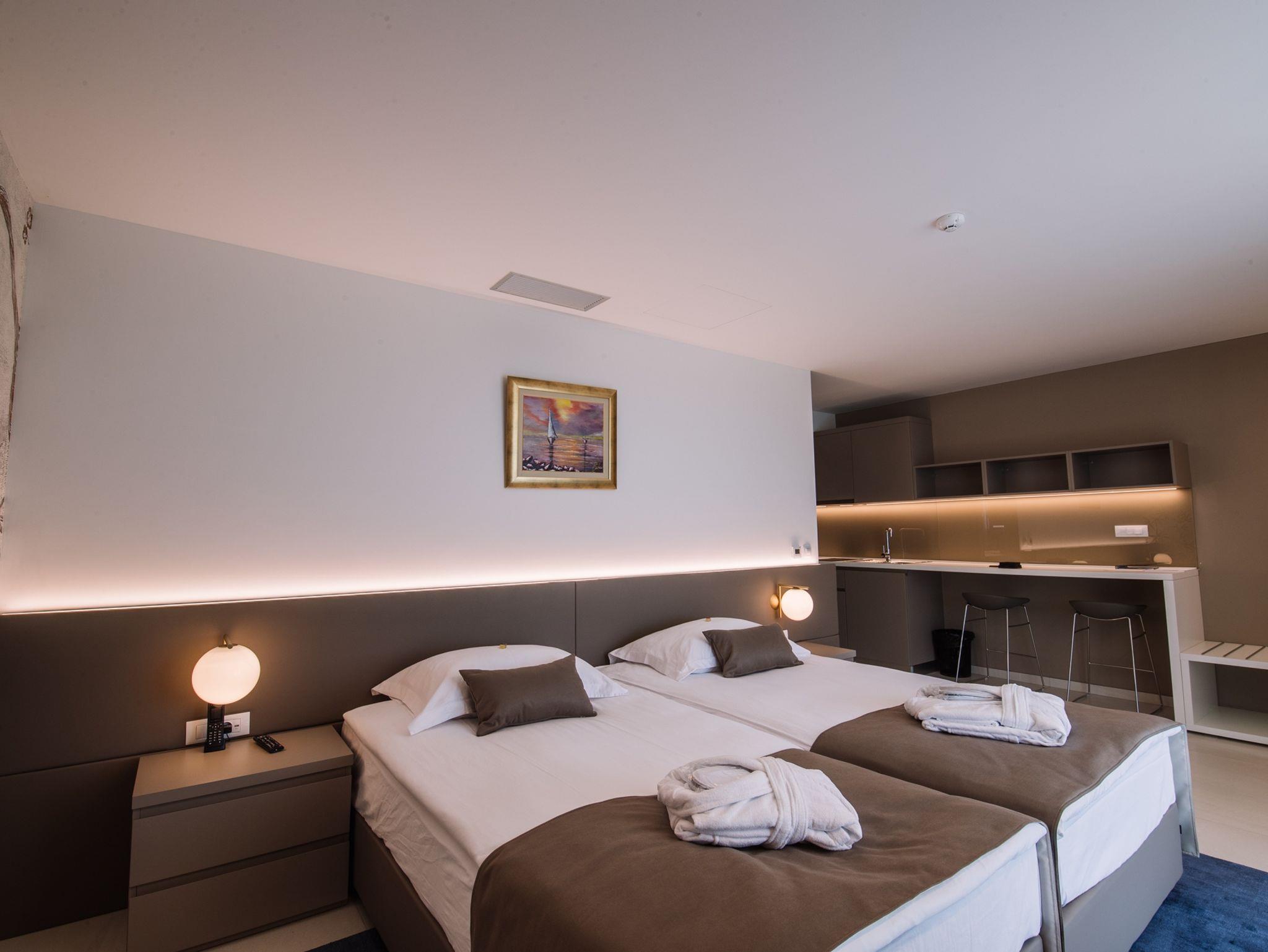 Studio bietet Platz für 2 Gäste. Die Betten sind in Schlafzimmern, die es 1 gibt, innerhalb einer Gesamtfläche von 31m2, angeordnet. Die Gäste haben einen eigenen Balkon zur Verfügung, auf der sie in warmen Sommernächten genießen können. Das Studio-Apartment bietet Meerblick. Während ihres Aufenthalts können Gäste das gemeinsam zur Nutzung stehende Schwimmbad benutzen. In der Unterkunftseinheit besteht die Möglichkeit des Mitbringens von Haustieren gegen Aufpreis. IM PREIS INBEGRIFFEN: Frühstück, Endreinigung, Klimatisierung, Zentralheizung, Pool, Parkplatz, Internet, Kinderbett, Bügeleisen, Bügelbrett, Föhn. VERBINDLICHE ZUSÄTZLICHE KOSTEN: Kurtaxe (Erwachsene 0,93 € - 1,60 € Nacht/Person, Kinderermäßigung 12 - 17 Jahre). UNVERBINDLICHE ZUSÄTZLICHE KOSTEN: Haustiere (15,00 € pro Nacht). Die Verfügbarkeit zusätzlicher Dienstleistungen in Ihrem reservierten Termin und die Preise derselben (falls nicht aufgeführt) müssen im Voraus überprüft werden. Zusätzliche Dienstleistungen die in der Zahlungsaufforderung nicht aufgeführt sind werden direkt beim Vermieter bezahlt, angenommen der Gast nutzt auch diese. Ermäßigung auf den Grundpreis: Gratistag 14=13 (bei einem Aufenthalt von 14 Tagen oder mehr erhalten Sie einen Gratistag für den Aufenthalt bis 31.12.26).