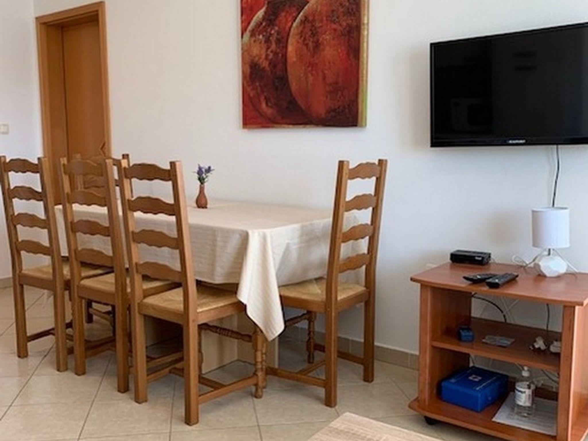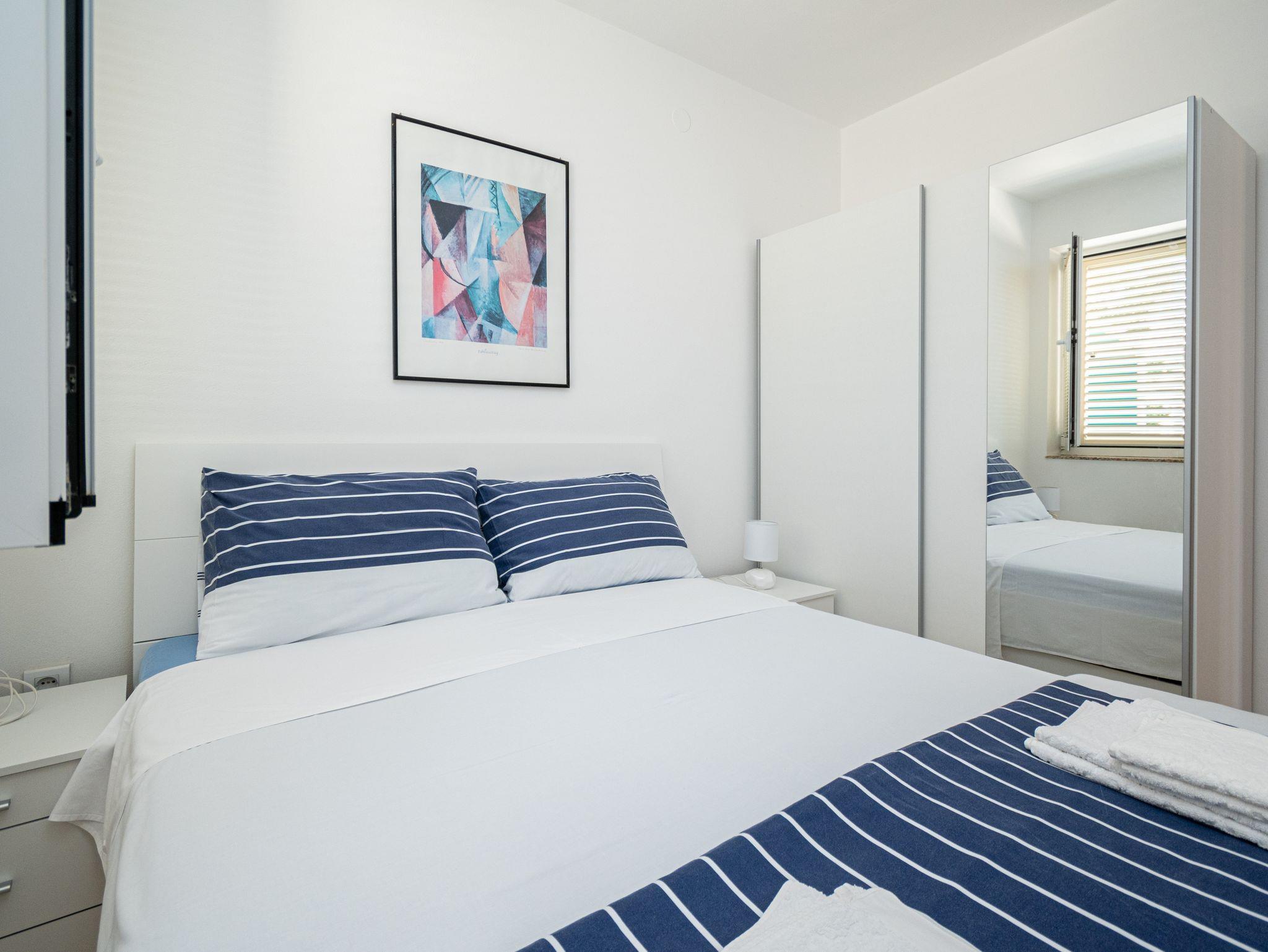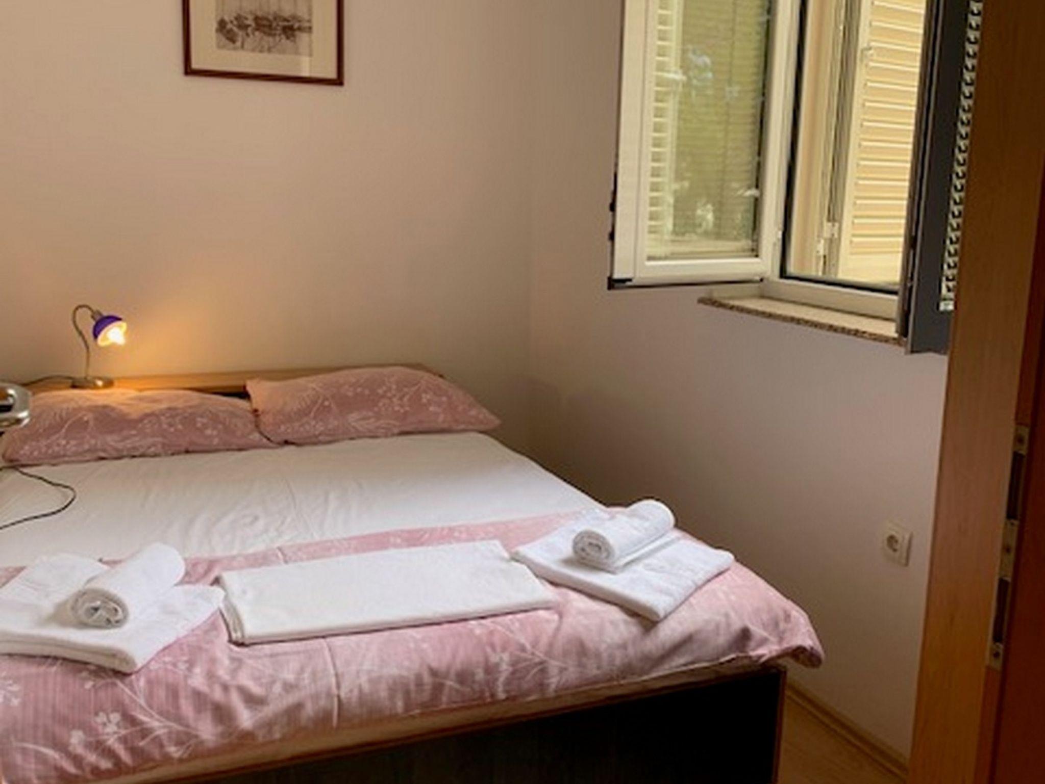 Ferienwohnung bietet Platz für 6 Gäste. Die Betten sind in Schlafzimmern, die es 3 gibt, innerhalb einer Gesamtfläche von 55m2, angeordnet. Die Gäste haben eine eigene Terrasse zur Verfügung, auf der sie in warmen Sommernächten genießen können. Das Apartment bietet Meerblick. Es ist erlaubt, Speisen auf dem Gemeinschafts-Grill vorzubereiten. In der Unterkunftseinheit besteht die Möglichkeit des Mitbringens von Haustieren gegen Aufpreis. IM PREIS INBEGRIFFEN: Kurtaxe, Endreinigung, Klimatisierung, Parkplatz, Internet, Wäschewaschen, Bootsanlegeplatz, Kinderbett, Föhn, Sonnenschirm, Liegestühle. UNVERBINDLICHE ZUSÄTZLICHE KOSTEN: Haustiere (15,00 € pro Nacht). Die Verfügbarkeit zusätzlicher Dienstleistungen in Ihrem reservierten Termin und die Preise derselben (falls nicht aufgeführt) müssen im Voraus überprüft werden. Zusätzliche Dienstleistungen die in der Zahlungsaufforderung nicht aufgeführt sind werden direkt beim Vermieter bezahlt, angenommen der Gast nutzt auch diese. Ermäßigung auf den Grundpreis: Gratistag 14=13 (bei einem Aufenthalt von 14 Tagen oder mehr erhalten Sie einen Gratistag für den Aufenthalt bis 31.12.26).