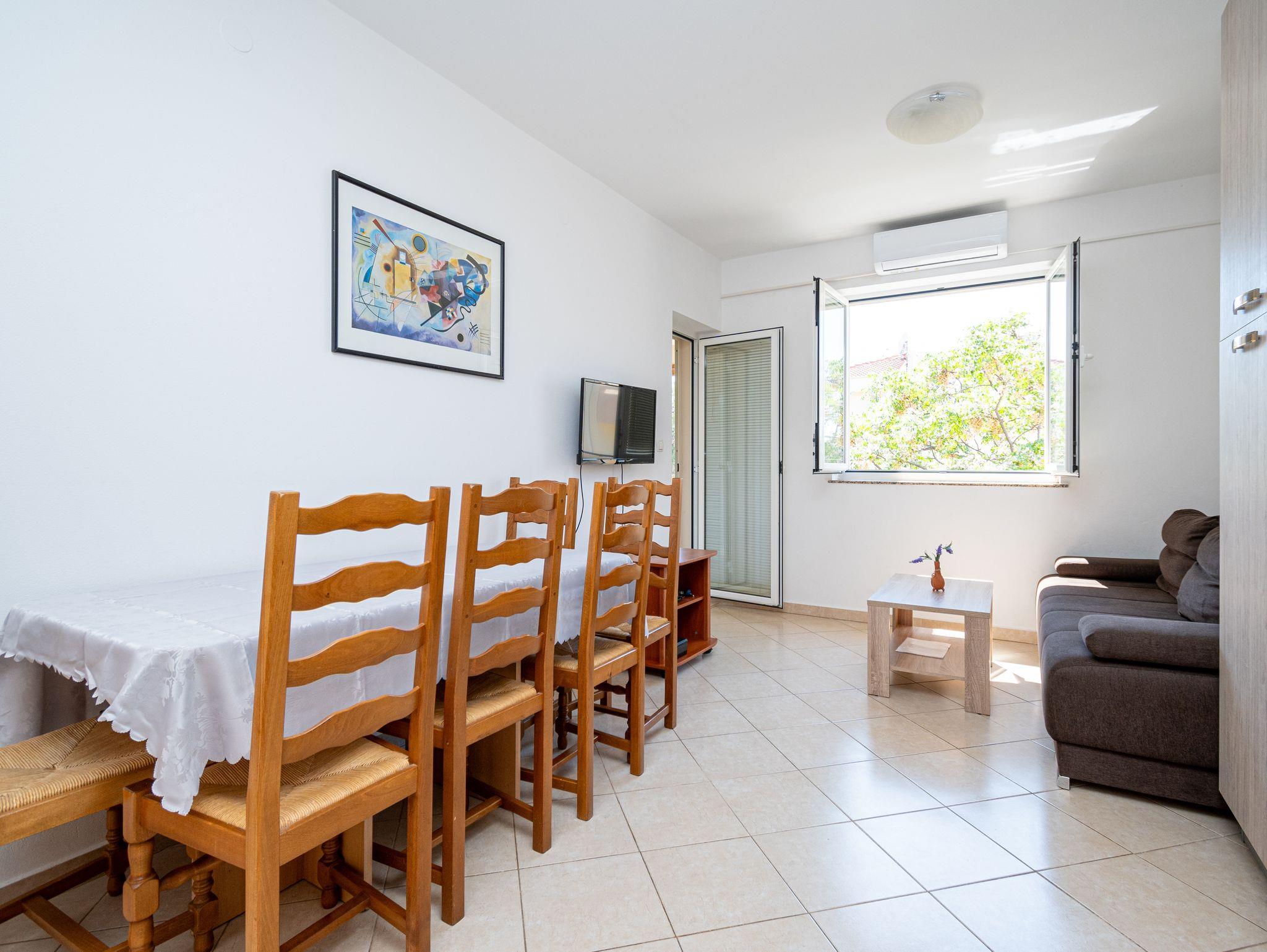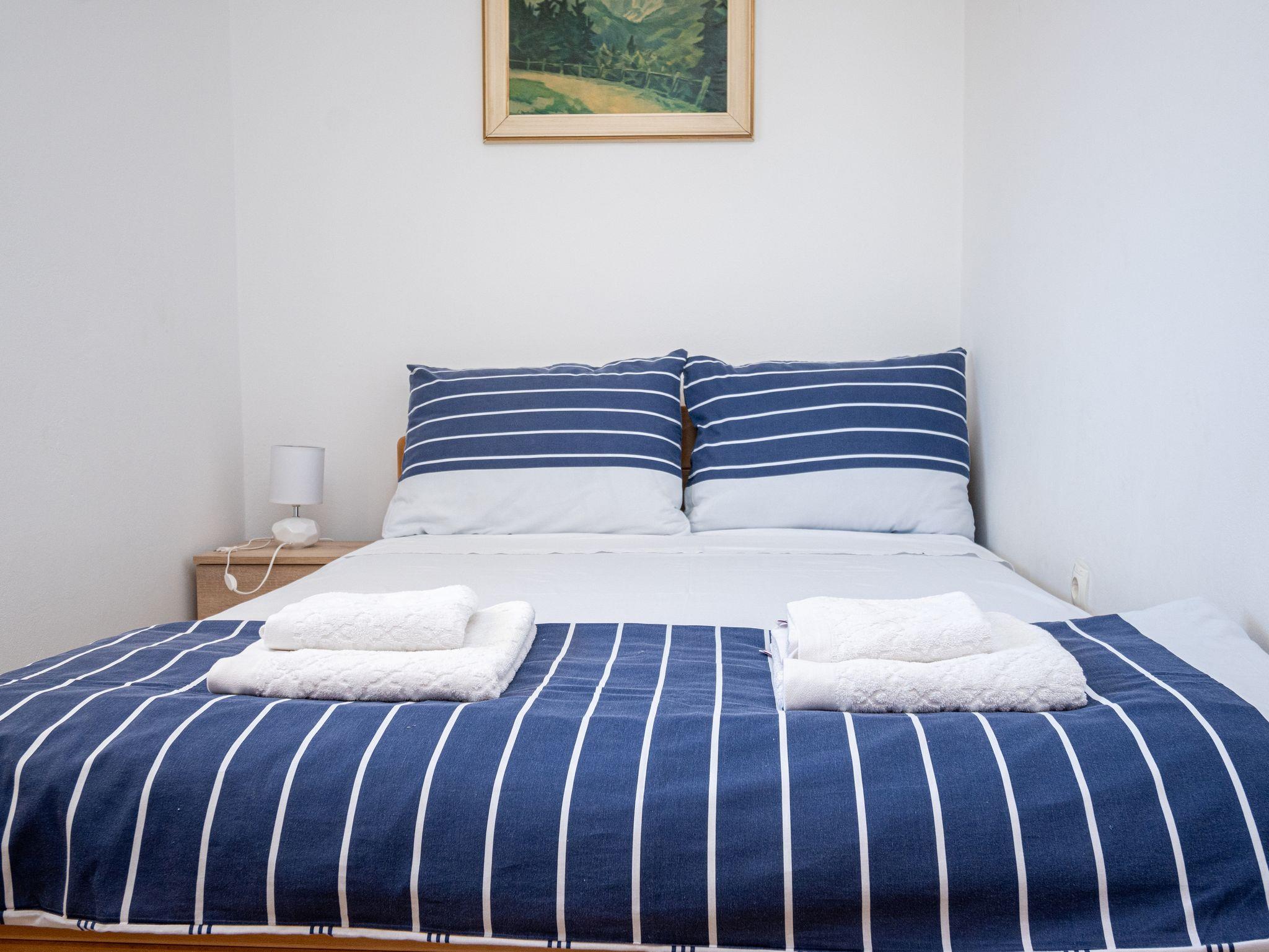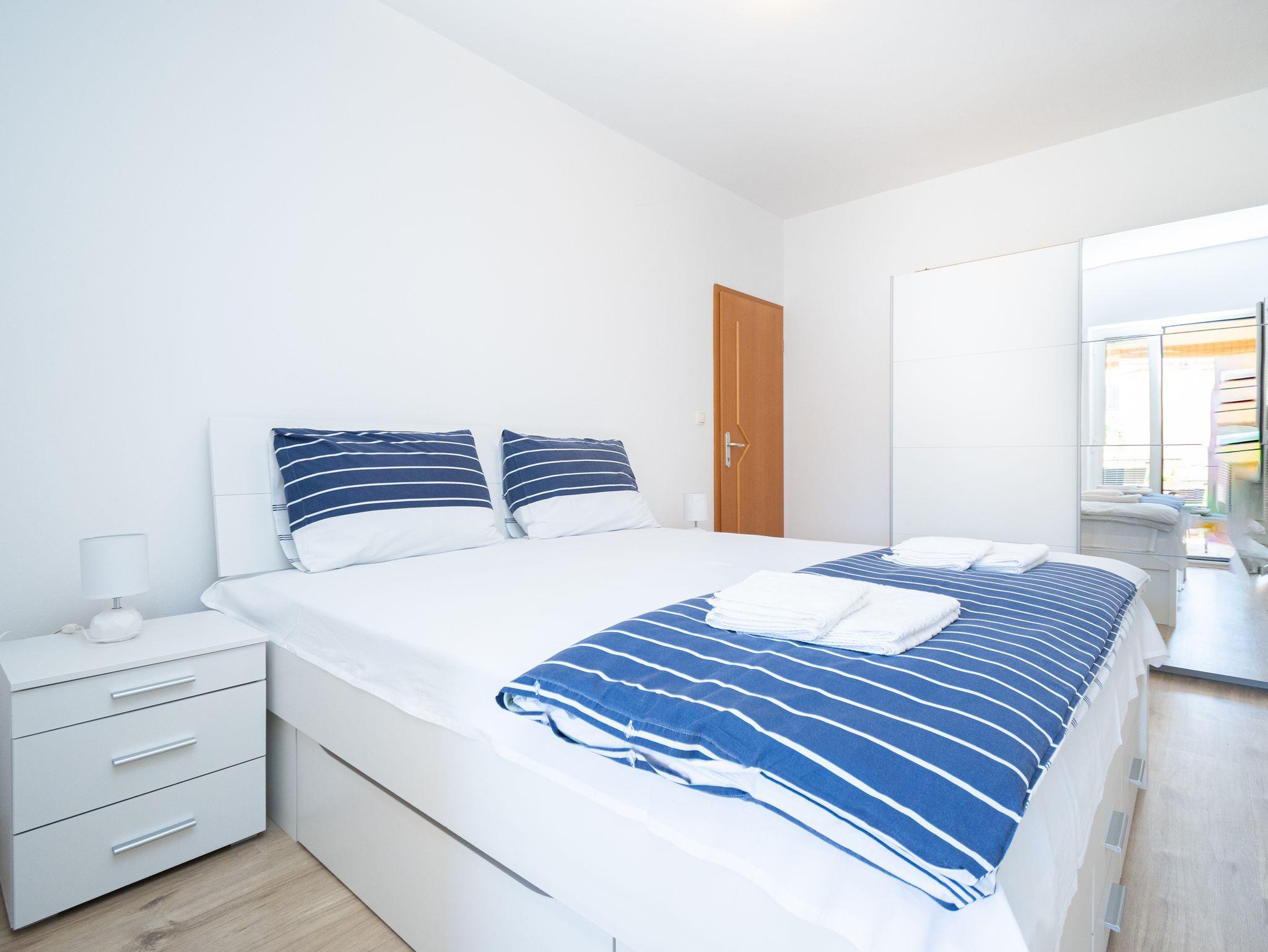 Ferienwohnung bietet Platz für 6 Gäste. Die Betten sind in Schlafzimmern, die es 3 gibt, innerhalb einer Gesamtfläche von 55m2, angeordnet. Die Gäste haben eine eigene Terrasse zur Verfügung, auf der sie in warmen Sommernächten genießen können. Das Apartment bietet Meerblick. Es ist erlaubt, Speisen auf dem Gemeinschafts-Grill vorzubereiten. In der Unterkunftseinheit besteht die Möglichkeit des Mitbringens von Haustieren gegen Aufpreis. IM PREIS INBEGRIFFEN: Kurtaxe, Endreinigung, Klimatisierung, Parkplatz, Internet, Wäschewaschen, Bootsanlegeplatz, Kinderbett, Föhn, Sonnenschirm, Liegestühle. UNVERBINDLICHE ZUSÄTZLICHE KOSTEN: Haustiere (15,00 € pro Nacht). Die Verfügbarkeit zusätzlicher Dienstleistungen in Ihrem reservierten Termin und die Preise derselben (falls nicht aufgeführt) müssen im Voraus überprüft werden. Zusätzliche Dienstleistungen die in der Zahlungsaufforderung nicht aufgeführt sind werden direkt beim Vermieter bezahlt, angenommen der Gast nutzt auch diese. Ermäßigung auf den Grundpreis: Gratistag 14=13 (bei einem Aufenthalt von 14 Tagen oder mehr erhalten Sie einen Gratistag für den Aufenthalt bis 31.12.26).