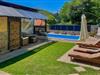 Nyd den private pool, som er omgivet af en stor terrasse og frodige grønne områder. Slå jer ned på de komfortable liggestole og mærk den varme kroatiske sol. Tag en forfriskende dukkert i poolen eller slap af i det hyggelige udendørs opholdsområde, mens I nyder den friske luft, naturens stilhed og udsigten over det omkringliggende bjerglandskab.