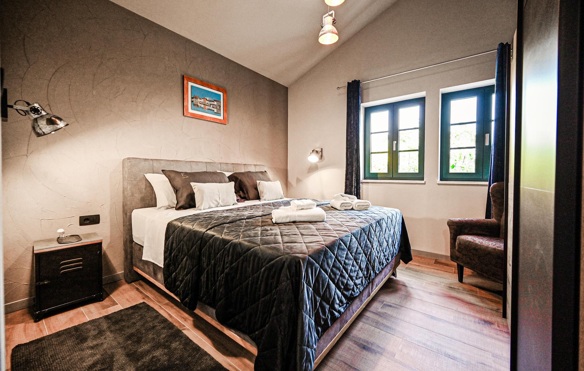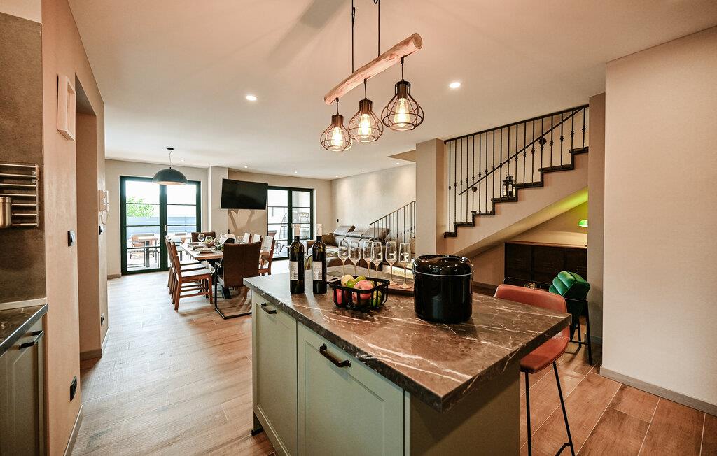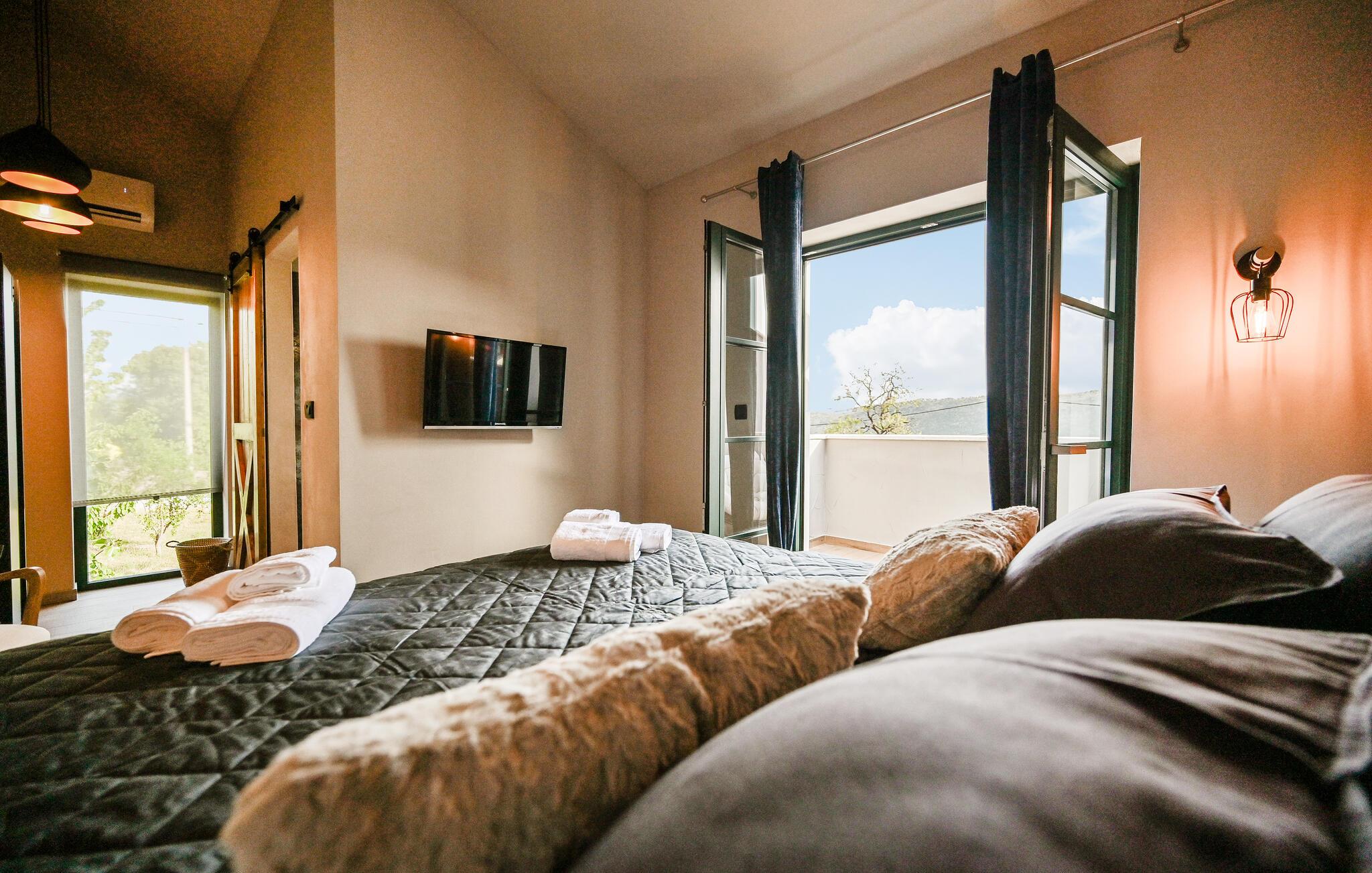 Huset ligger kun få minutters kørsel fra de nærmeste strande, og i samme bygning ligger et andet feriehus, som kan bookes, hvis I ønsker at rejse som en større gruppe, uden at give køb på privatlivets fred. Indretningen er virkelig fin og skaber en nærmest hjemlig atmosfære med masser af fred og ro. På første sal ligger de komfortable soveværelser, og i stueetagen ligger opholdsrummene, hvor der er lagt op til klassisk feriehygge med madlavning, fælles måltider og afslapning i sofaen.