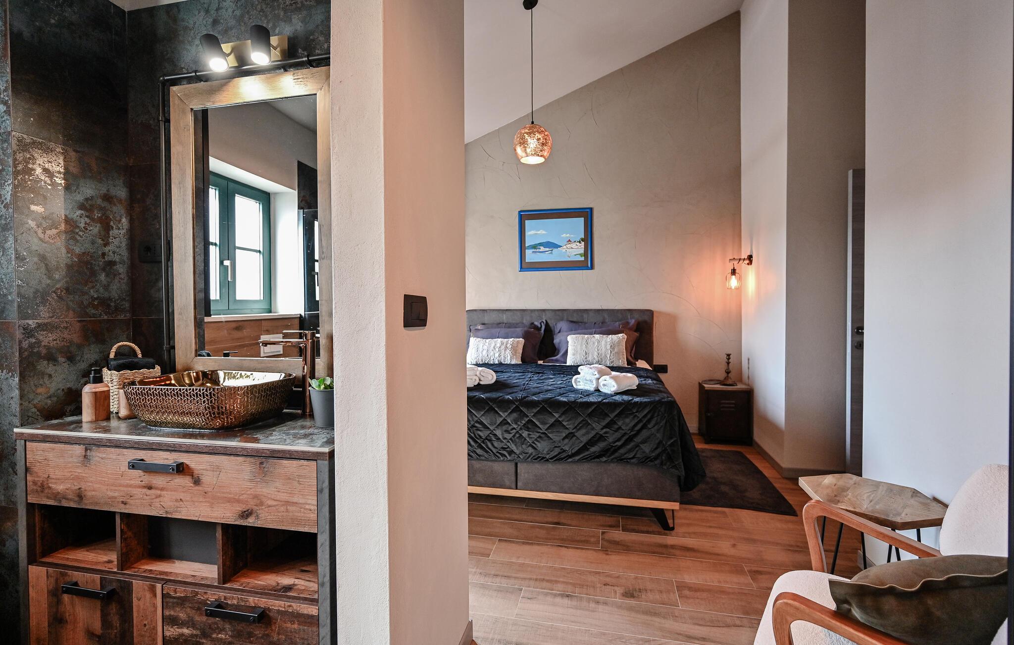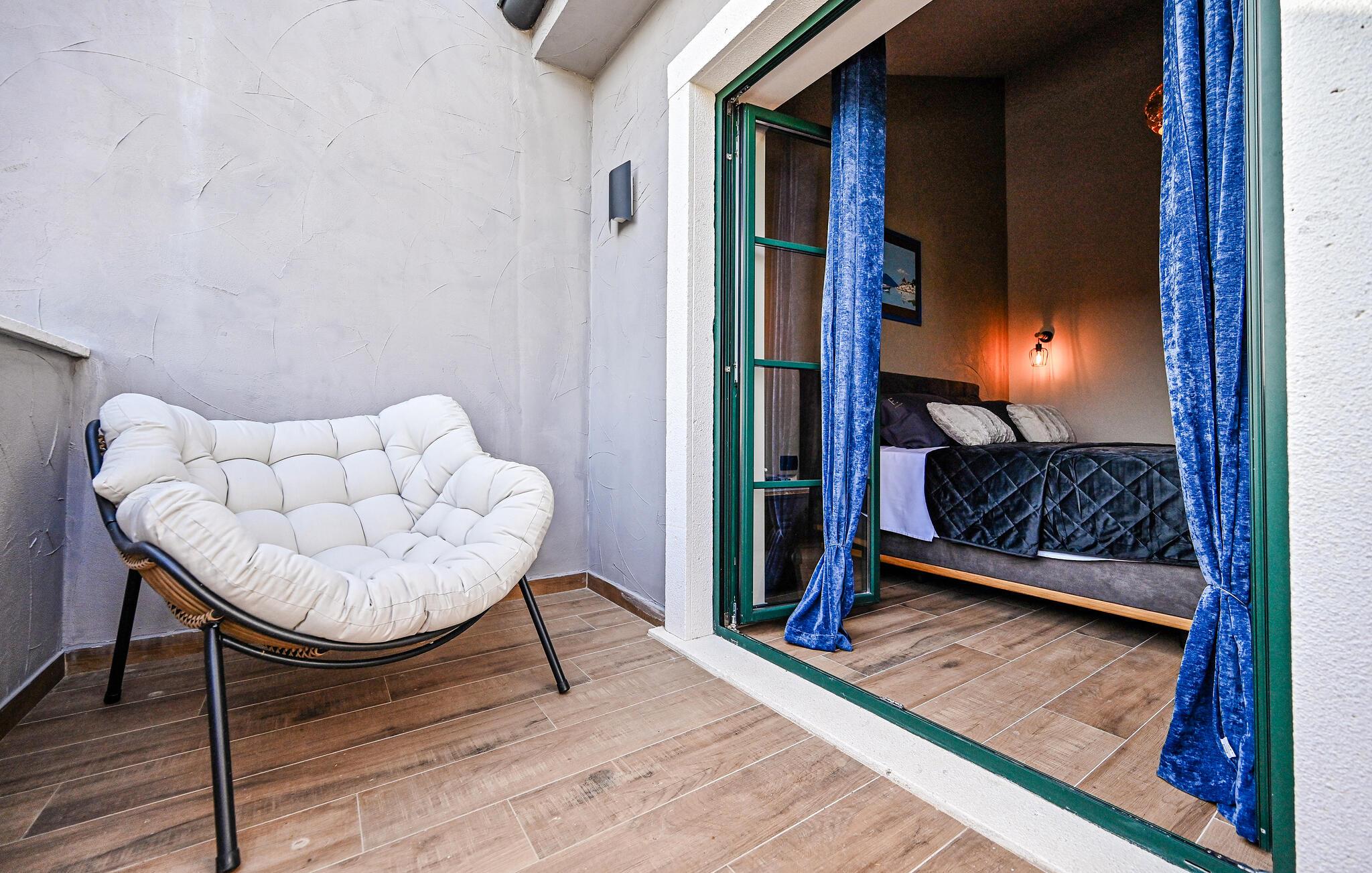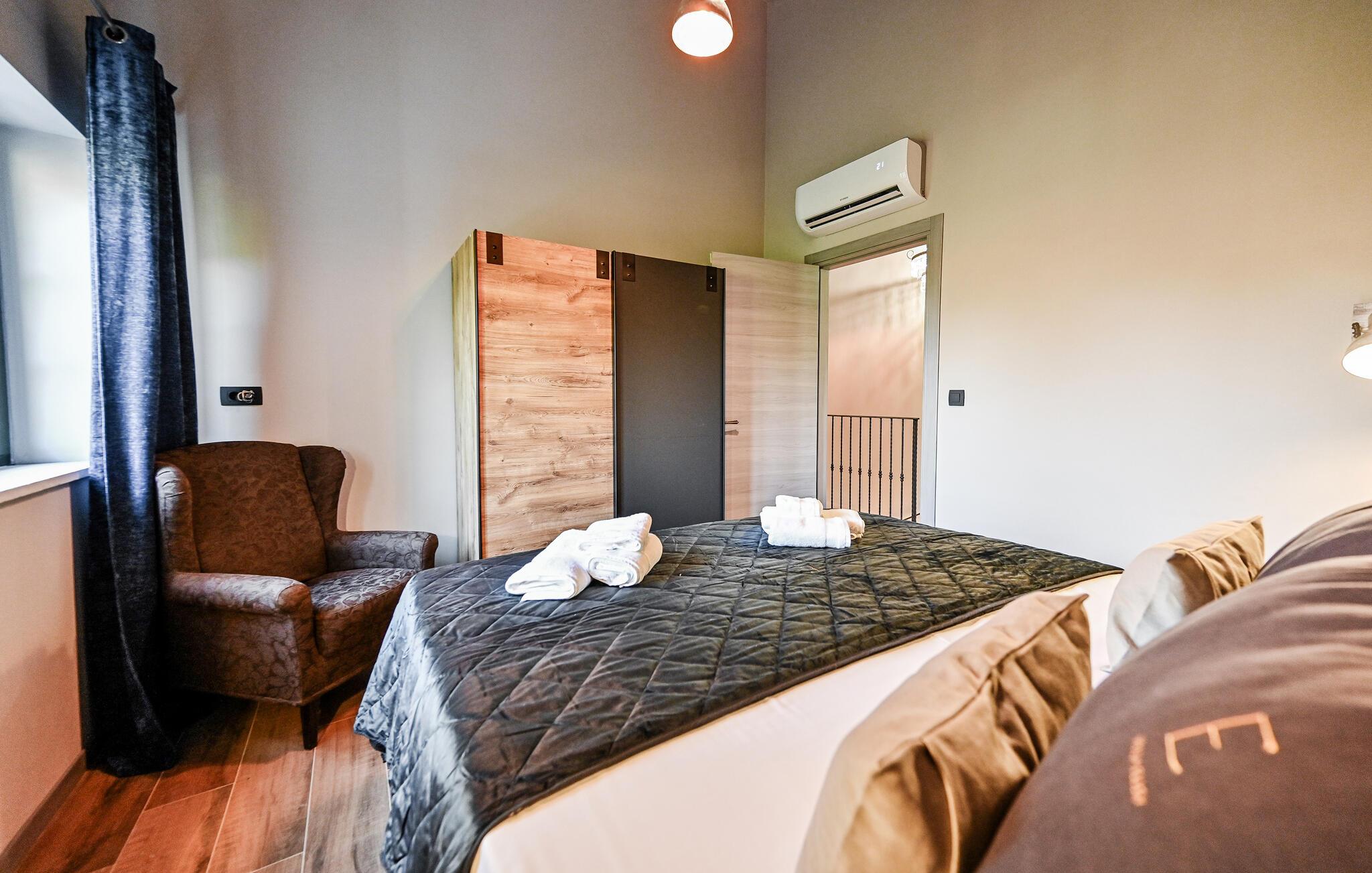 Huset ligger kun få minutters kørsel fra de nærmeste strande, og i samme bygning ligger et andet feriehus, som kan bookes, hvis I ønsker at rejse som en større gruppe, uden at give køb på privatlivets fred. Indretningen er virkelig fin og skaber en nærmest hjemlig atmosfære med masser af fred og ro. På første sal ligger de komfortable soveværelser, og i stueetagen ligger opholdsrummene, hvor der er lagt op til klassisk feriehygge med madlavning, fælles måltider og afslapning i sofaen.
