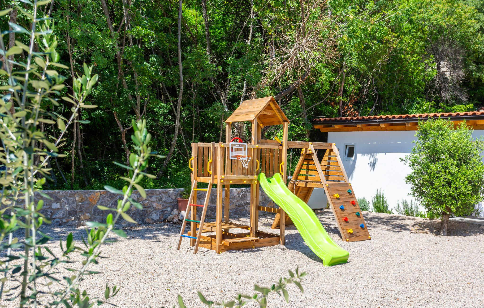 Udearealet er virkelig lækkert, og her kommer I til at bruge mange timer, når vejret er godt. For børnene er haven et rent slaraffenland af legetøj, og her er også gode muligheder for at dyrke sport af forskellig art, inden I køler jer af i poolen. Rund aftenen af på terrassen med saftige bøffer fra grillen, inden I sætter jer ned i spabadet og lægger planer for de kommende dage under stjernerne.