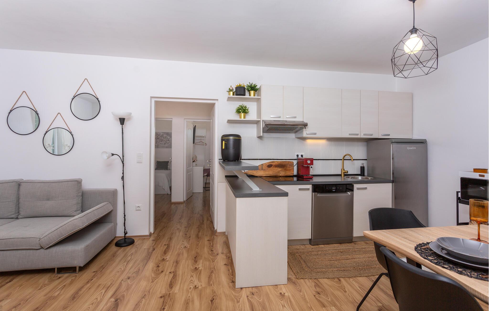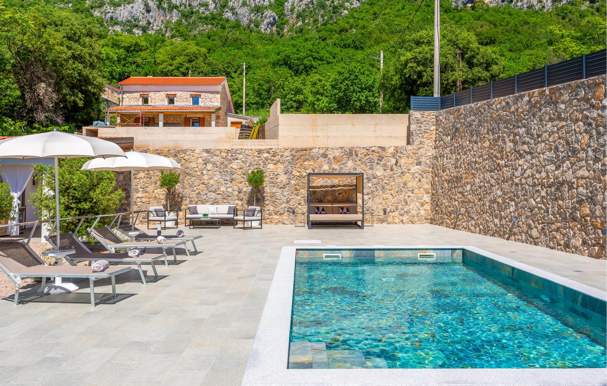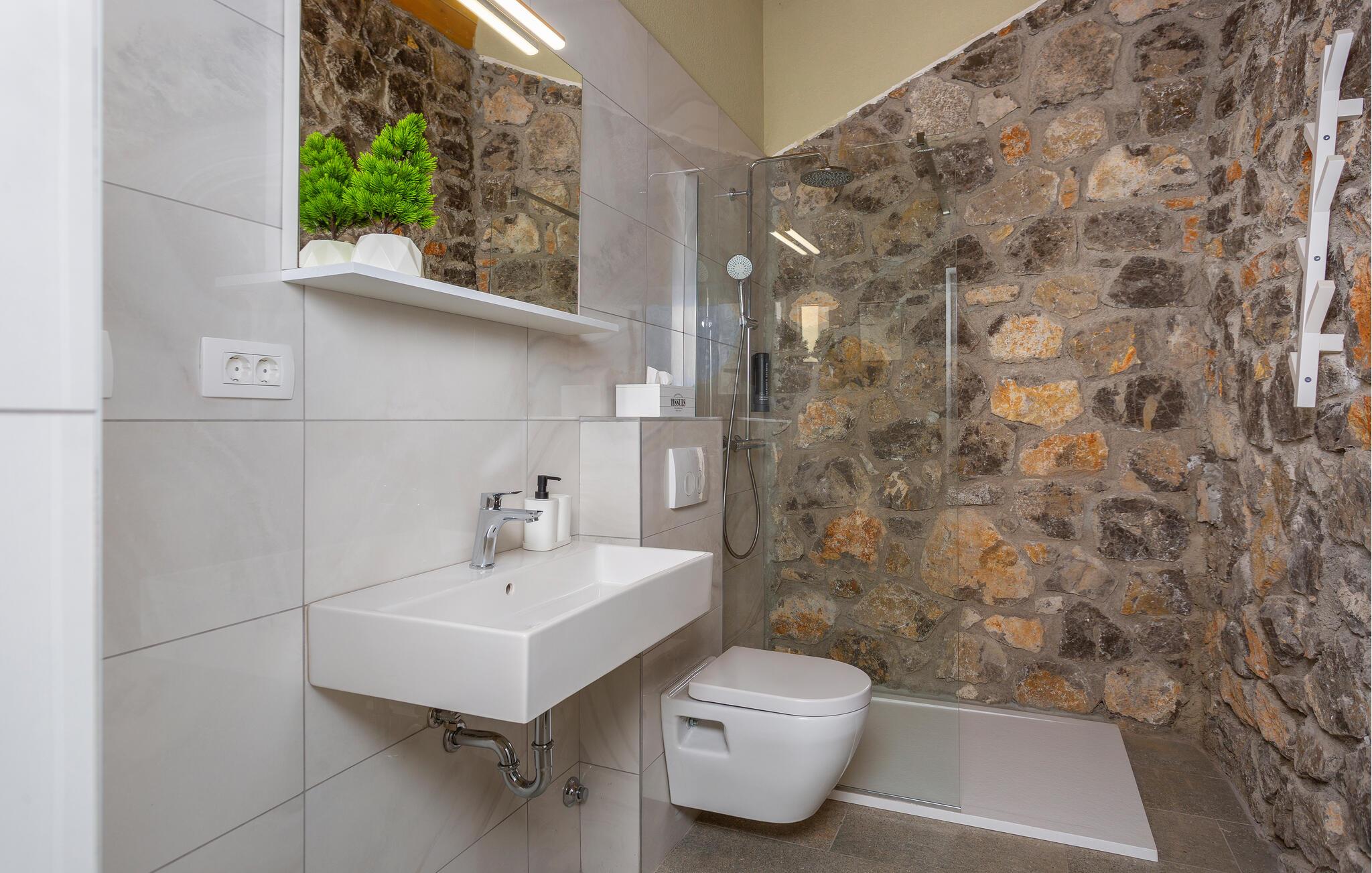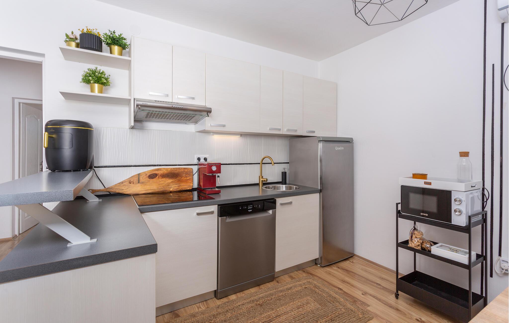 Tag familien under armen og rejs til Bribir, der ligger tæt på kysten, og hvor der venter jer et herligt ophold i dette lækre stenhus. Indretningen fremtræder både varmt og indbydende med mange gode faciliteter, der gør det nemt at slappe af og hvile stængerne efter en aktiv feriedag. Tag jer god tid til madlavningen og servér familiens livretter ved spisebordet, inden I rykker over i sofaen og runder aftenen af med snacks og en god film på tv'et.