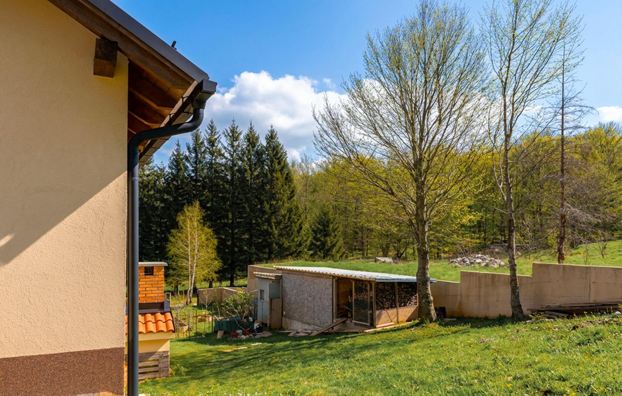 Nyd en fredelig ferie i dette feriehus med udsigt over bjergene.