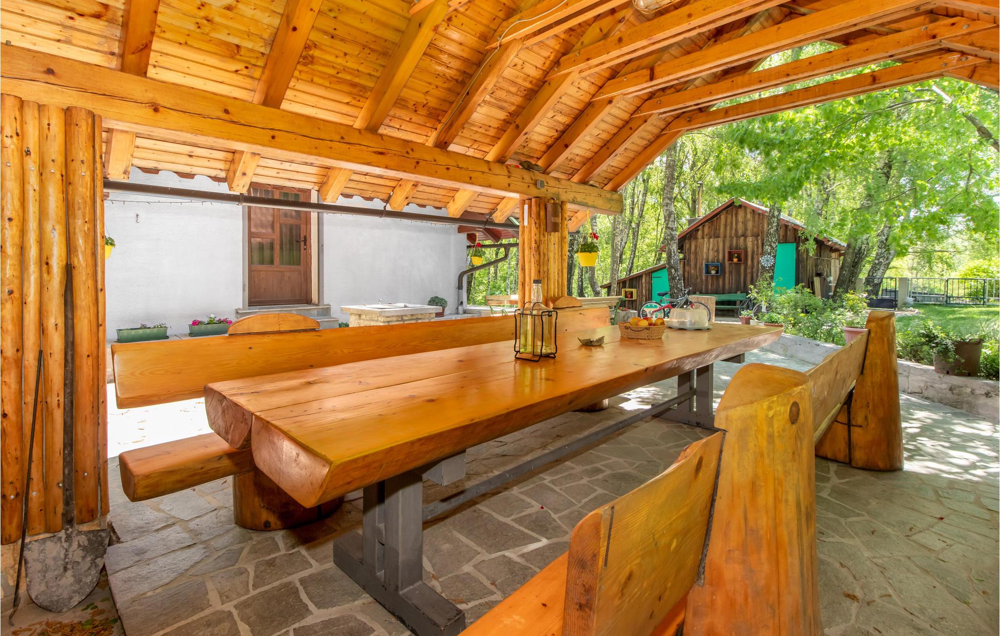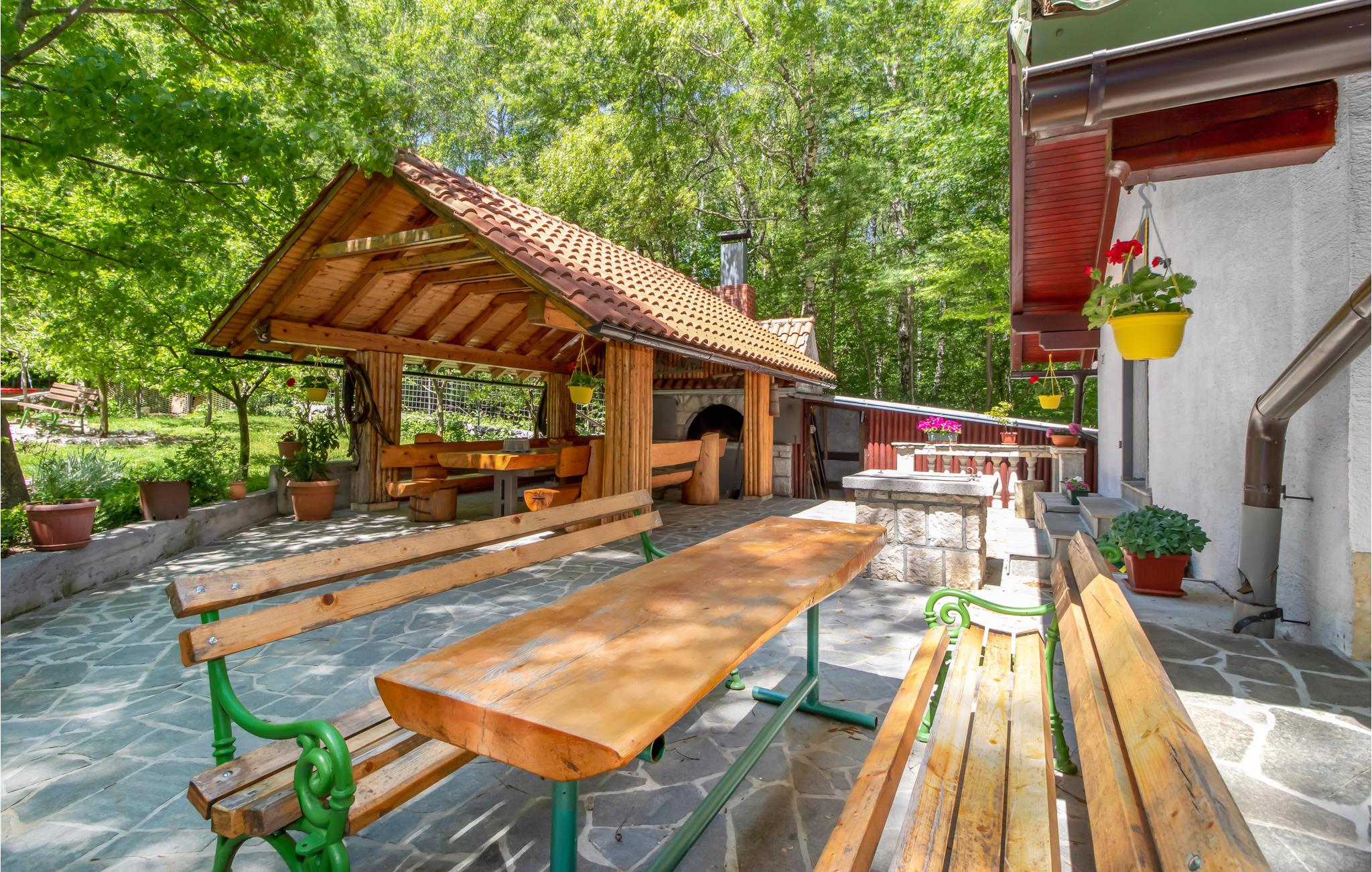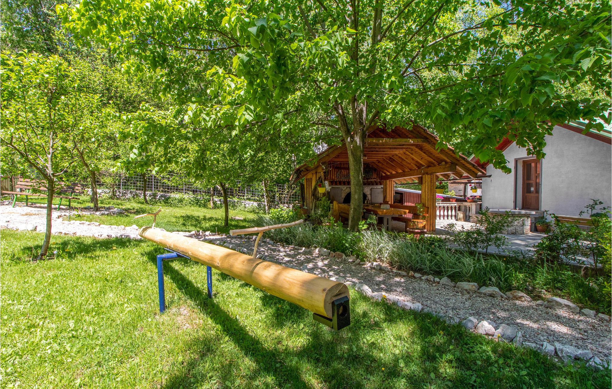 Kom til dette rummelige hus på en stor ejendom, der er en sand oase af fred og ro. Her kan I undslippe hverdagens travlhed og tilbringe en vidunderlig hyggelig tid sammen. Det er ikke kun indenfor, feriehuset byder på et højt niveau af komfort, for også udenfor finder I mange dejlige siddepladser, hvor I kan hygge jer med hele familien. De mange legepladsredskaber, boblebadet og den store overdækkede veranda sikrer utallige hyggelige timer udendørs. Om aftenen kan I lave lækre sommerretter på den traditionelle stengrill.