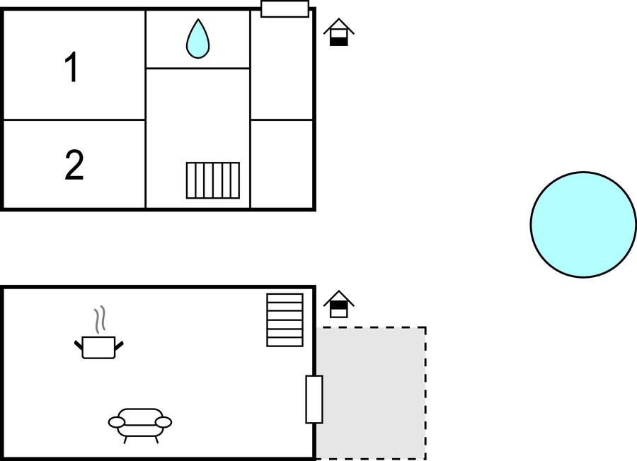 Opholdsstue/køkken 50m2 - 2 Sovepladser. (Sofa, madras eller lignende).