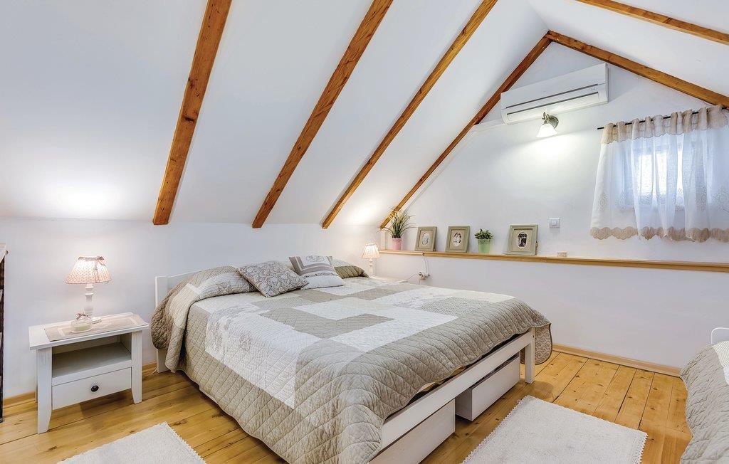 Dette feriehus ligger i det ringe beboede og rolige bagland ved Bribir som er meget populært blandt alle der holder af natur. I stueplan ligger køkkenet i åben forbindelse med stuen, hvor en indre trappe fører op til den rummelige hems med sovemulighed (laveste loftshøjde i siden 100 cm). Over en separat indgang kommer I til sommerkøkkene, hvor der også er grill og samt badeværelse. Dette feriehus er meget charmerende indrettet, med kærlighed helt ned i de små detaljer. Nyd naturen, som vil gøre både krop og sjæl godt eller hop en tur i whirlpoolen og lad de ømme muskler massere af tusinder af bobler. I Novi Vinodolski (22 km) er der skønne kyster og romantiske strande, som sikkert vil fortrylle jer.