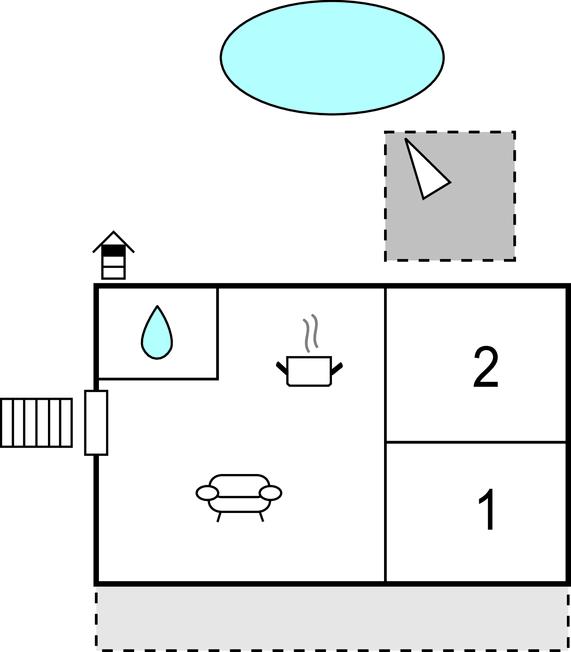 Huset ligger på en stejl skråning. Den laveste loftshøjde er 120 cm. Ved siden af ??poolen er der en overdækket terrasse med grill og havemøbler. Her kan I nyde de milde sommeraftener, mens I tilbereder lækre ferieretter, drikker vin eller planlægger næste dags udflugter.