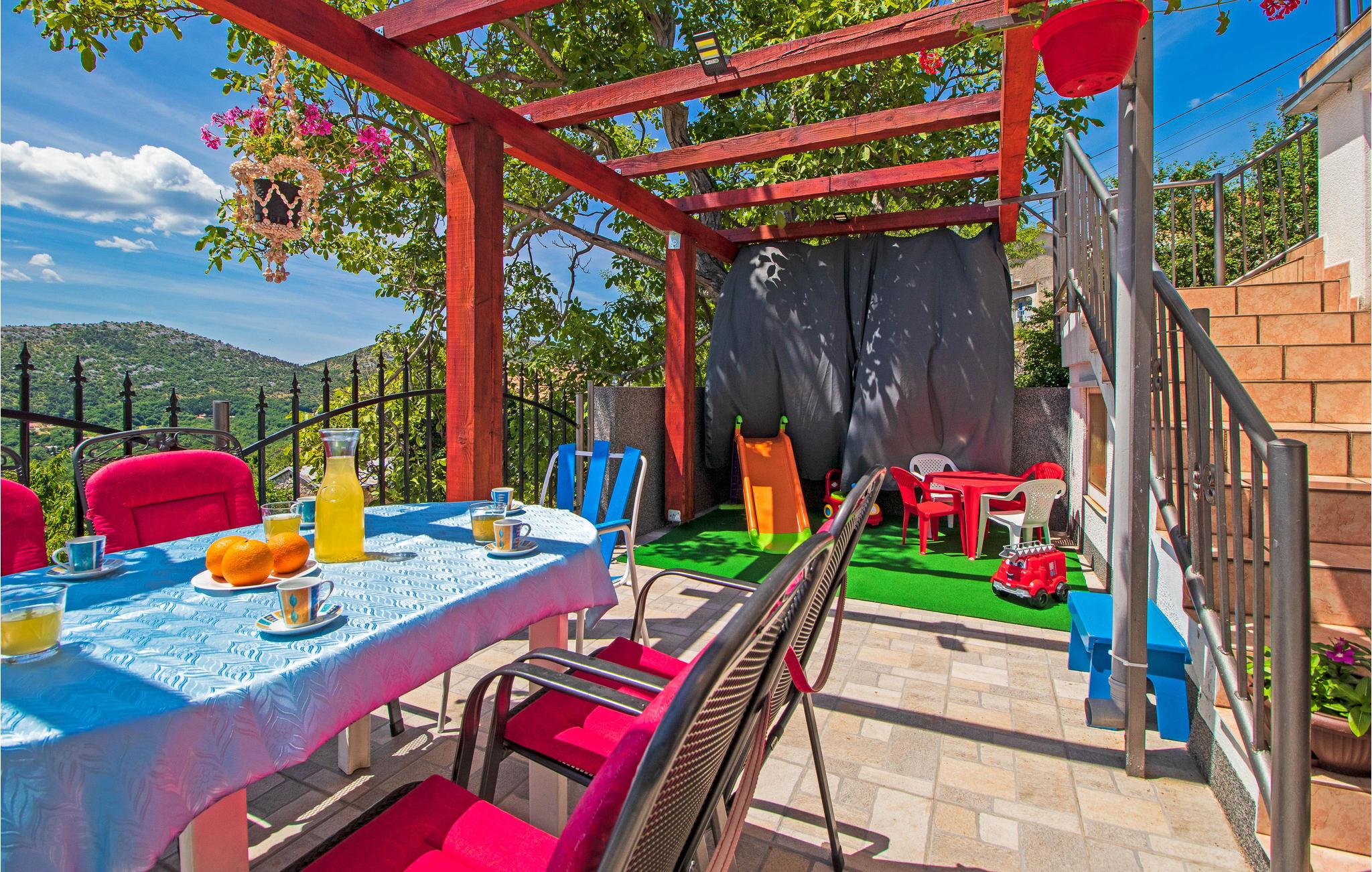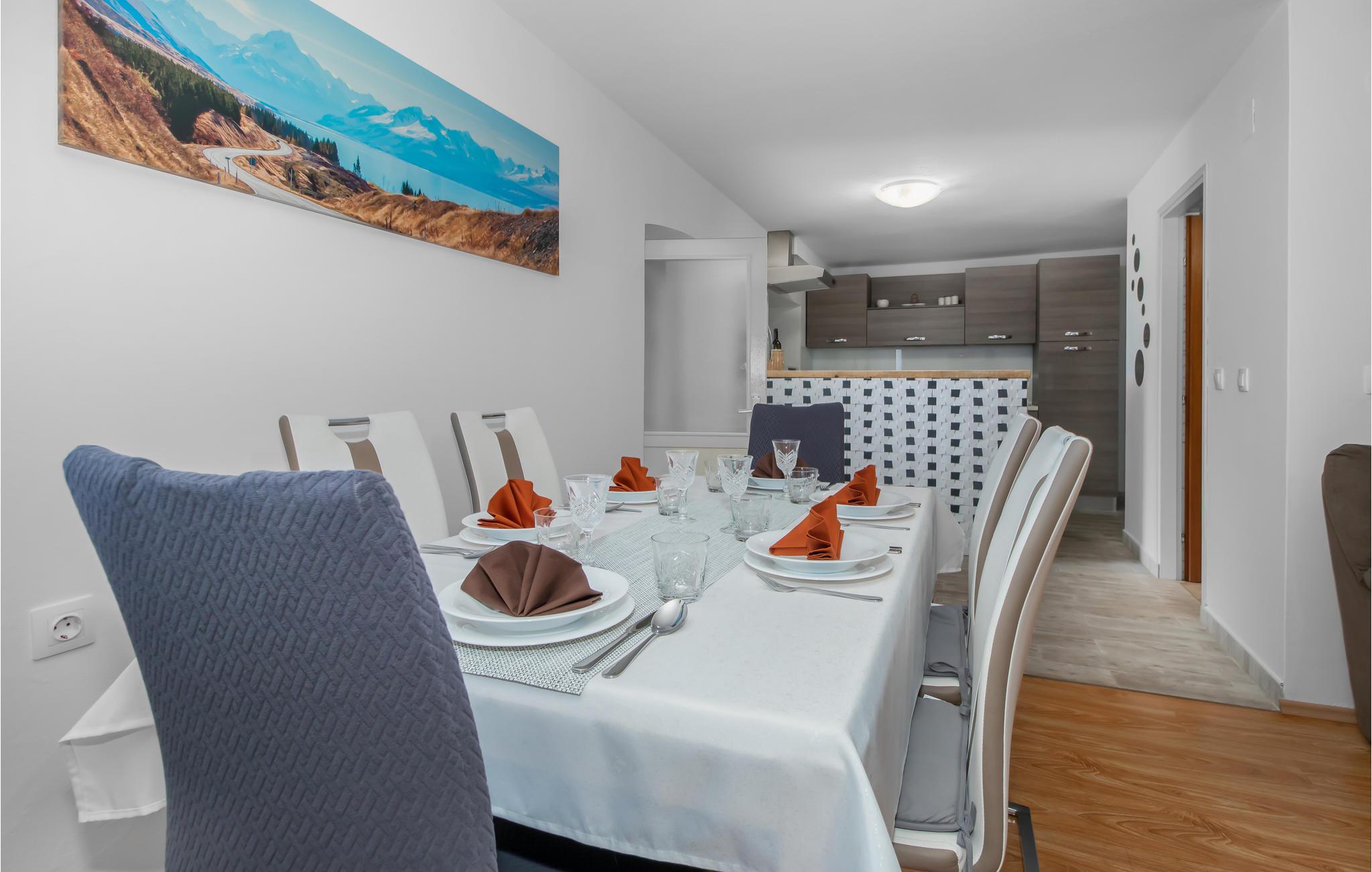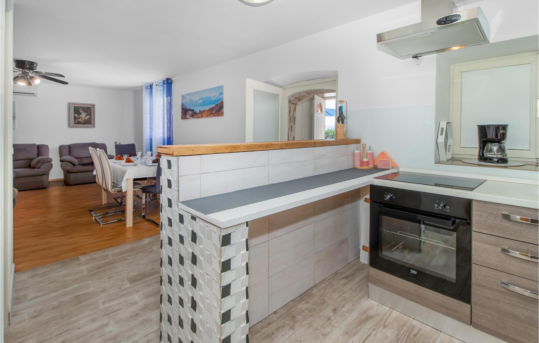 Dette feriehus ligger i oplandet til Novi Vinodolski. Det består af tre soveværelser, køkken og stue og to badeværelser. Alle etager har egen indgangsdør, og soveområdet ligger også for sig selv.