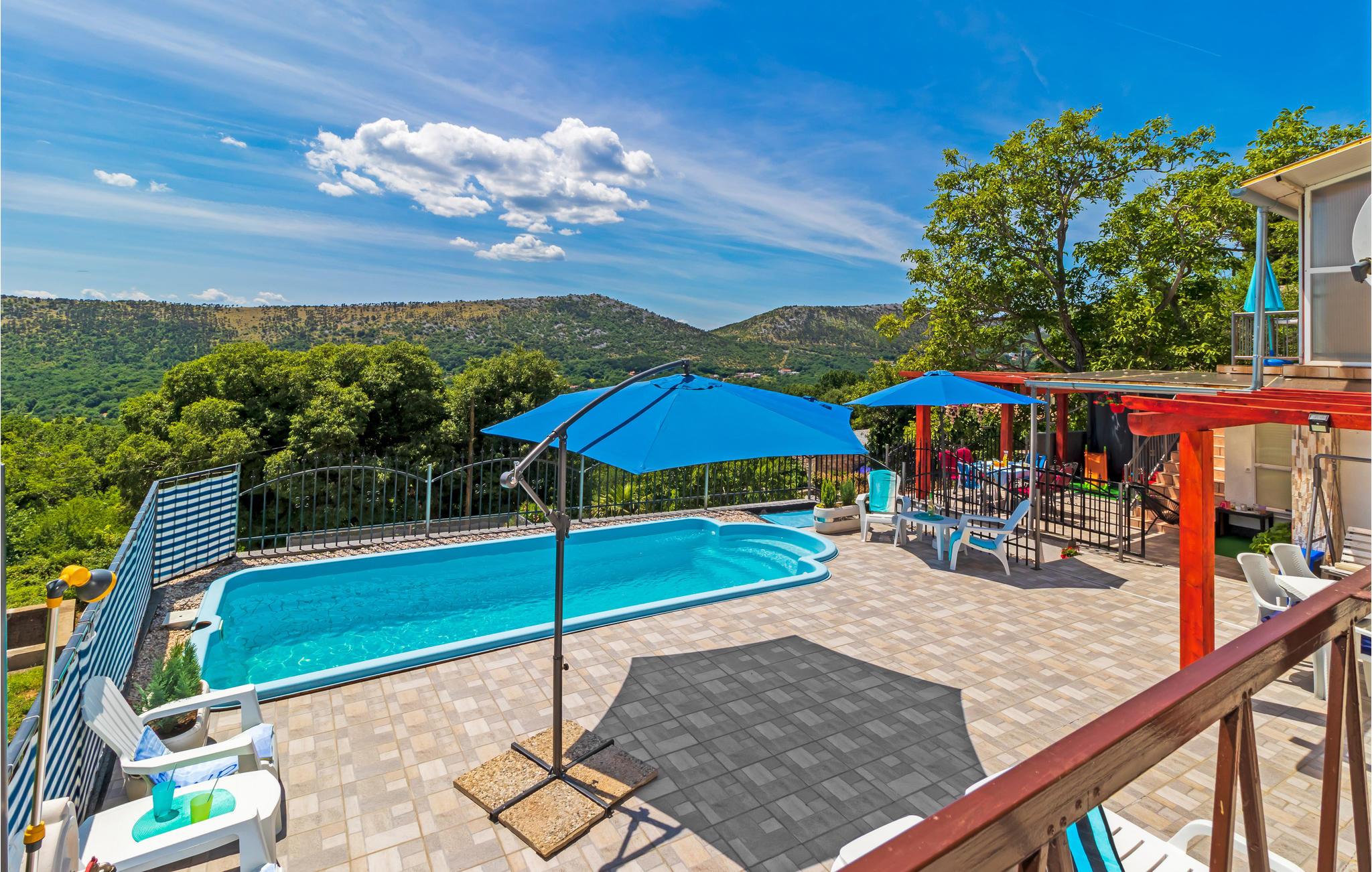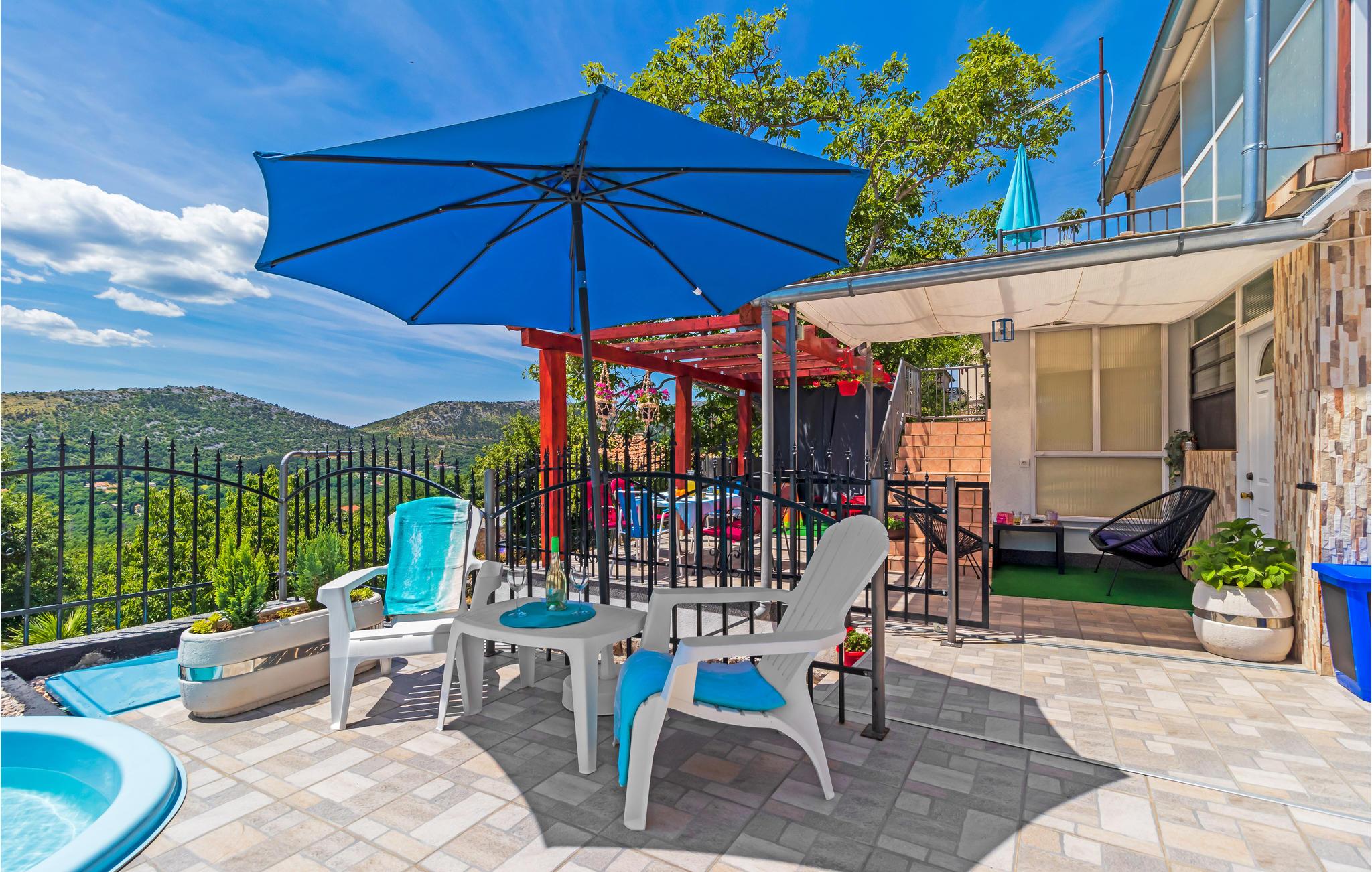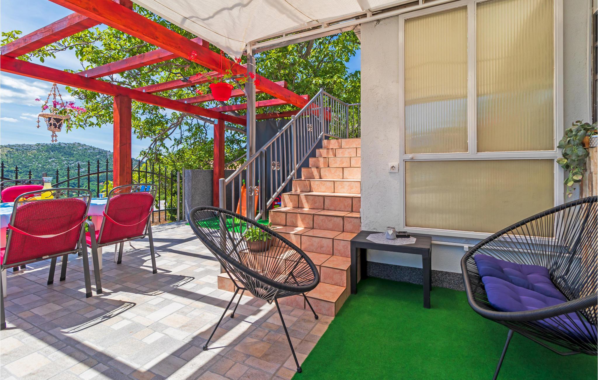 Dette feriehus ligger i oplandet til Novi Vinodolski. Det består af tre soveværelser, køkken og stue og to badeværelser. Alle etager har egen indgangsdør, og soveområdet ligger også for sig selv.