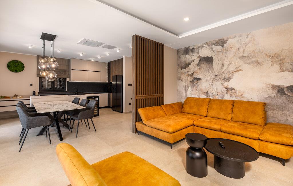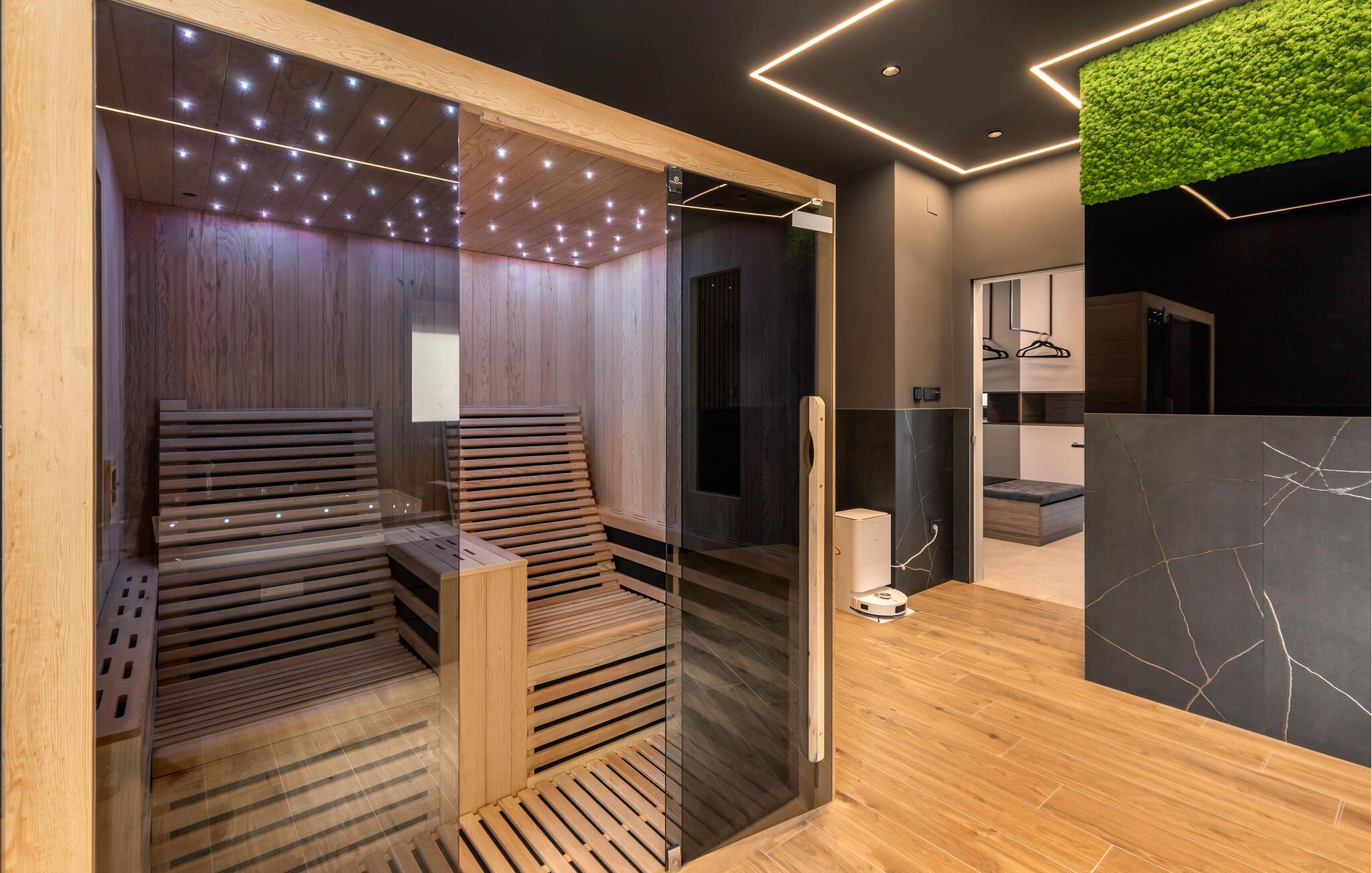 I vil føle jer helt hjemme i denne moderne villa, hvor I kan fokusere udelukkende på jeres krop og jeres sind. Det elegante, smagfuldt indrettede interiør udstråler ro - nyd lækre måltider ved det stilfuldt oplyste spisebord og forkæl jer selv i spabadet eller saunaen. Læn jer tilbage i den rummelige sofagruppe, stream en film eller spil PlayStation med jeres børn.