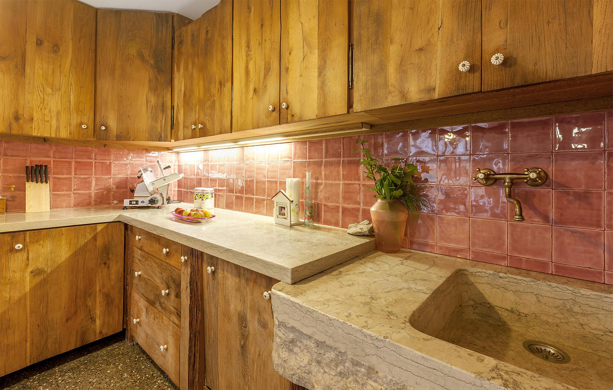 Velkommen til dette rummelige og virkelig dejlige hus med panoramaudsigt, hvor I som udvidet familie får den ideelle base til årets ferie. Huset er yderst flot indrettet med et gennemtænkt mix af det rustikke og det moderne, og med sit klassiske møblement og behagelige farveskalaer får I her en oase, hvor I kan hygge jer med tingene og komme ned i et dejligt ferietempo. Køkkenet er stort og veludstyret, så I kan roligt gøre madlavningen til et sjovt fællesprojekt, inden der dækkes op til den store middag ved det flotte spisebord af træ.
