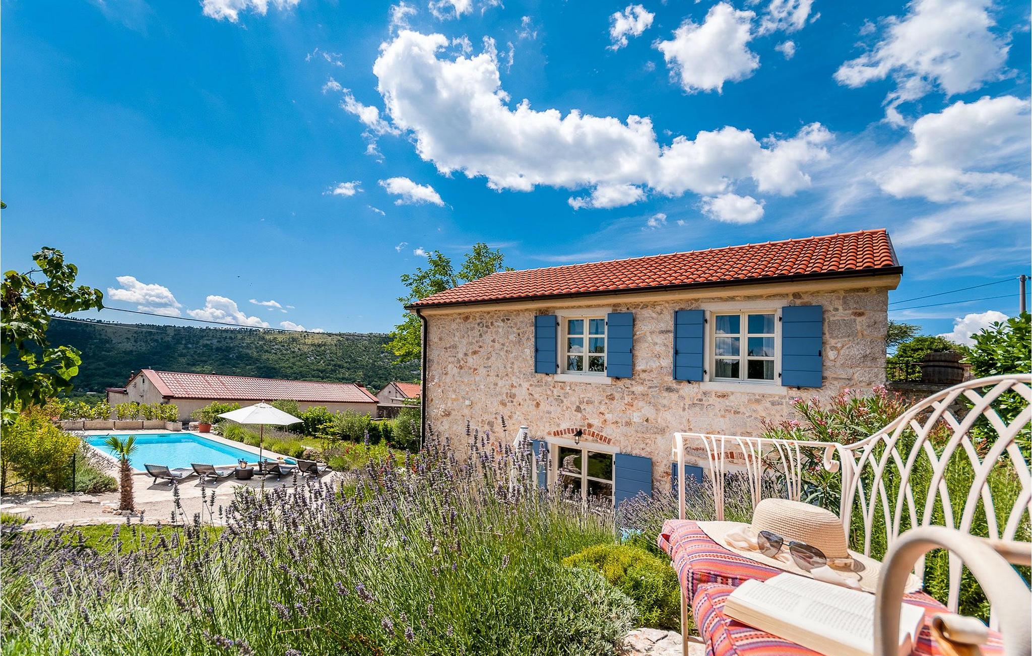 Denne villa giver dig mulighed for at nyde en fantastisk udsigt over den omkringliggende bjergskråning af Velebit-bjerget og dens uberørte natur direkte fra poolen , eller at tilbringe en aften ved siden af pejsen med venner og familie.