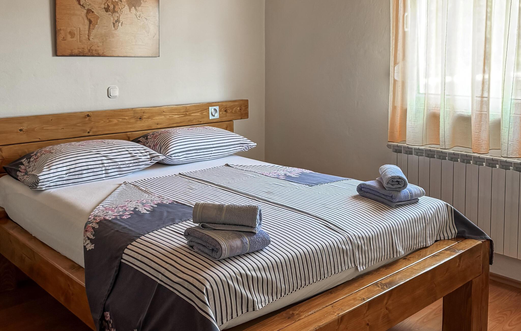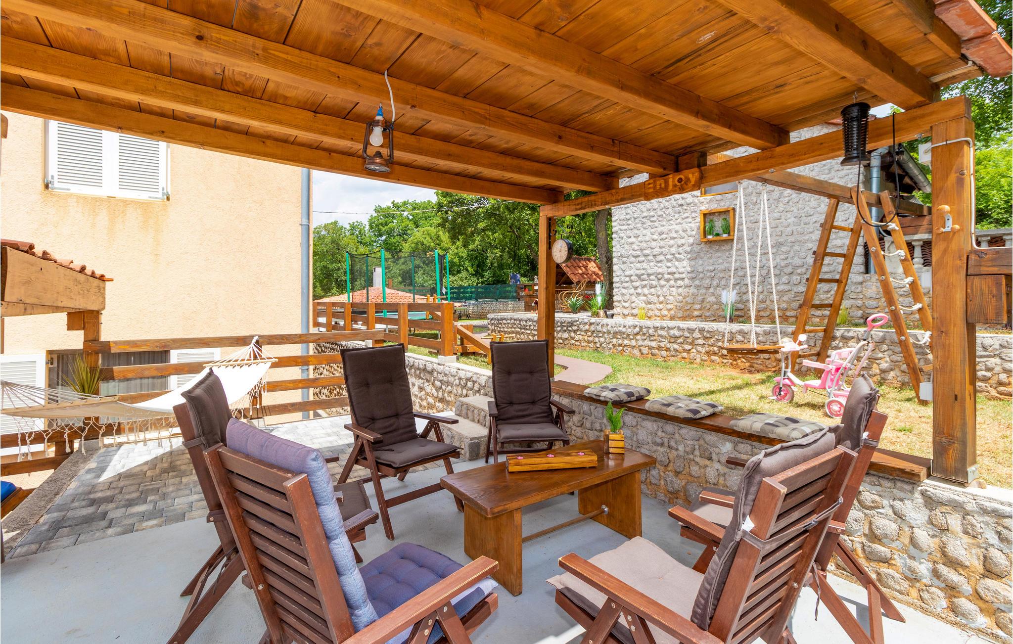 I den rolige landsby Donji Zagon i nærheden af Novi Vindoloski, ligger dette feriehus fordelt på tre niveauer, forbundet via udendørstrapper og med hver deres indgang. Indretningen er enkel og traditionel.