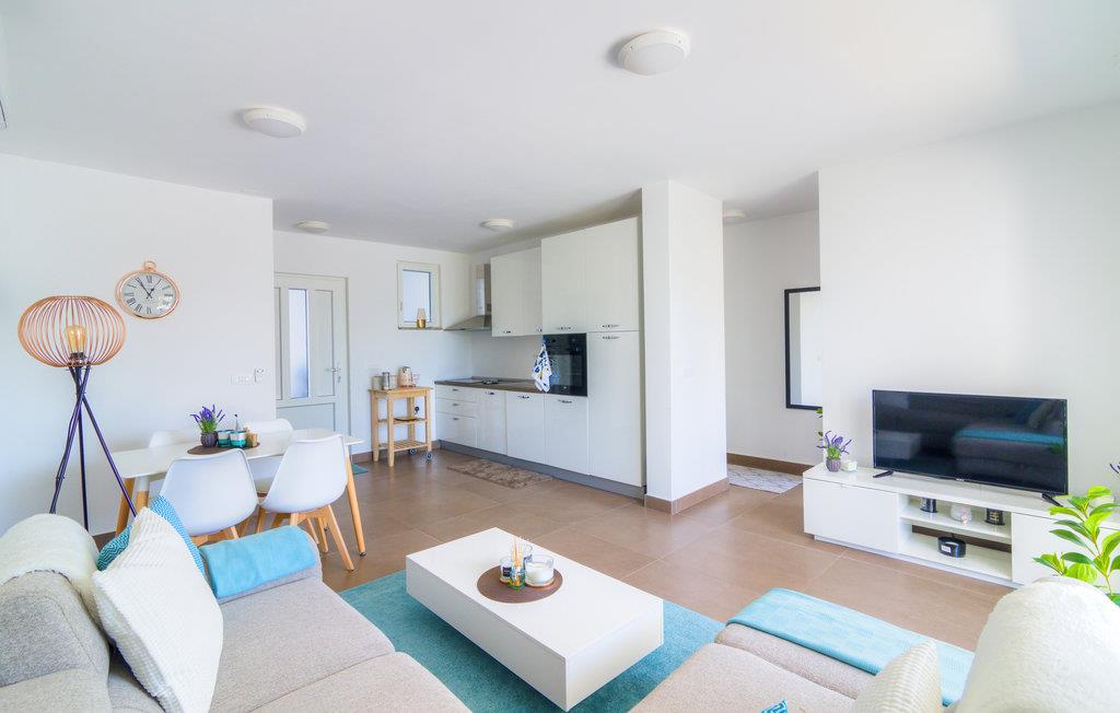 Glæd jer til en vidunderlig sol- og badeferie med base i denne yderst komfortable, lyse og rummelige ferielejlighed med havudsigt. Start dagen med kaffe og morgenmad på terrassen og vælg derefter mellem at tilbringe et par skønne timer ved den private pool eller stenstranden med krystalklart badevand.
