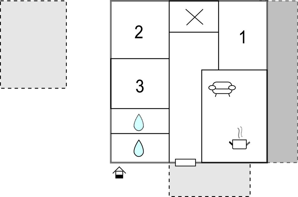Badeværelse 4m2 (nr. 1) - WC. Varmt og koldt vand. Bruser