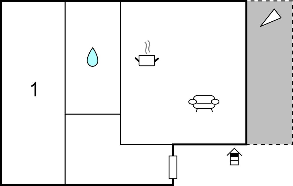 Opholdsstue/køkken 22m2 - 1 Soveplads. (Sofa, madras eller lignende).