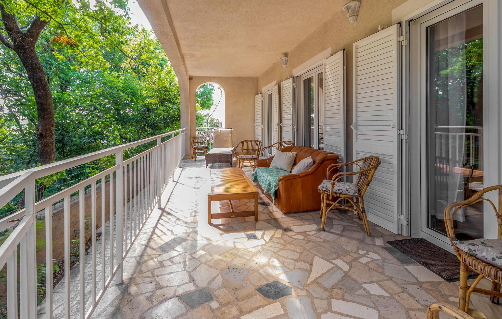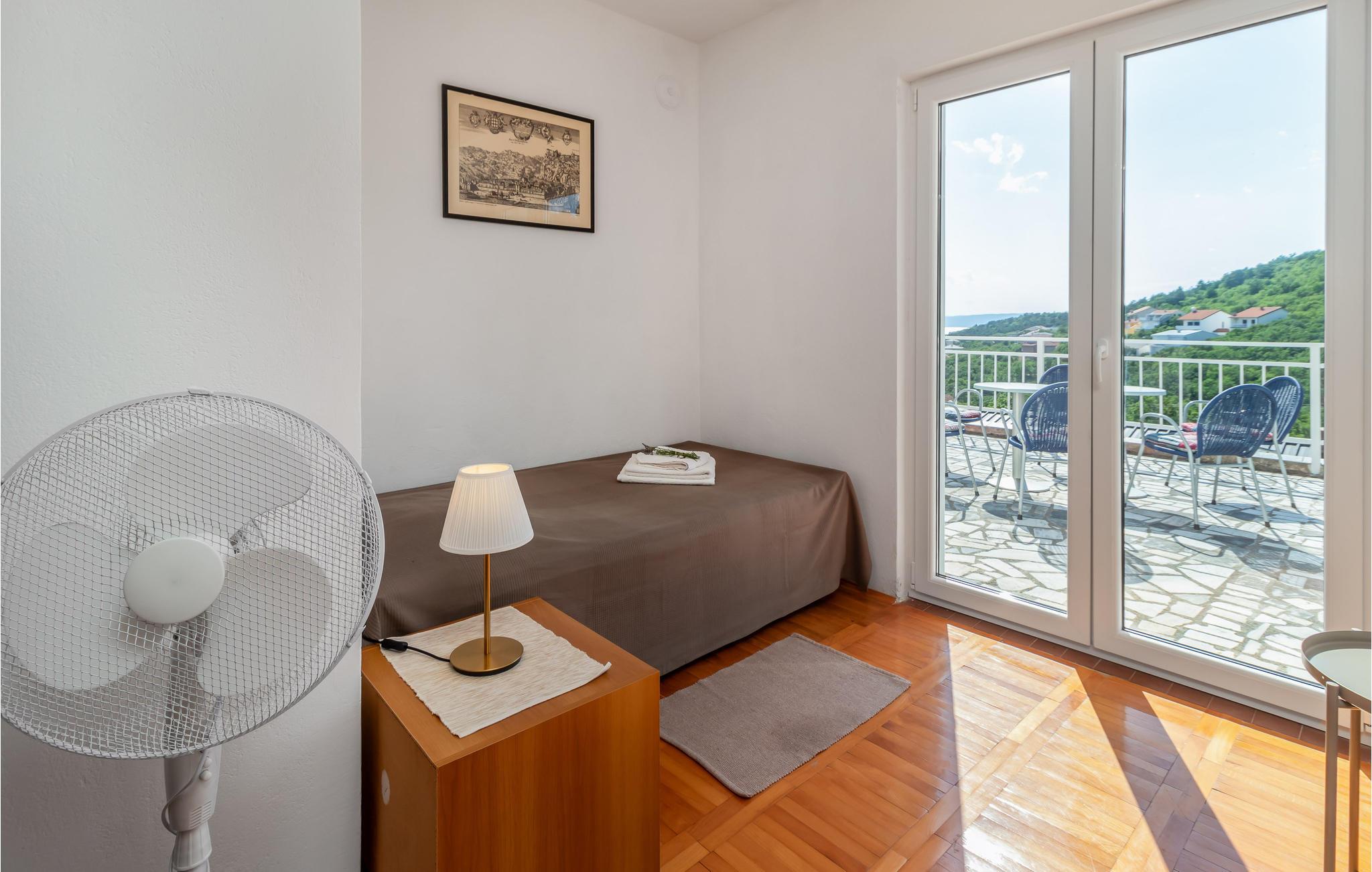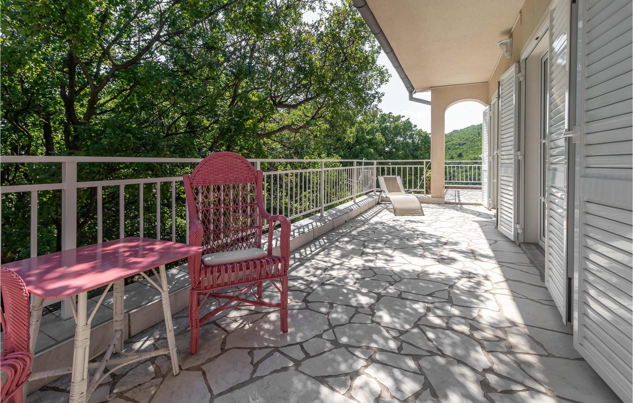 Povile er en lille by nær Novi Vinodolski. Her ligger dette feriehus fordelt på to etager, forbundet med en udendørs trappe. I stueplan ligger en overdækket terrasse, og fra den åben altan på øverste etage er der en fortryllende udsigt over havet. I haven er der også en terrasse med grill, hvor I kan nyde at slappe af og lave nem og lækker mad over gløderne. På kun få minutters spadseretur nås den skønne strand i Povile. Den venlige og hjælpsomme ejer bor ikke langt fra feriehuset.