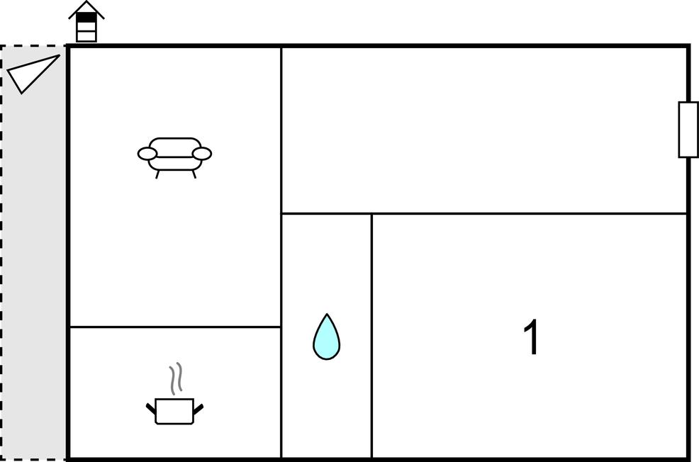 Opholdsstue/køkken - 2 Sovepladser. (Sofa, madras eller lignende).
