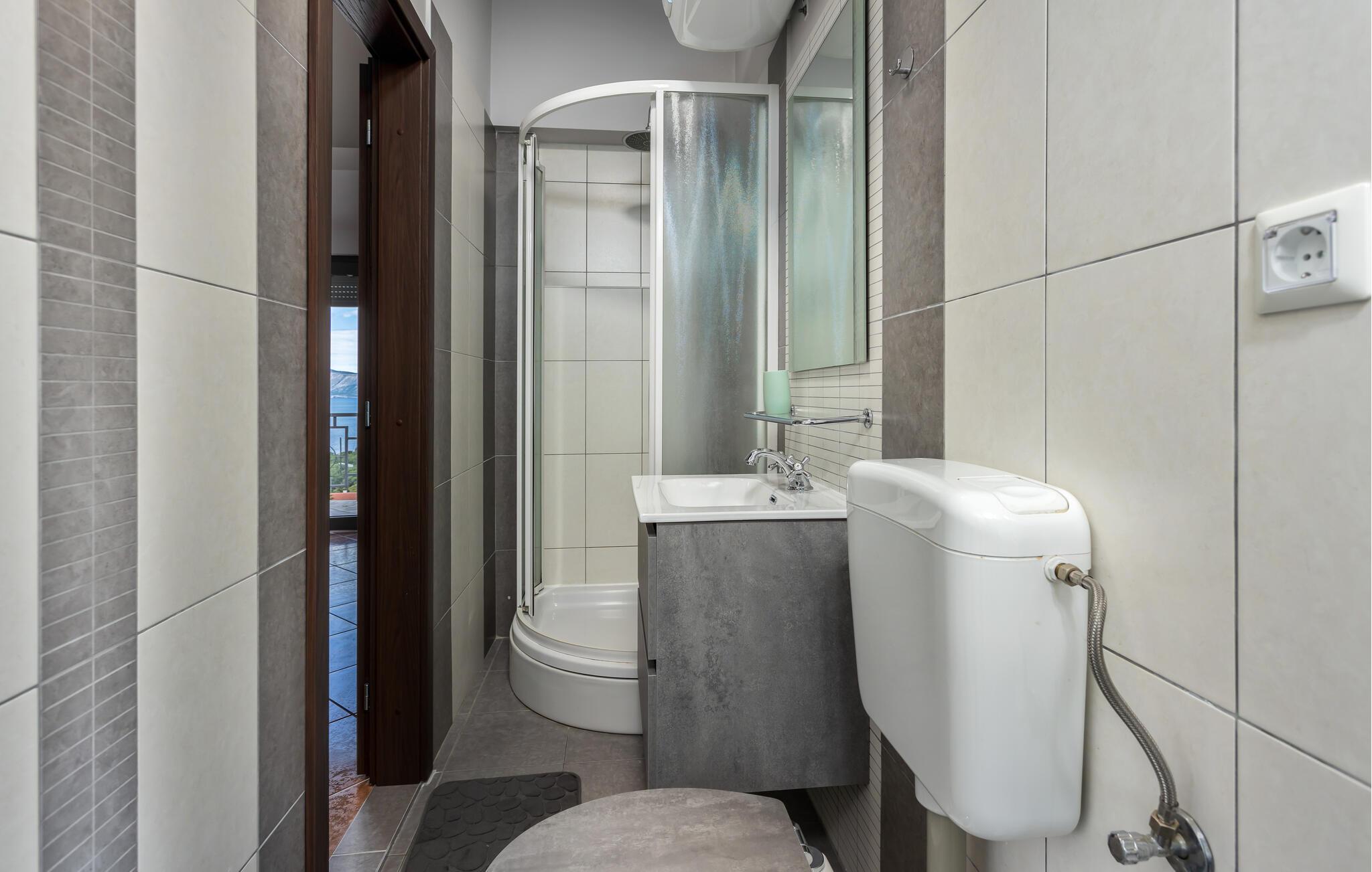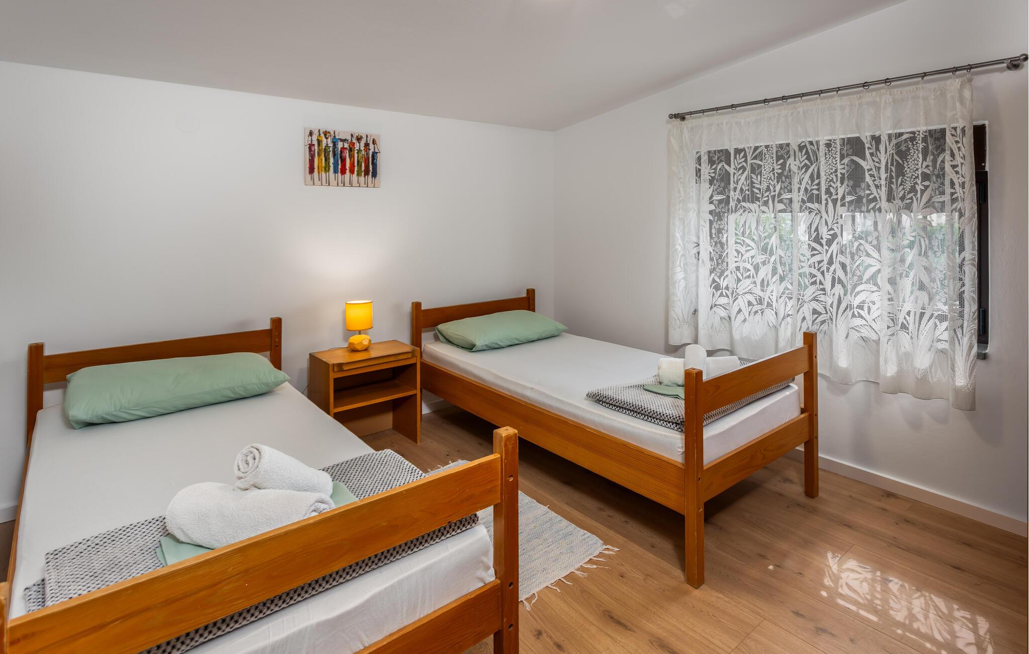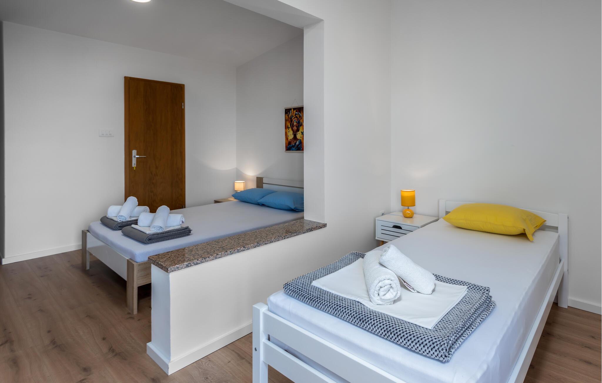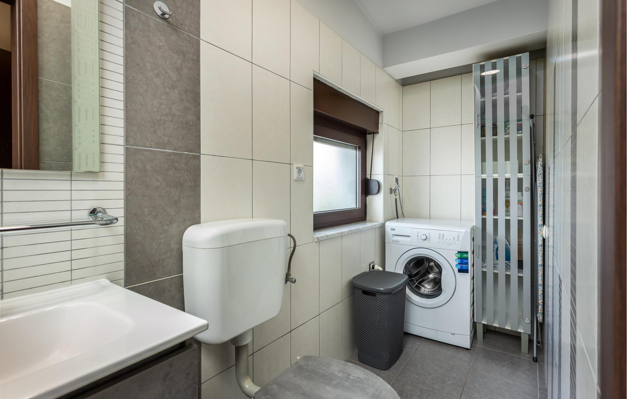 Denne rummelige ferielejlighed ligger på anden etage i et privat hus er et godt indrettet med alt, hvad I behøver for at få en behagelig ferie. Fra altanen, der går hele vejen langs husets forside, har I en flot udsigt til havet og øen Krk. Det tager få minutter at gå ind til byens centrum og lidt længere til havet. På den store lokale strand finder I aktiviteter for hele familien. I aftentimerne kan I nyde atmosfæren i den gamle by eller besøge Crikvenica. Vi anbefaler, at I tager på udflugt til øen Krk eller går på shopping i Rijeka.