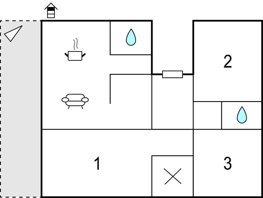 Soveværelse (nr. 1) - 1 Soveplads. (Enkeltseng(e)). 2 Sovepladser. (Dobbeltseng(e)).