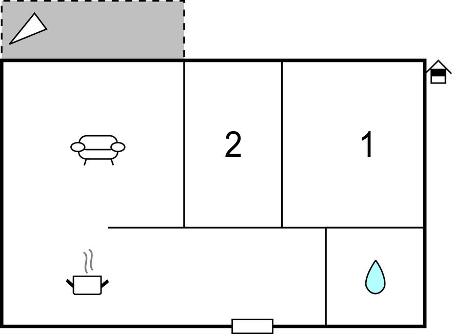 Opholdsstue/køkken - 2 Sovepladser. (Sofa, madras eller lignende).