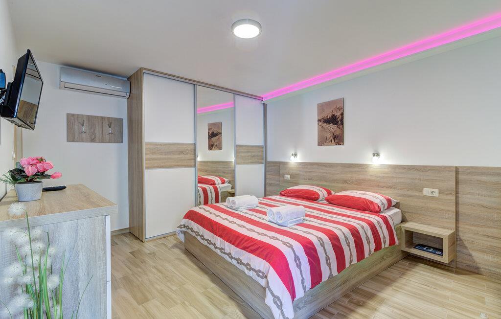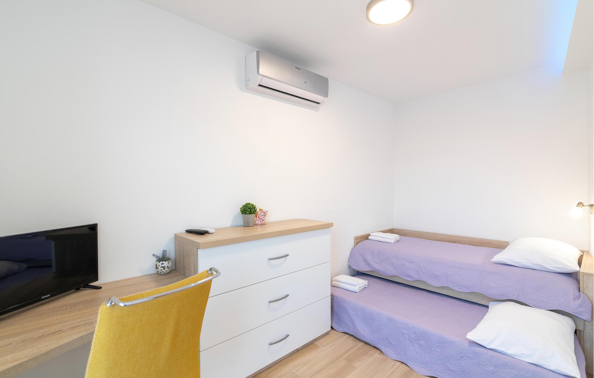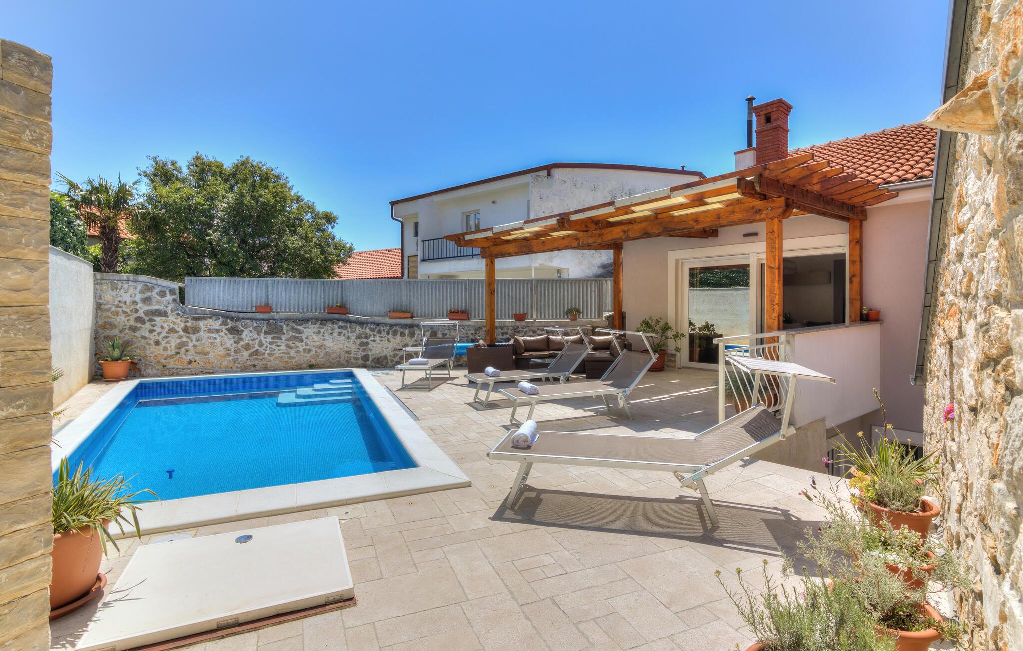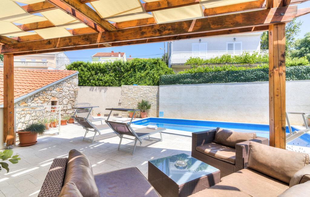 Tilbring en dejlig ferie i dette rummelige hus i Novi Vinodolski. Indretningen er meget komfortabel, og udenfor har I adgang til en swimmingpool og en solterrasse med liggestole. Tre ud af de fire soveværelser har badeværelse en suite. Poolen kan opvarmes. Huset ved siden af hovedbygningen er indrettet til et underholdnings- og aktivitetsrum. Ejeren tilbyder en gratis bådtur, og efter aftale får I også rabat på vandsportsaktiviteter på stranden i Novi Vinodolski (1/6-30/9). Vi anbefaler også at besøge Crikvenica og øen Krk.