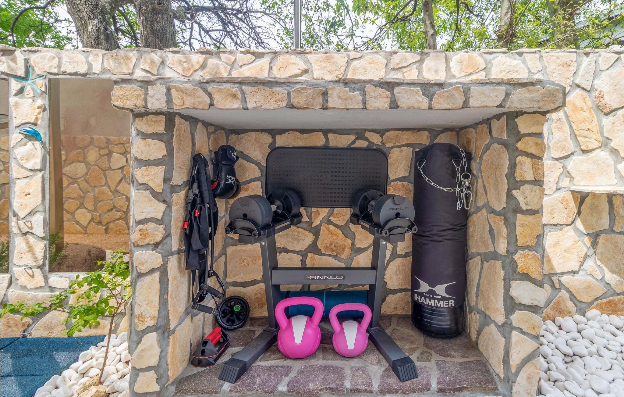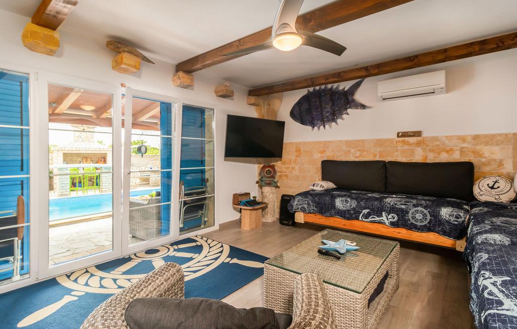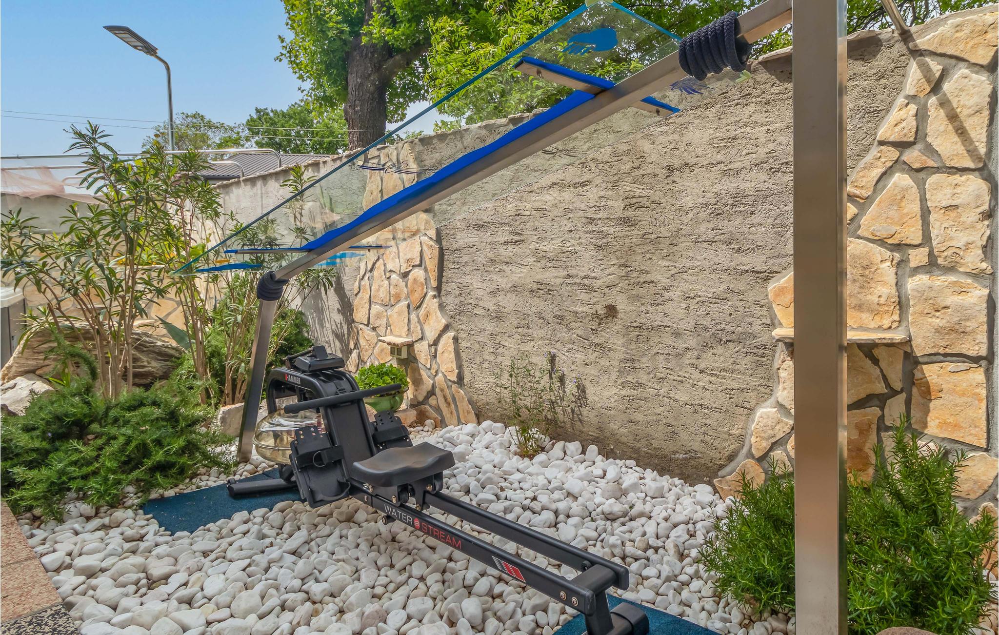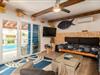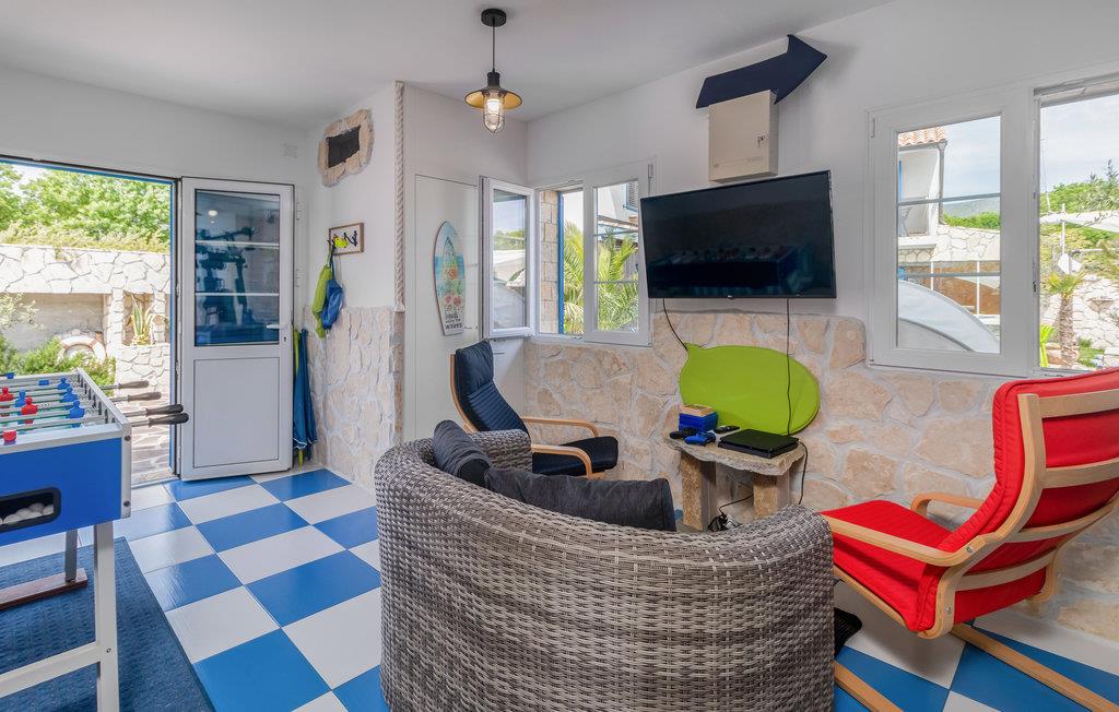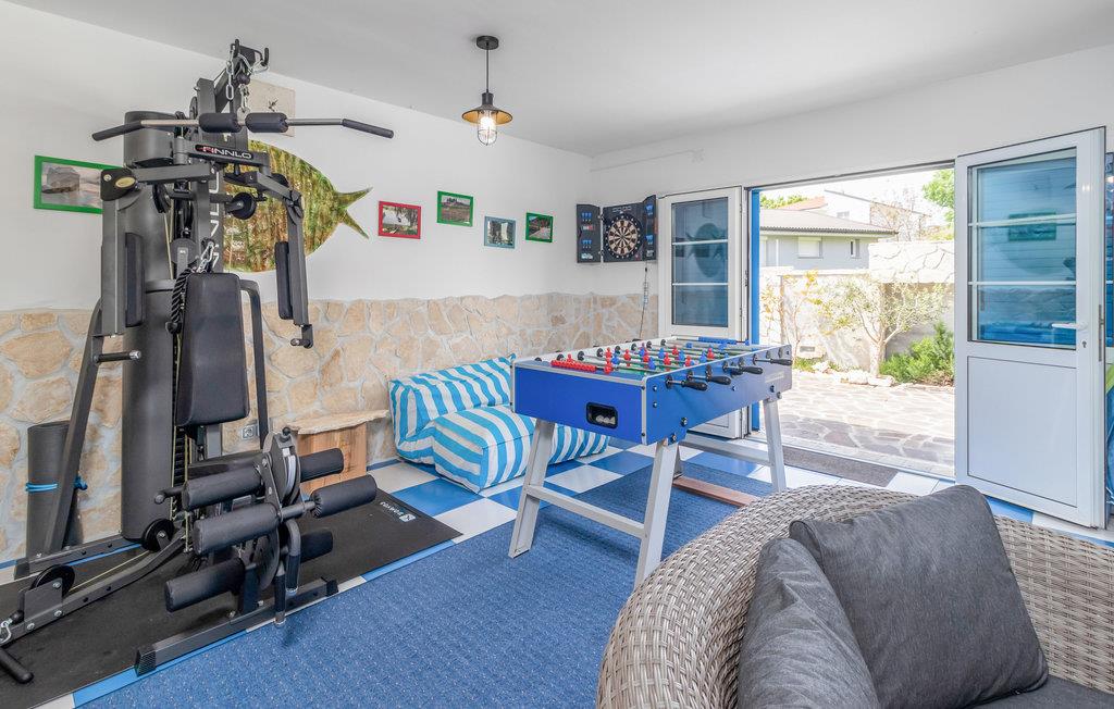Glæd jer til dette indbydende feriehus til jeres store familie. Huset er indrettet i maritim stil, som afspejles i farvesammensætningen og i de mange dekorative detaljer. I det åbne opholdsrum kan alle tale sammen, uanset om I laver mad eller leger ved spisebordet. Her skal ingen stå alene i køkkenet. I soveværelserne med private badeværelser, fordelt på to etager, finder I fred og ro og kan trække jer tilbage, når I har brug for det. Om aftenen kommer ingen til at kede sig i aktivitetsrummet, hvor I ogå kan holde konditionen ved lige. Både i huset og i haven finder I masser af sportsudstyr, der kan opmuntre jer til at træne. Dermed behøver I ikke at sætte træningsprogrammet på pause. Bagefter kan I tage et brusebad og forfriske jer i poolen, hvorfra I kan se grillmesteren tilberede aftensmaden. De små i familien vil tilbringe masser af tid på jeres helt egen legeplads, mens de større kan nyde ren afslapning i boblebadet senere på dagen.
