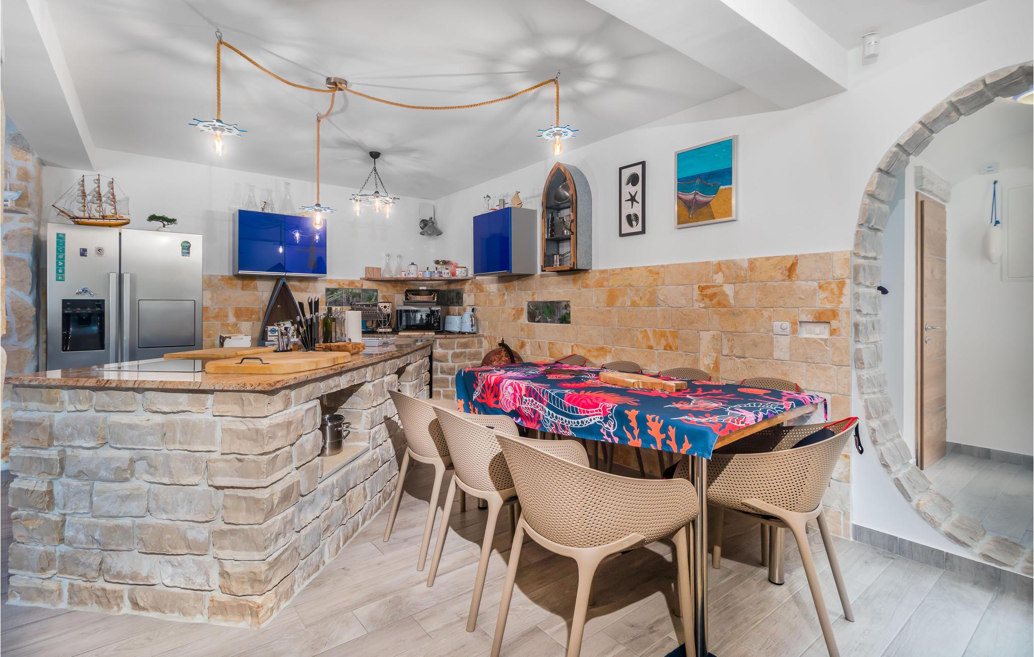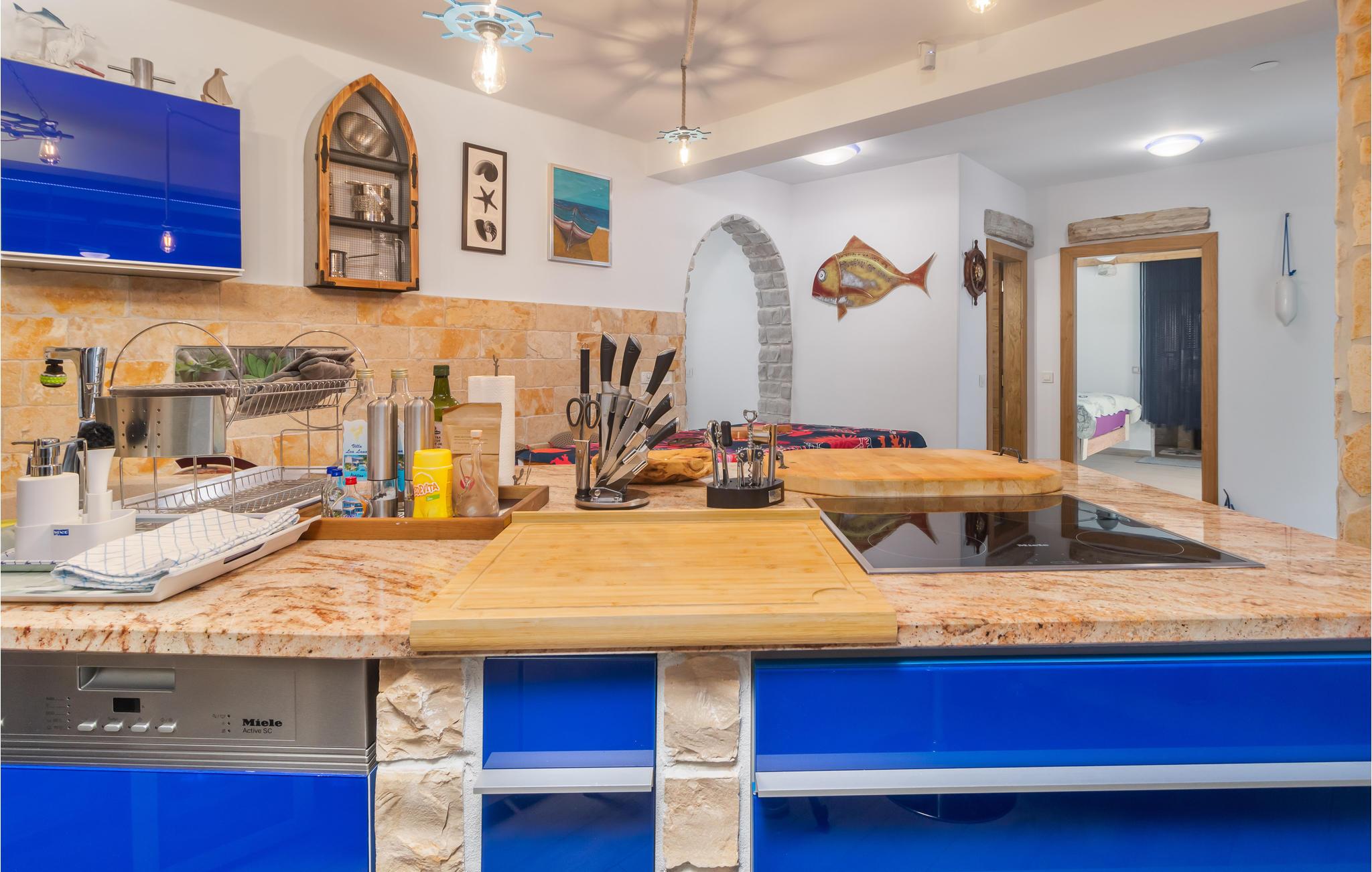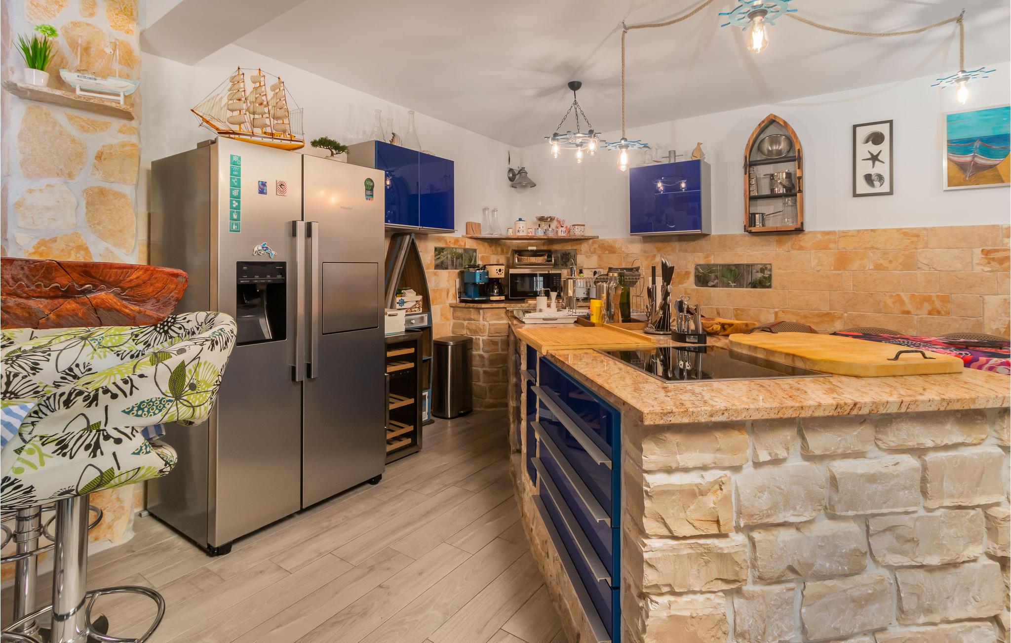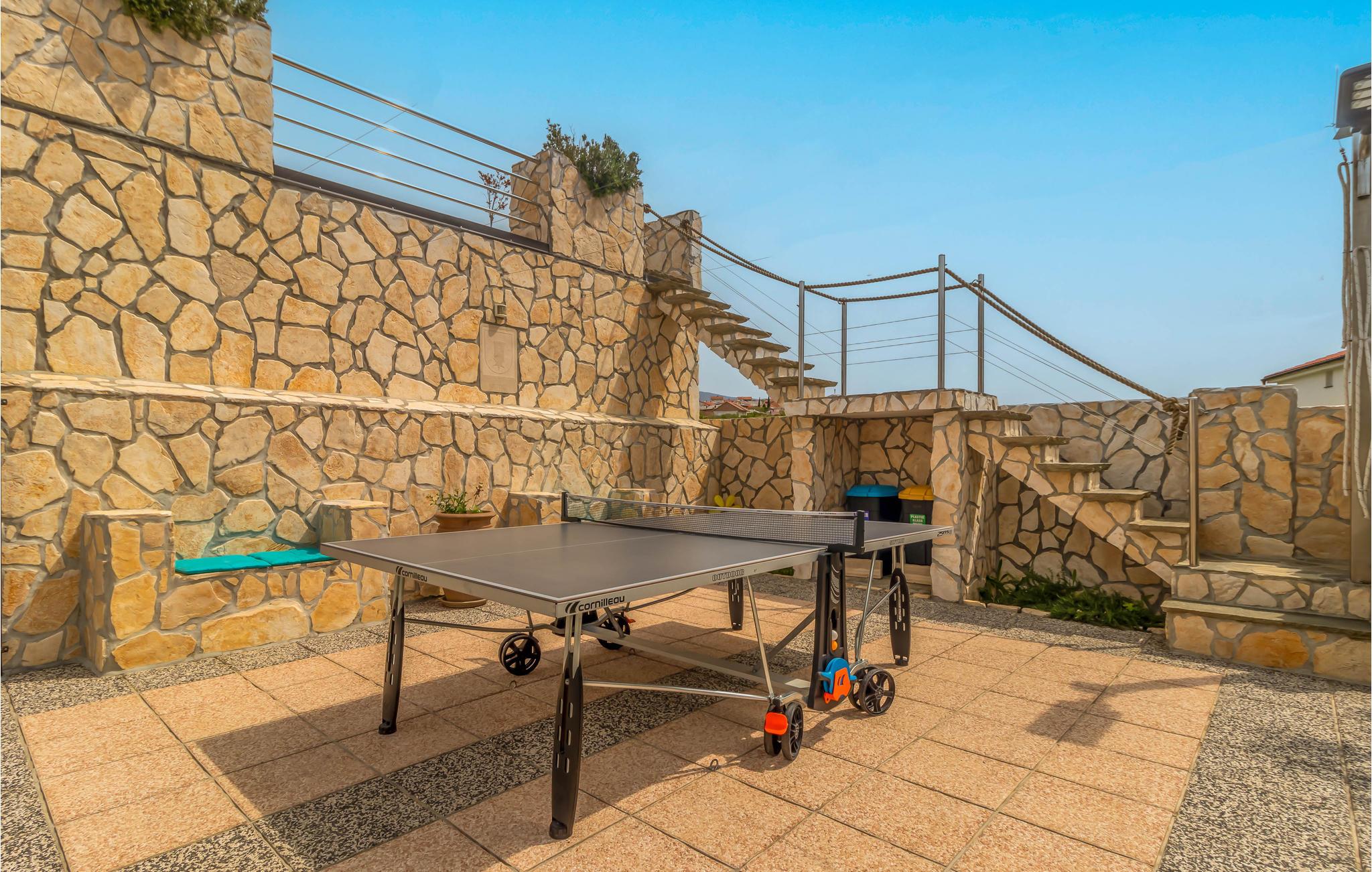 Glæd jer til dette indbydende feriehus til jeres store familie. Huset er indrettet i maritim stil, som afspejles i farvesammensætningen og i de mange dekorative detaljer. I det åbne opholdsrum kan alle tale sammen, uanset om I laver mad eller leger ved spisebordet. Her skal ingen stå alene i køkkenet. I soveværelserne med private badeværelser, fordelt på to etager, finder I fred og ro og kan trække jer tilbage, når I har brug for det. Om aftenen kommer ingen til at kede sig i aktivitetsrummet, hvor I ogå kan holde konditionen ved lige. Både i huset og i haven finder I masser af sportsudstyr, der kan opmuntre jer til at træne. Dermed behøver I ikke at sætte træningsprogrammet på pause. Bagefter kan I tage et brusebad og forfriske jer i poolen, hvorfra I kan se grillmesteren tilberede aftensmaden. De små i familien vil tilbringe masser af tid på jeres helt egen legeplads, mens de større kan nyde ren afslapning i boblebadet senere på dagen.