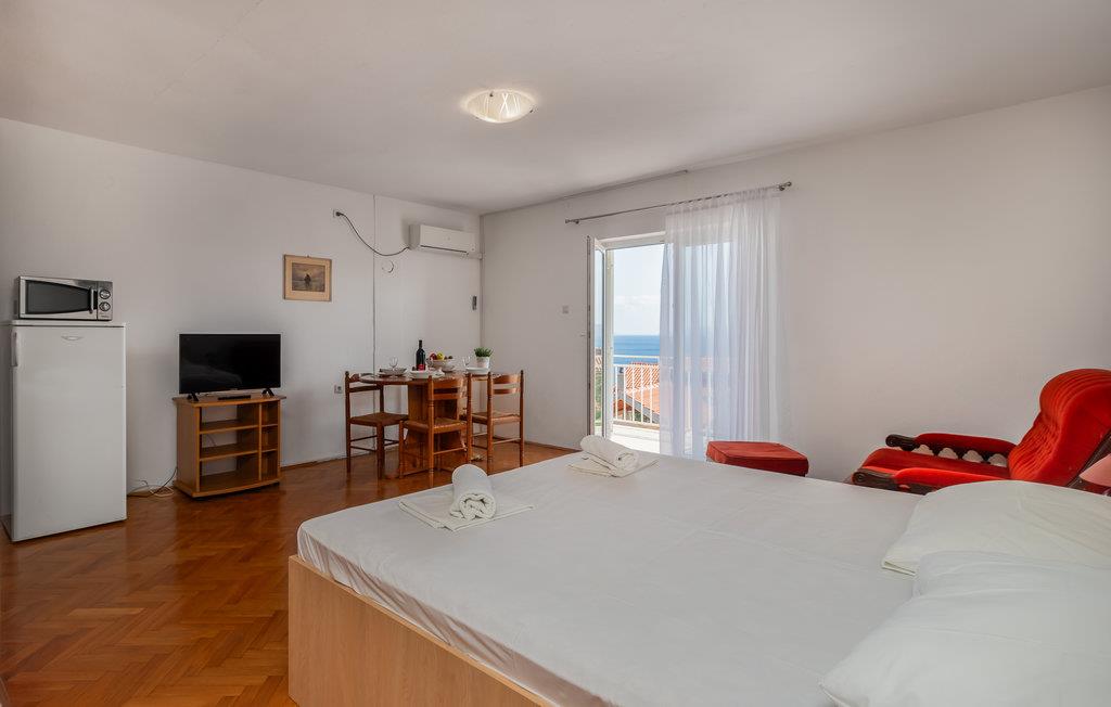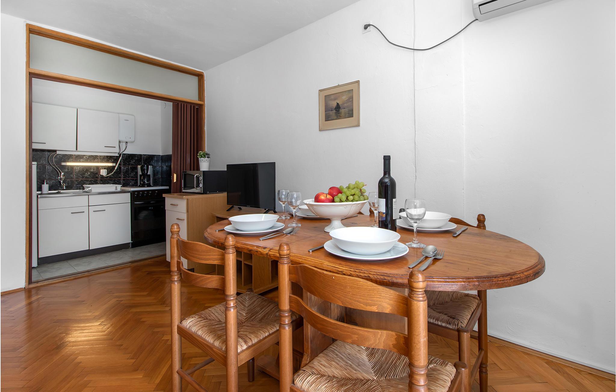 Velkommen til denne velindrettede lejlighed på 1. sal i et familievenligt dobbelthus. Du kan parkere din bil på ejendommen. Lejligheden byder på en vidunderlig udsigt over bugten og helt til øen Krk. Nyd din morgenkaffe til denne betagende udsigt, eller et godt glas vin om aftenen. Lejligheden er komfortabelt og praktisk indrettet, og er ideel til en lille familie med børn.
