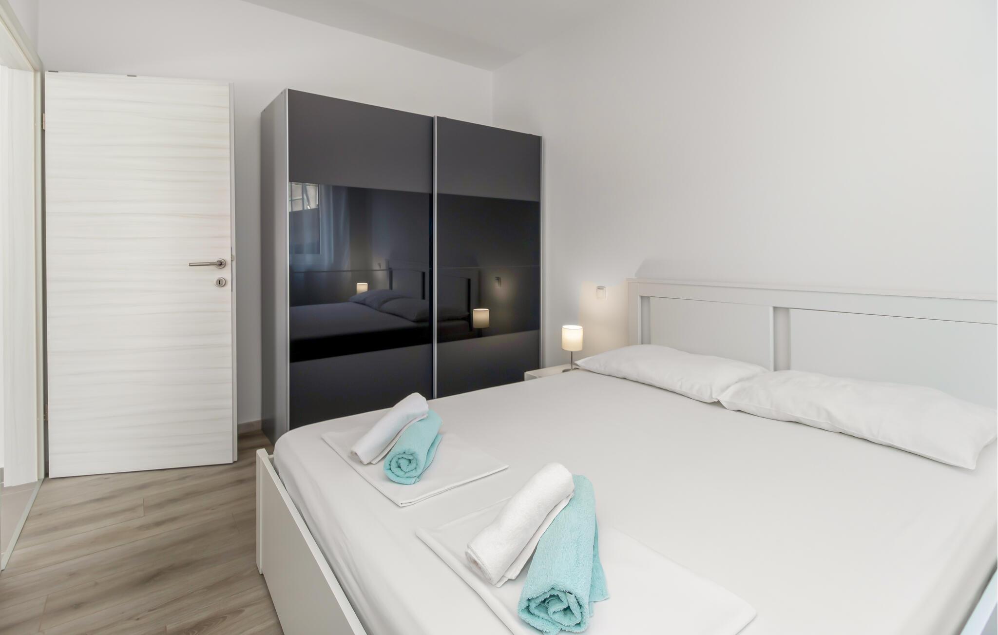 Nyd en solrig ferie i denne moderne ferielejlighed med havudsigt, tæt på smukke strande.