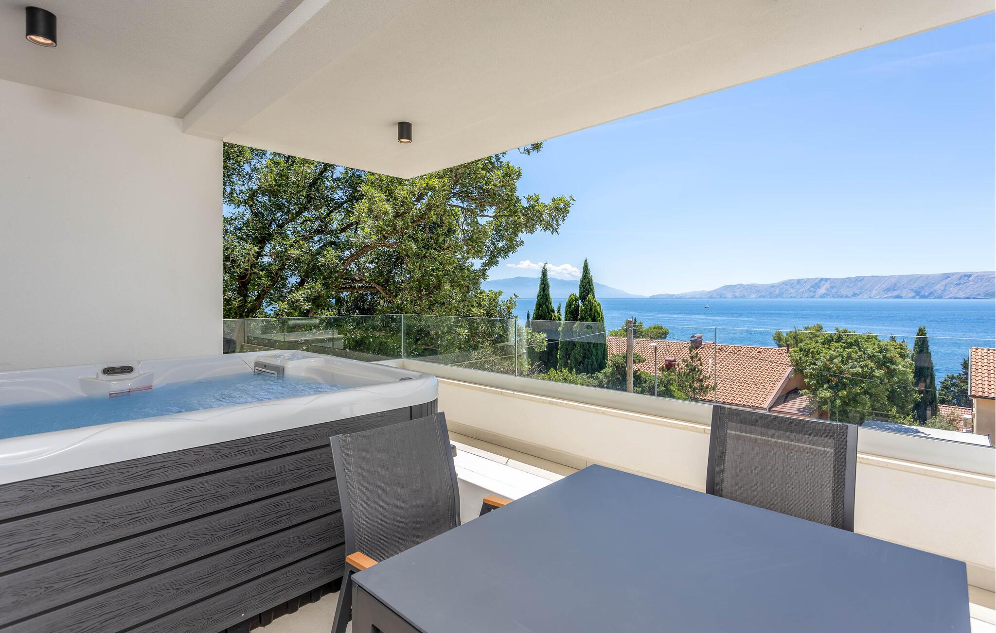 Tag familien under armen og rejs til Novi Vinodolski, hvor der få skridt fra stranden og promenaden venter jer denne luksusperle af en feriebolig. Indvendigt emmer det af kvalitet, komfort og moderne bekvemmeligheder over hele linjen i et stilsikkert interiør, der får dejlige lysindfald gennem de mange vinduespartier og fremtræder lyst, luftigt og lækkert.