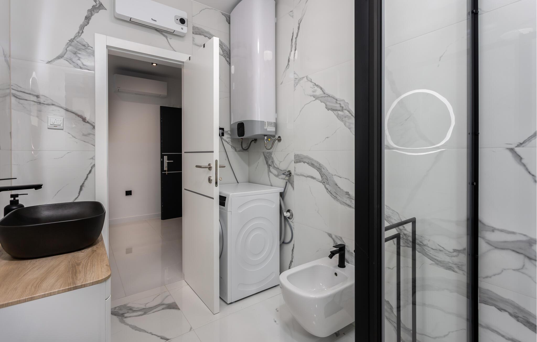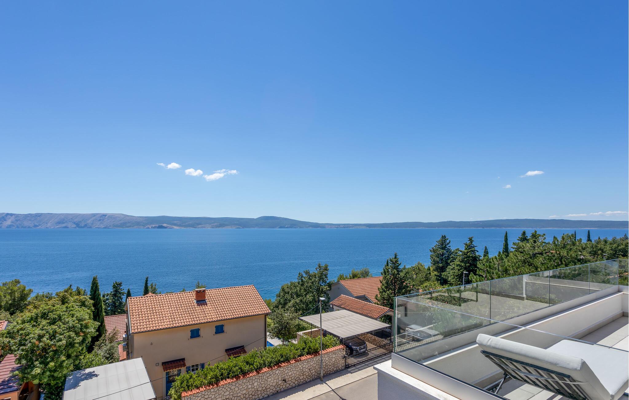 Tag familien under armen og rejs til Novi Vinodolski, hvor der få skridt fra stranden og promenaden venter jer denne luksusperle af en feriebolig. Indvendigt emmer det af kvalitet, komfort og moderne bekvemmeligheder over hele linjen i et stilsikkert interiør, der får dejlige lysindfald gennem de mange vinduespartier og fremtræder lyst, luftigt og lækkert.