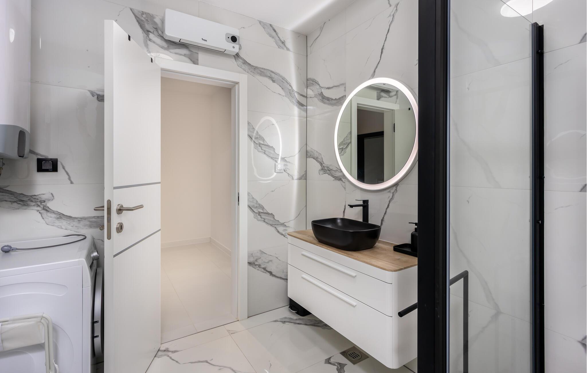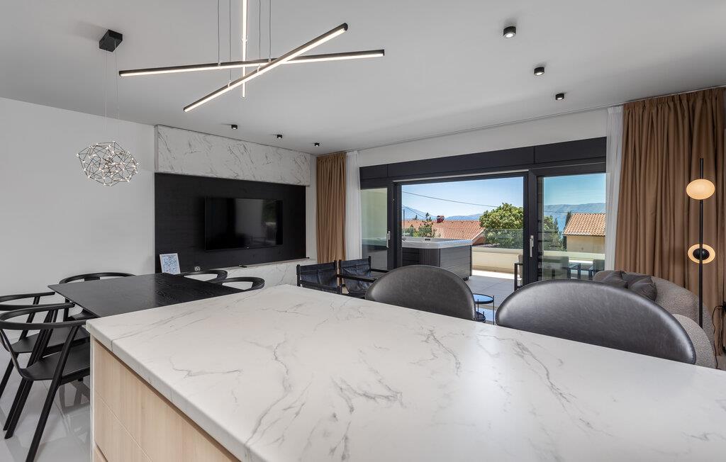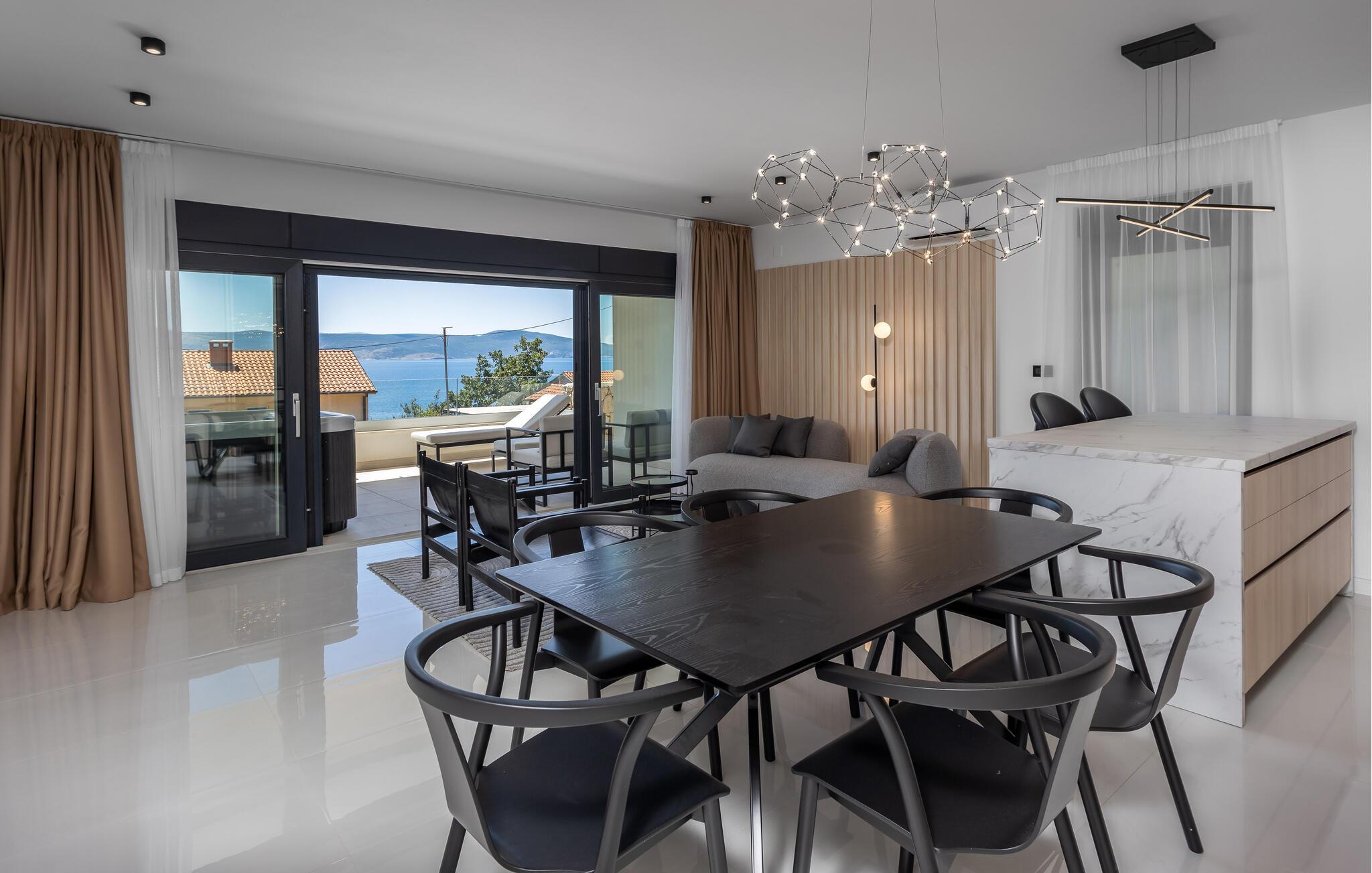Tag familien under armen og rejs til Novi Vinodolski, hvor der få skridt fra stranden og promenaden venter jer denne luksusperle af en feriebolig. Indvendigt emmer det af kvalitet, komfort og moderne bekvemmeligheder over hele linjen i et stilsikkert interiør, der får dejlige lysindfald gennem de mange vinduespartier og fremtræder lyst, luftigt og lækkert.