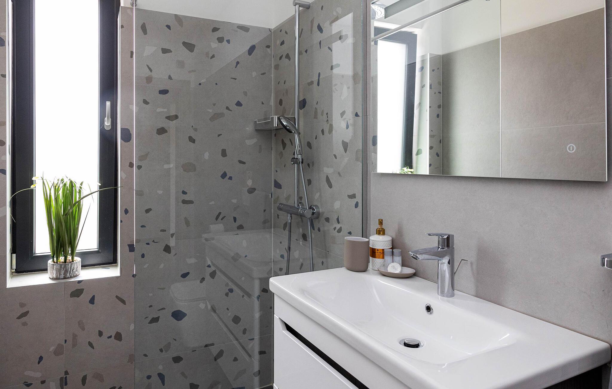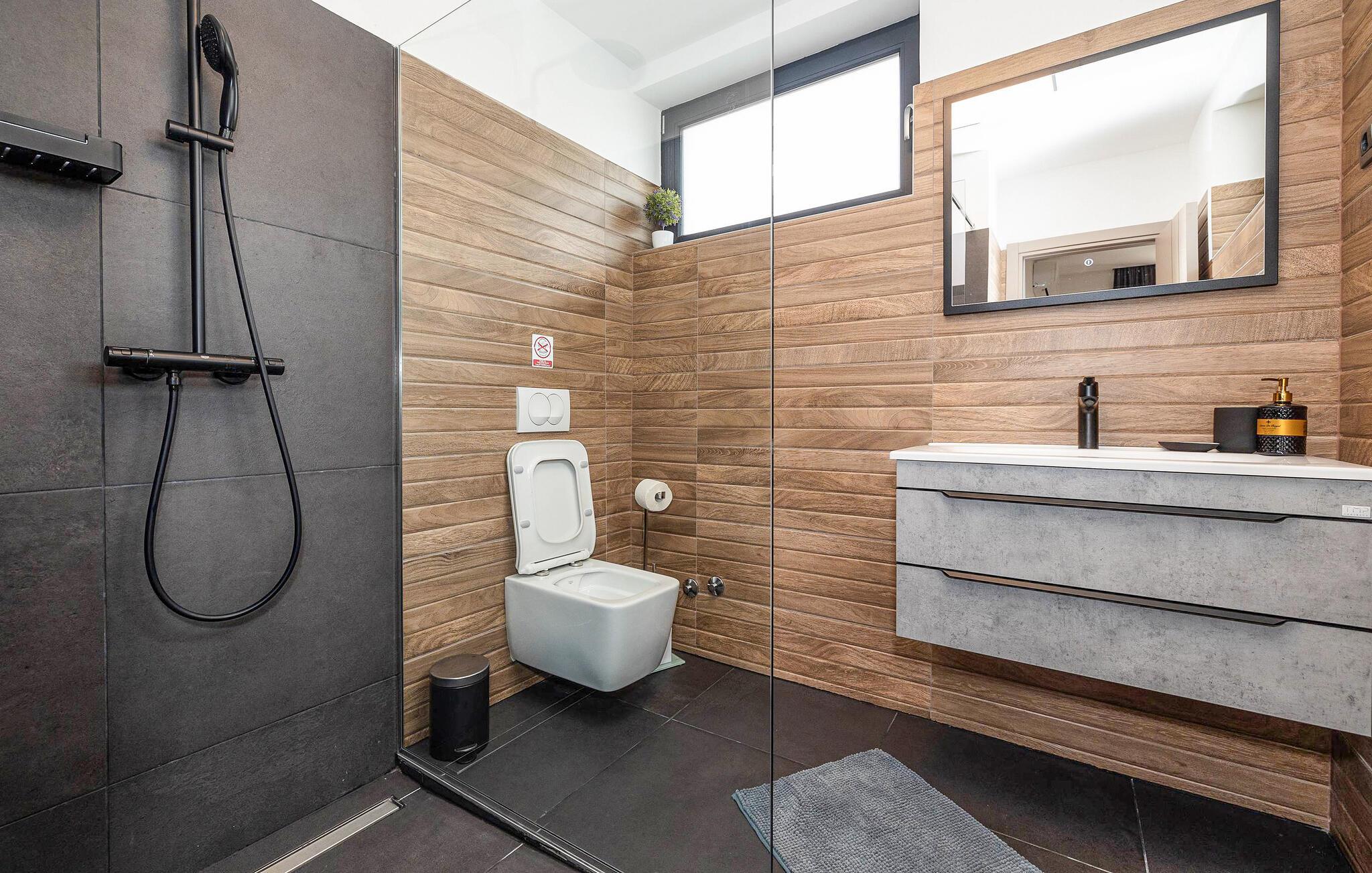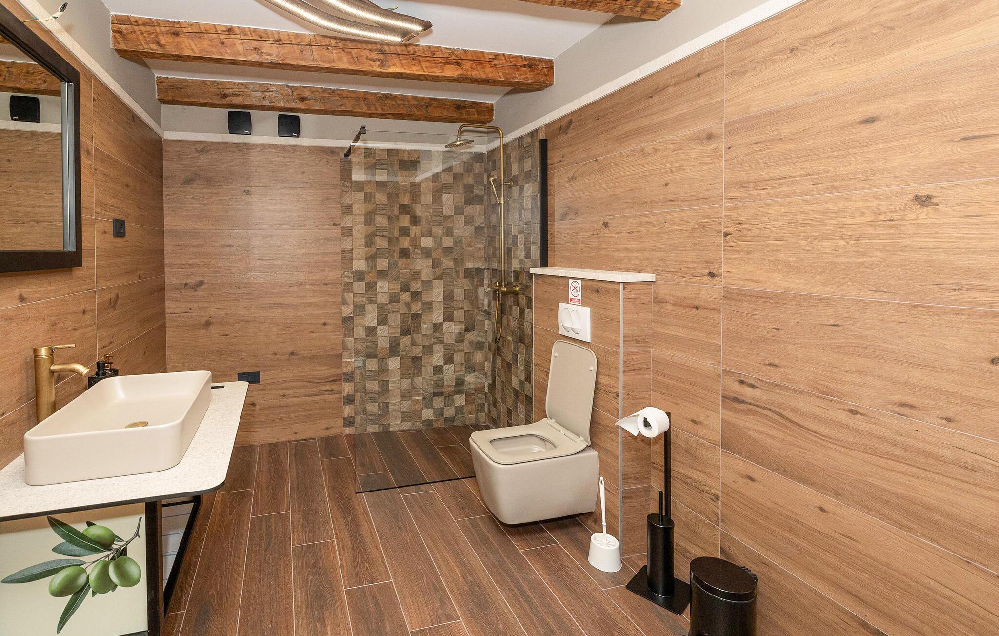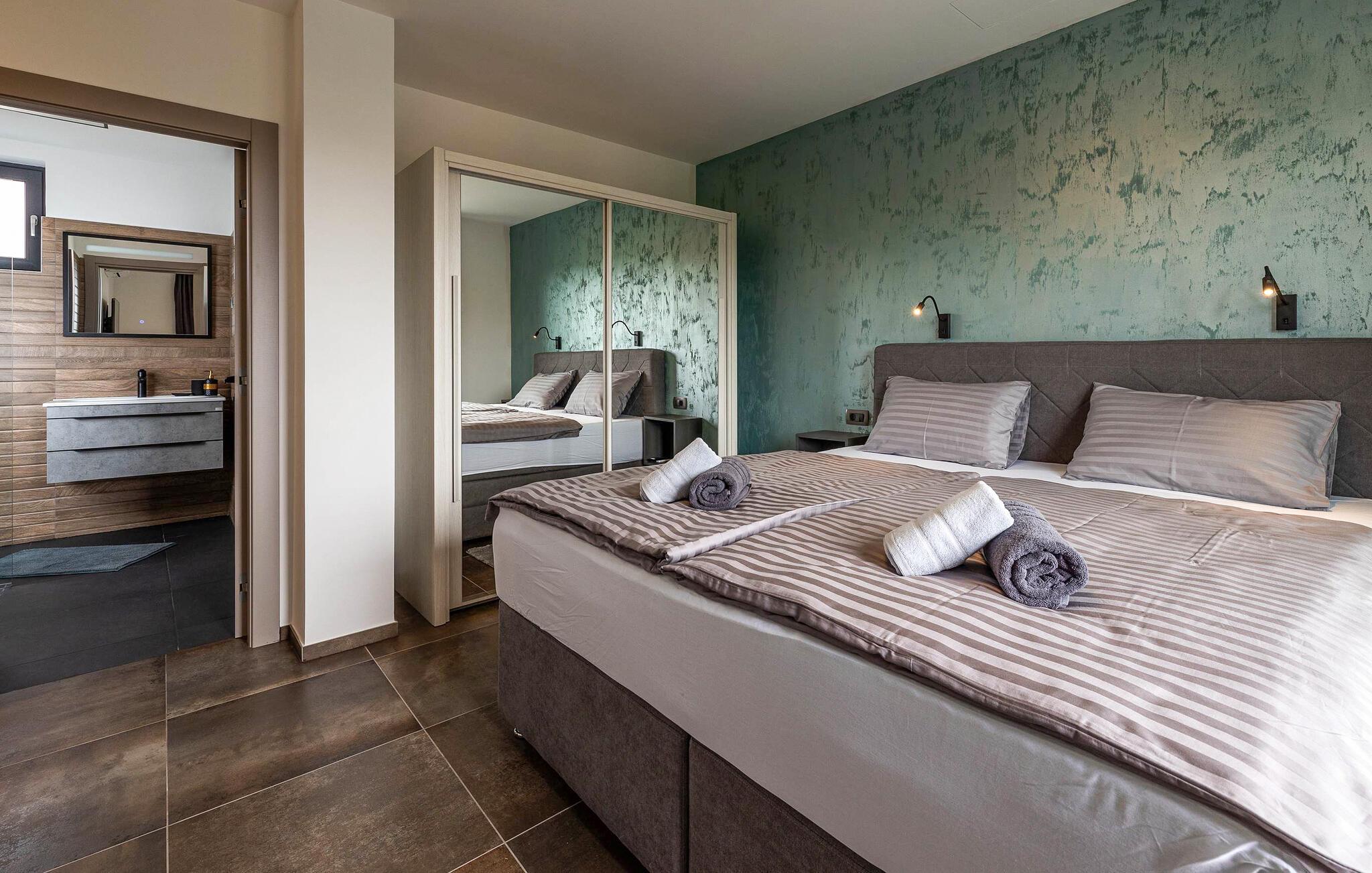 Dette feriehus i Novi Vinodolski på Crikvenica-Vinodol Riviera byder jer velkommen til en unik ferie i Kroatien. Begynd jeres dage med en forfriskende svømmetur i den private pool, før I finder ren afslapning i saunaen eller det udendørs spabad. Udnyt fitnessfaciliteterne til at holde jer i form og lad børnene lege indendørs eller løbe rundt udenfor på legepladsen. Nyd husets rummelige værelser og de mange faciliteter, det har at tilbyde.