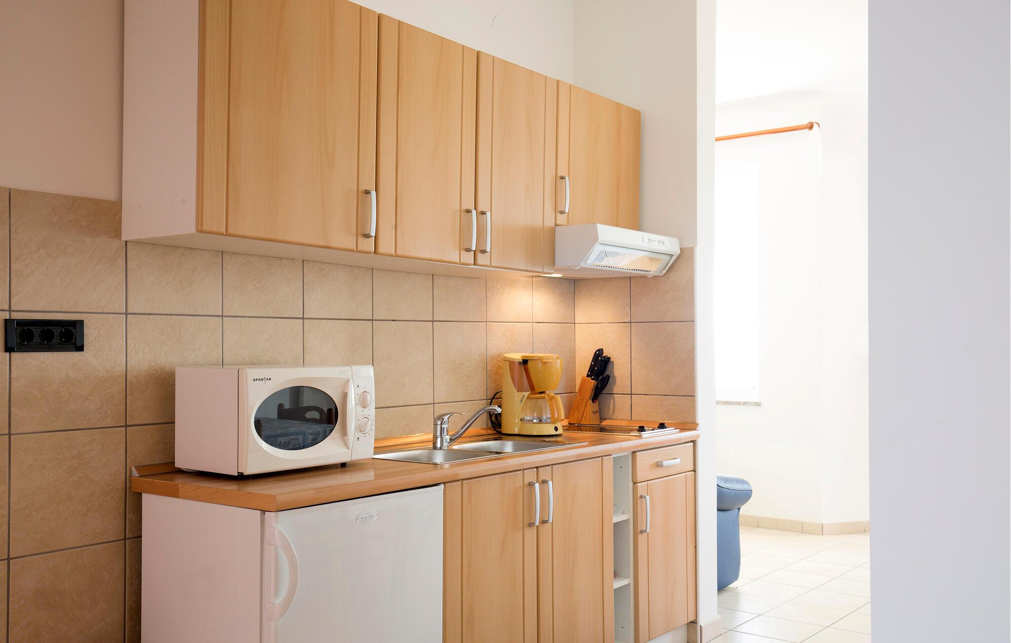 Velkommen til denne lyse ferielejlighed, som lægger op til en afslappende pause nogle få skridt fra stranden. Pak jeres kufferter og begynd at glæde jer til måltider sammen, mens den behagelige havbrise strømmer gennem rummene. Forkæl jer selv med afslappende siestaer i sofaen, spil brætspil eller afslut dagen med en filmaften.