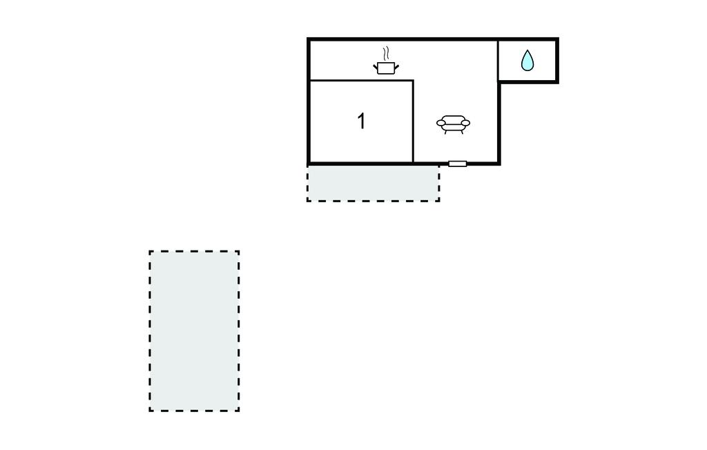 Opholdsstue/køkken 15m2 - 1 Soveplads. (Sofa, madras eller lignende).