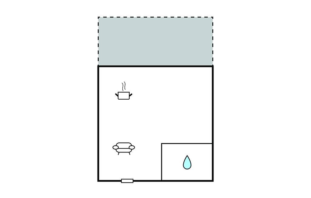 Opholdsstue/køkken 20m2 - 2 Sovepladser. (Dobbeltseng(e)).
