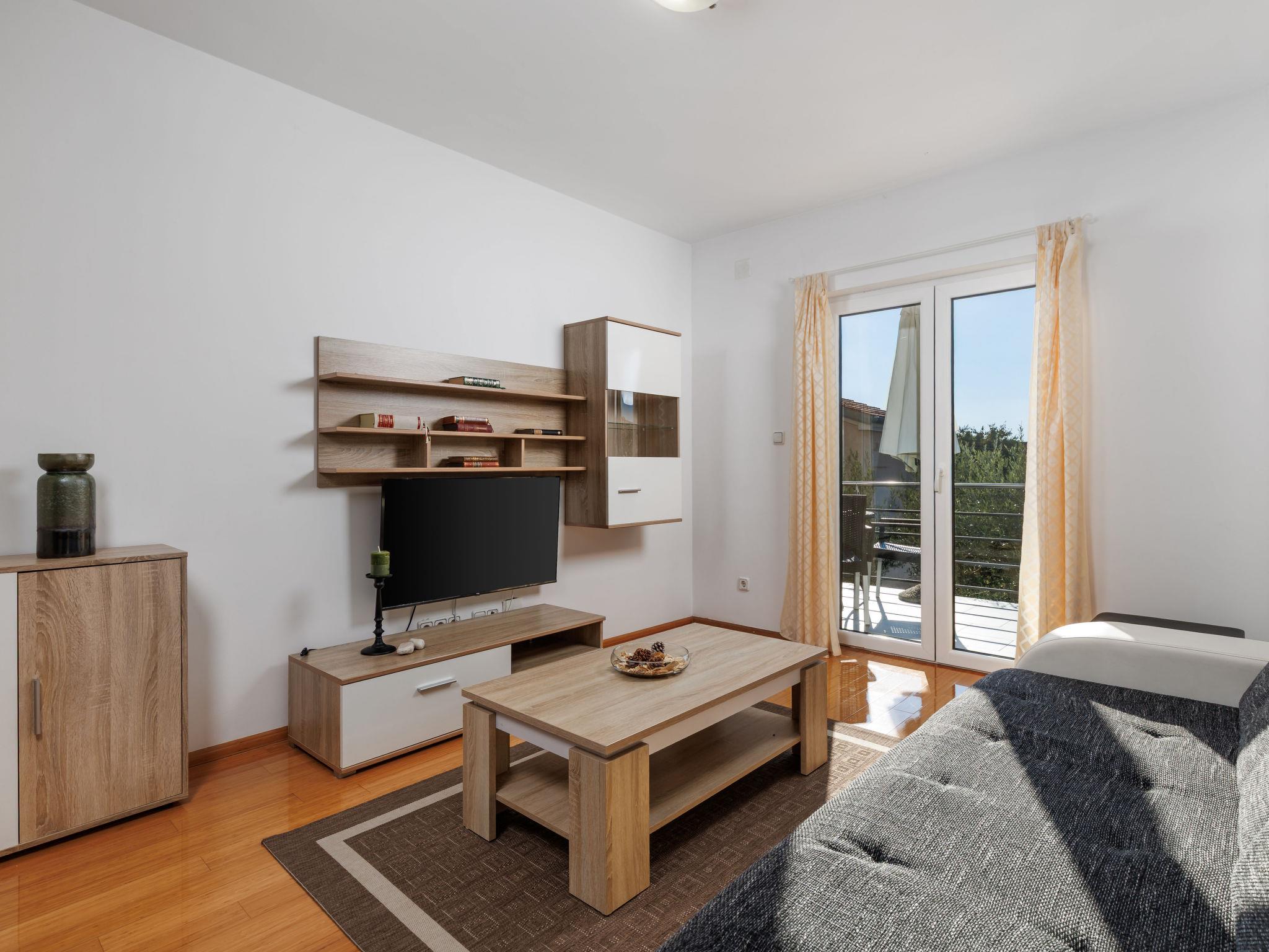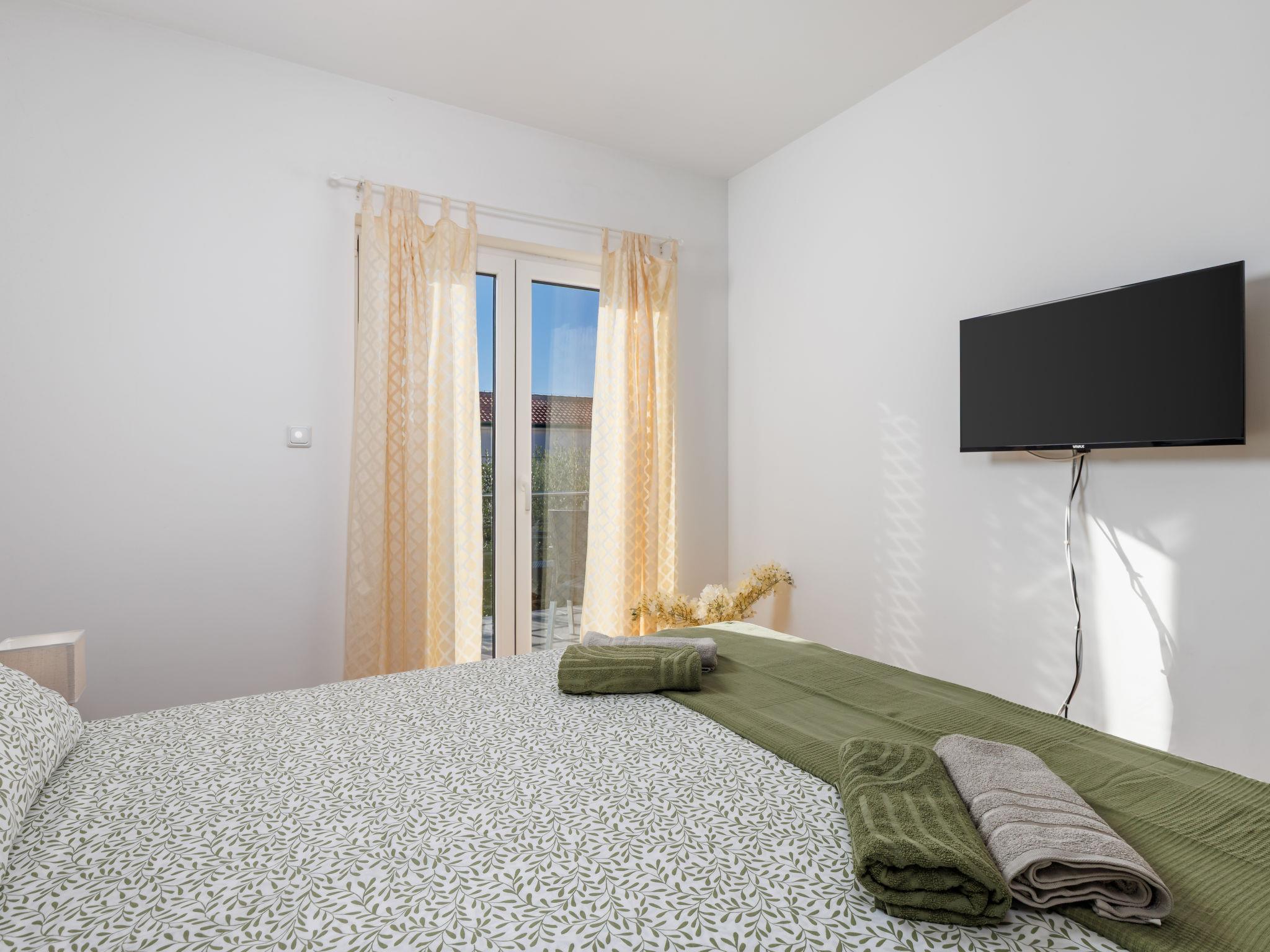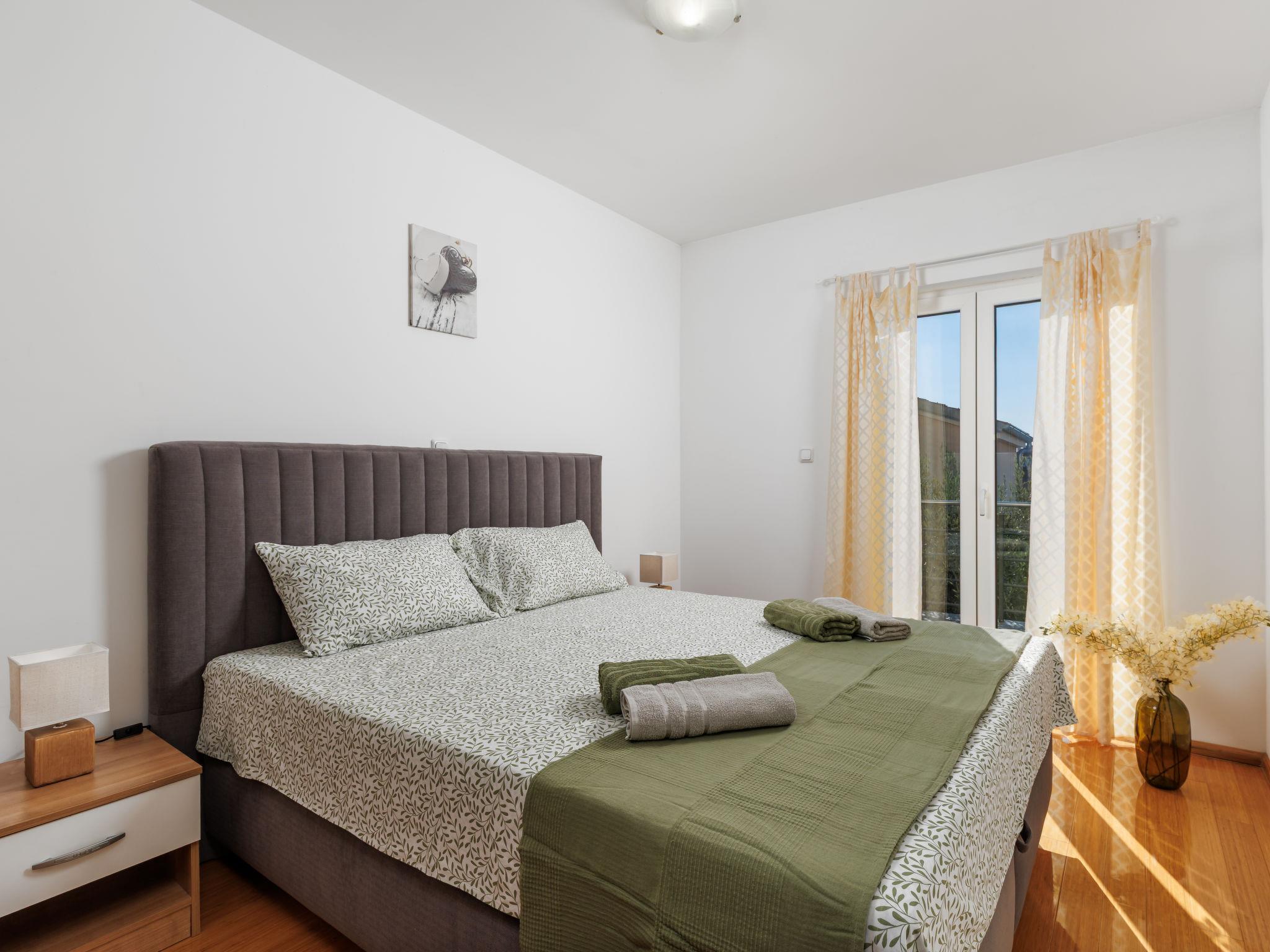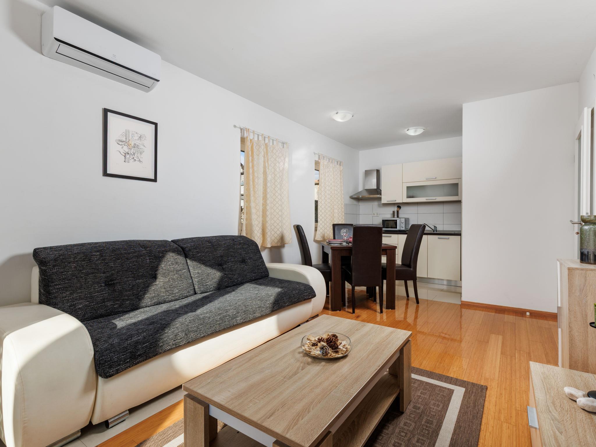 2-room apartment 41 m2, on the ground floor, south-west facing position. Tasteful furnishings: living/dining room 21 m2 with 1 double sofabed (160 cm, length 190 cm), satellite TV (flat screen), air conditioning. Exit to the balcony. 1 room with 1 french bed (160 cm, length 200 cm). Exit to the balcony. Open kitchen (4 hot plates, oven, microwave, freezer, electric coffee machine). Shower/WC. No heating option. Balcony 10 m2. Balcony furniture. View of the swimming pool. Facilities: hair dryer. Internet (WiFi, free).