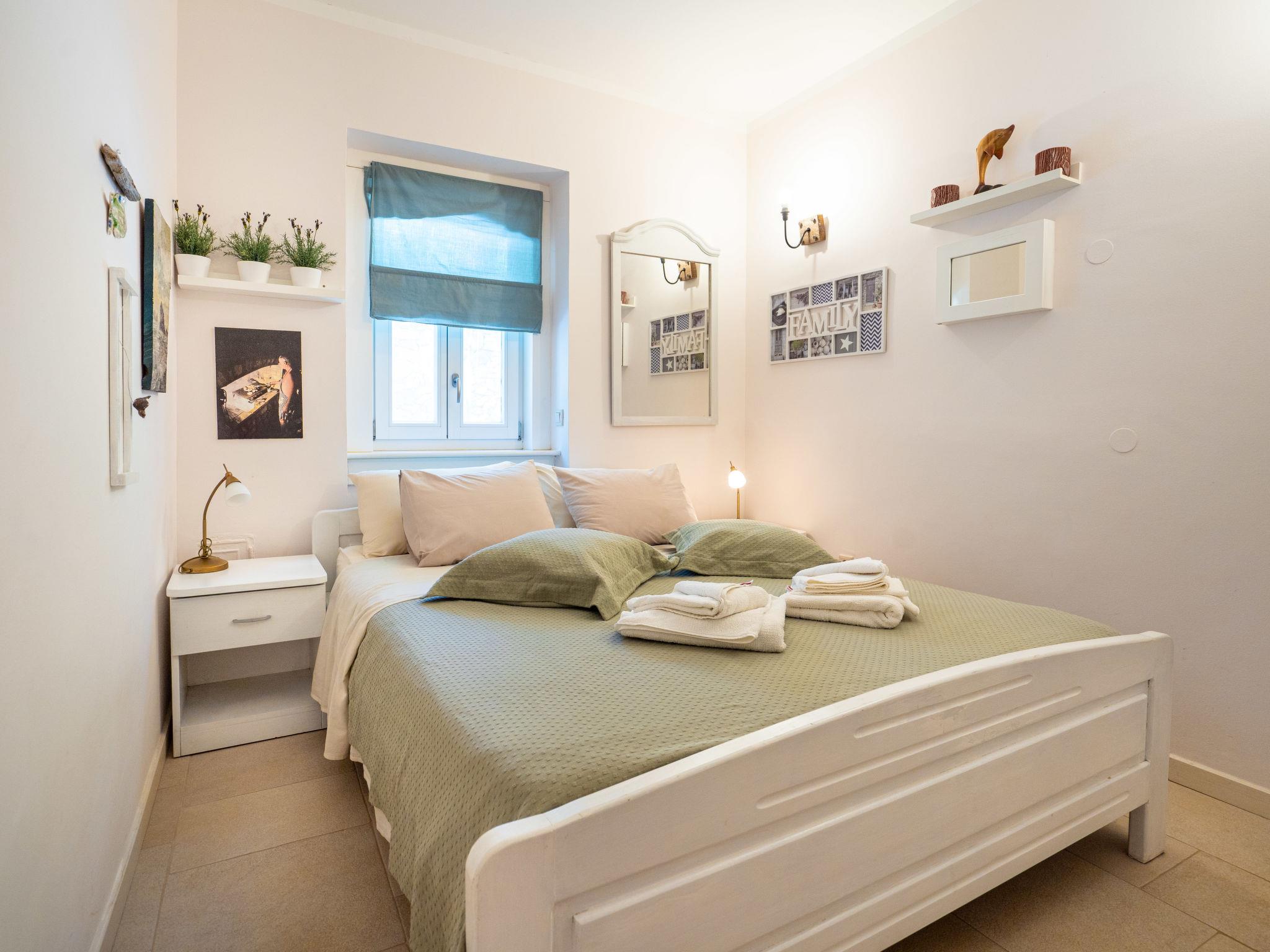 2-family house "Villa Mo-Re". 750 m from the centre of Novi Vinodolski, in a quiet, sunny position, 20 m from the sea, 20 m from the beach, in the countryside. For shared use: property 1'800 m2 (fenced), garden with lawn 300 m2, trees, swimming pool angular heated (4 x 8 m, depth 140 cm, seasonal availability: 20.Apr. - 15.Oct.) with internal staircase. Outdoor shower, terrace (13 m2), garden furniture (swing, sandbox). In the house: internet access, sauna (for shared use). Parking at the house on the premises. Supermarket 400 m, restaurant 130 m, bus stop 1 km, sandy beach 1.2 km pebble beach 1.2 km, rocky beach 20 m, public bathing area 550 m, concrete beach 20 m. Marina 300 m, tennis 1.1 km. Sauna for shared use at small, separate house on the property, 10 m from the pool. 2 massages (included in the price) on request.